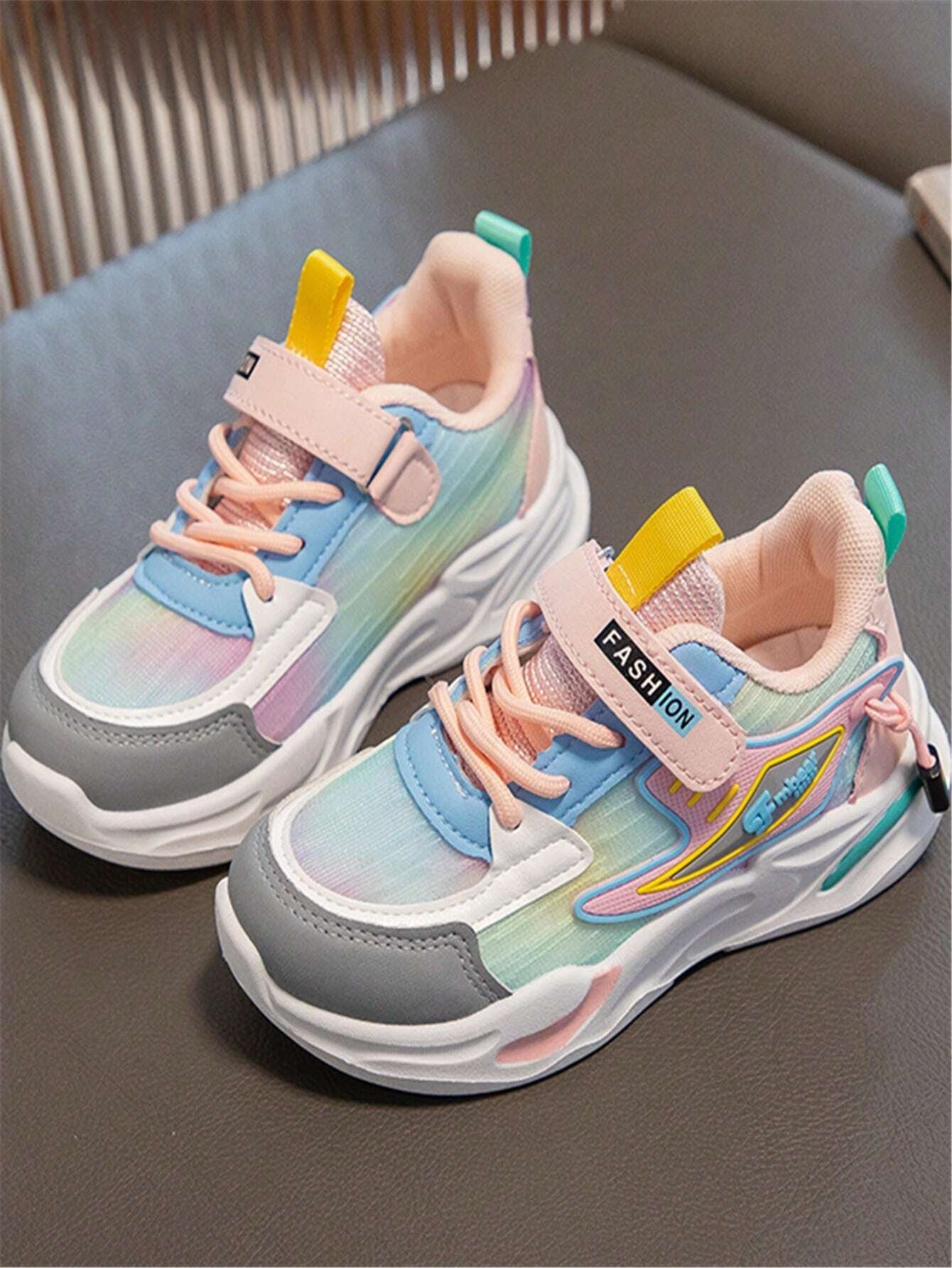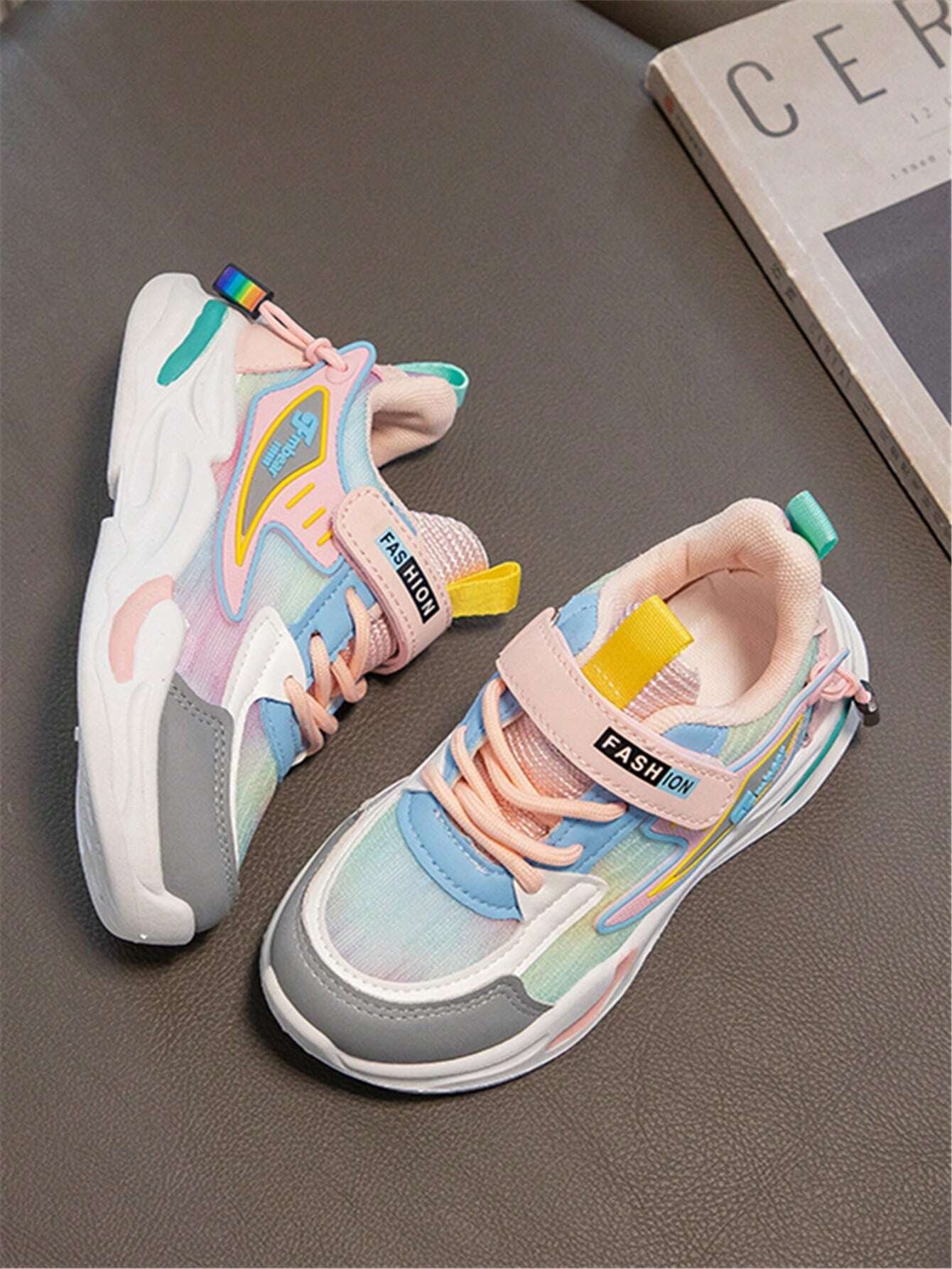 1 Pair Kids Fashion Color Block Soft & Wear-Resistant Magic Tape Outdoor Anti-Slip Girls Simple Comfortable New Style Outdoor Anti-Slip Versatile Flat Bottom Sports Shoes, Suitable For Four Seasons