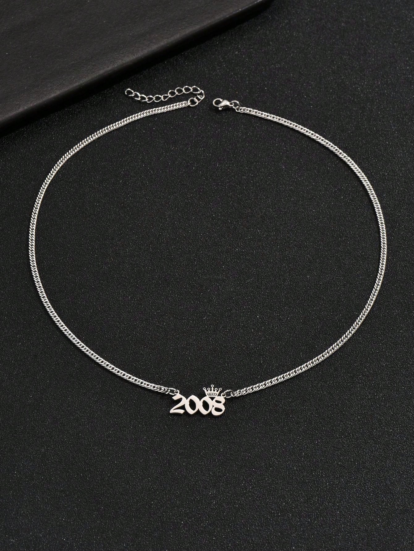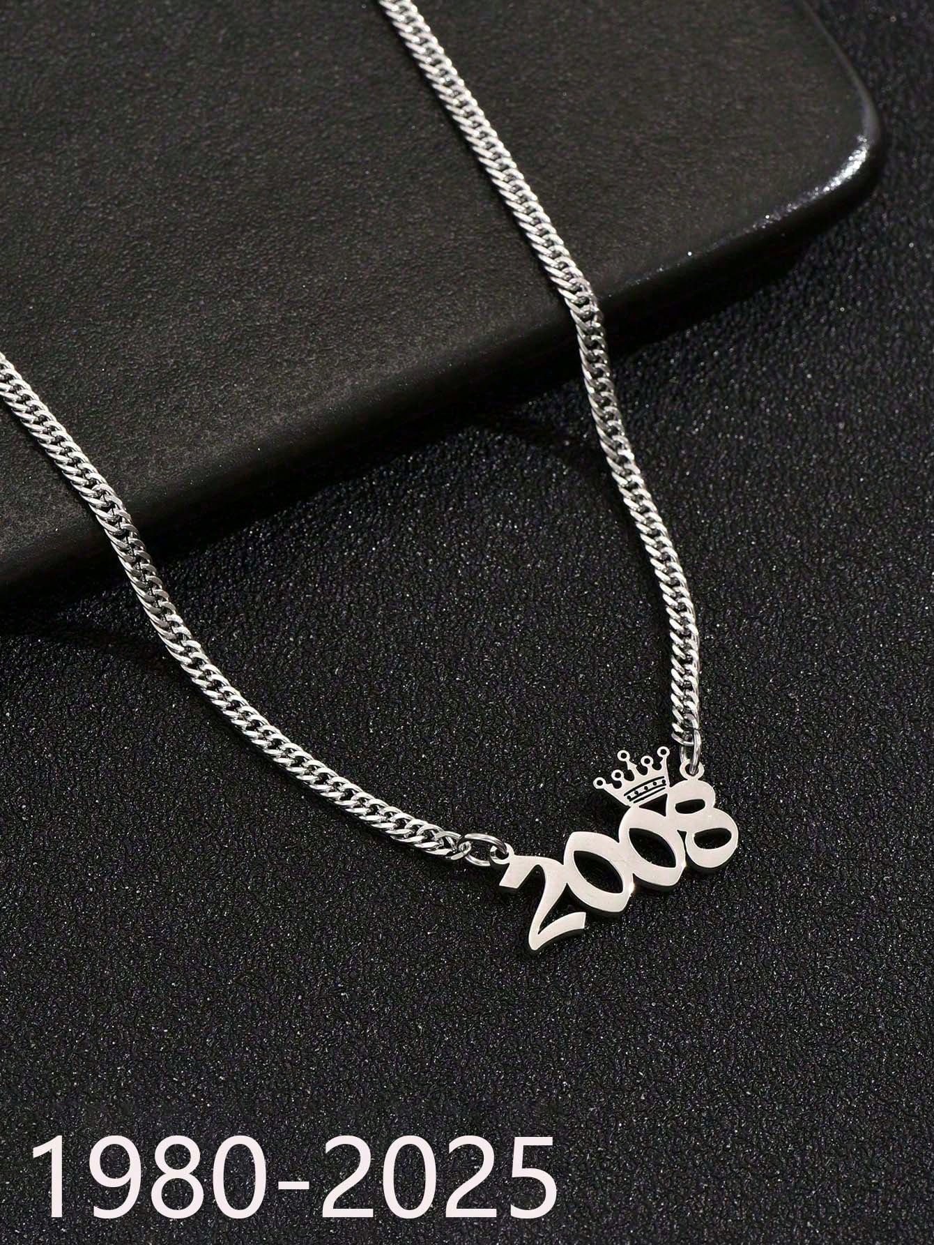 1 Pc Fashion Style Stainless Steel Birth Year Crown Digital Pendant Necklace Men's Party