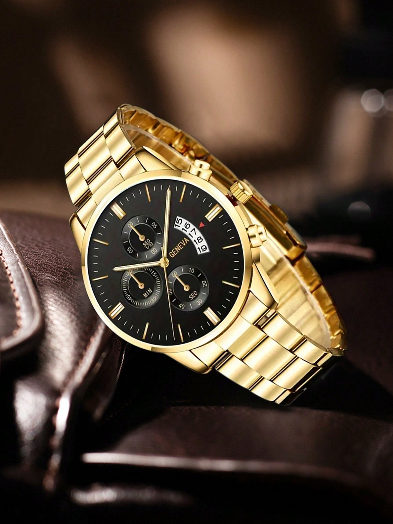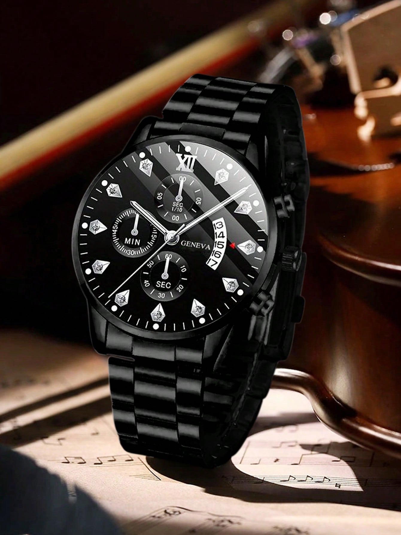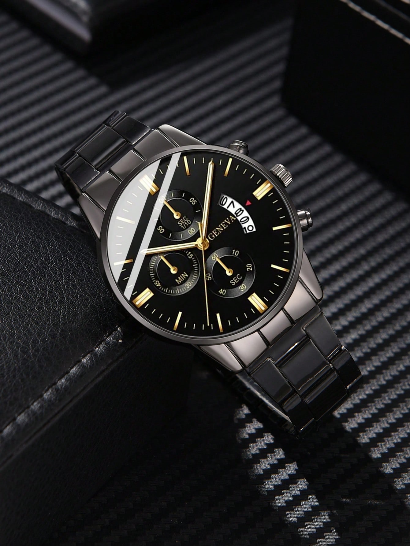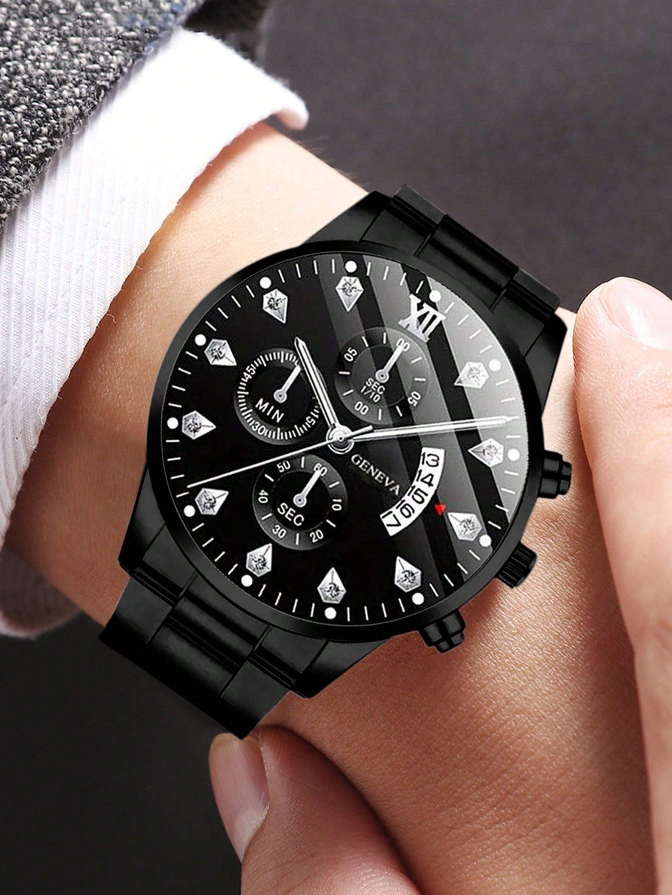 1 Piece Of Men's Black Strap, Fashionable And Casual, Mixed Scale With Calendar, Quartz Watch Suitable For Daily Wear, Decoration Or Holiday Gifts