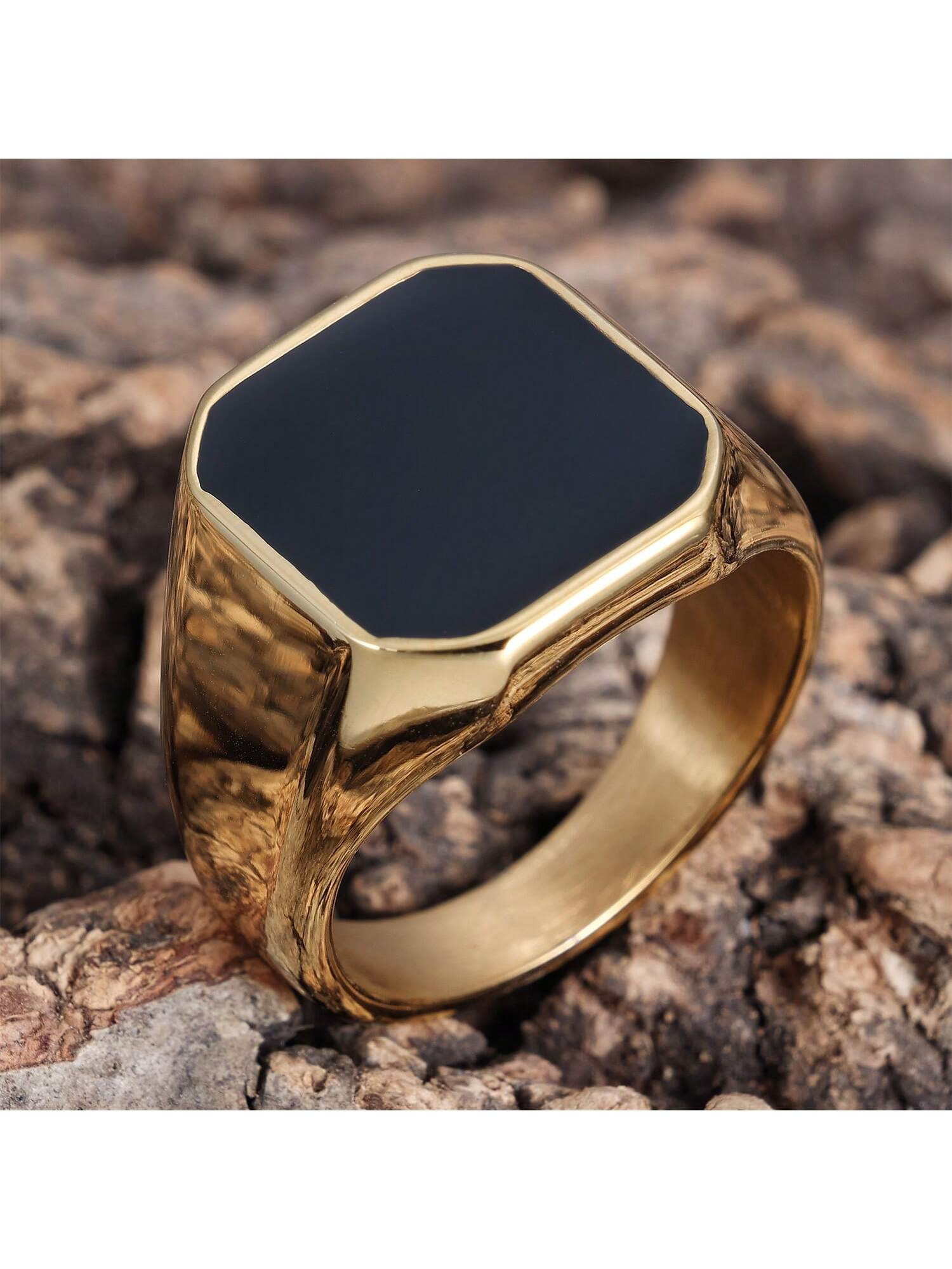 1 Piece Simplicity Minimalist Style Resin Shinny Smooth Vacuum 18K Gold Plated Stainless Steel Rings Thanksgiving Christmas Halloween Gift