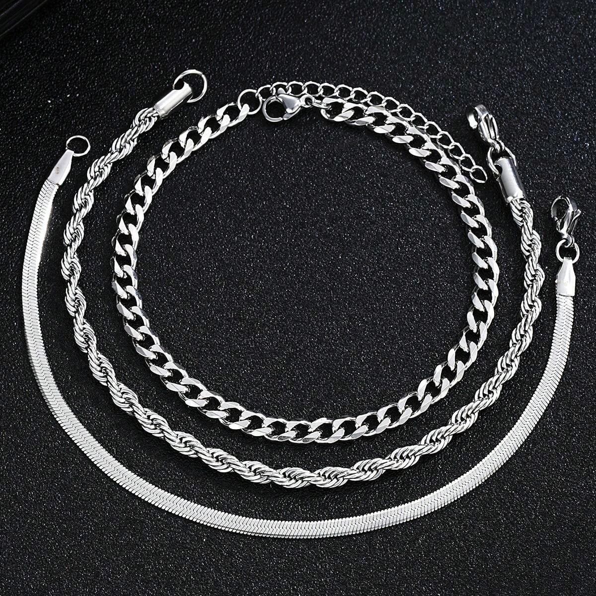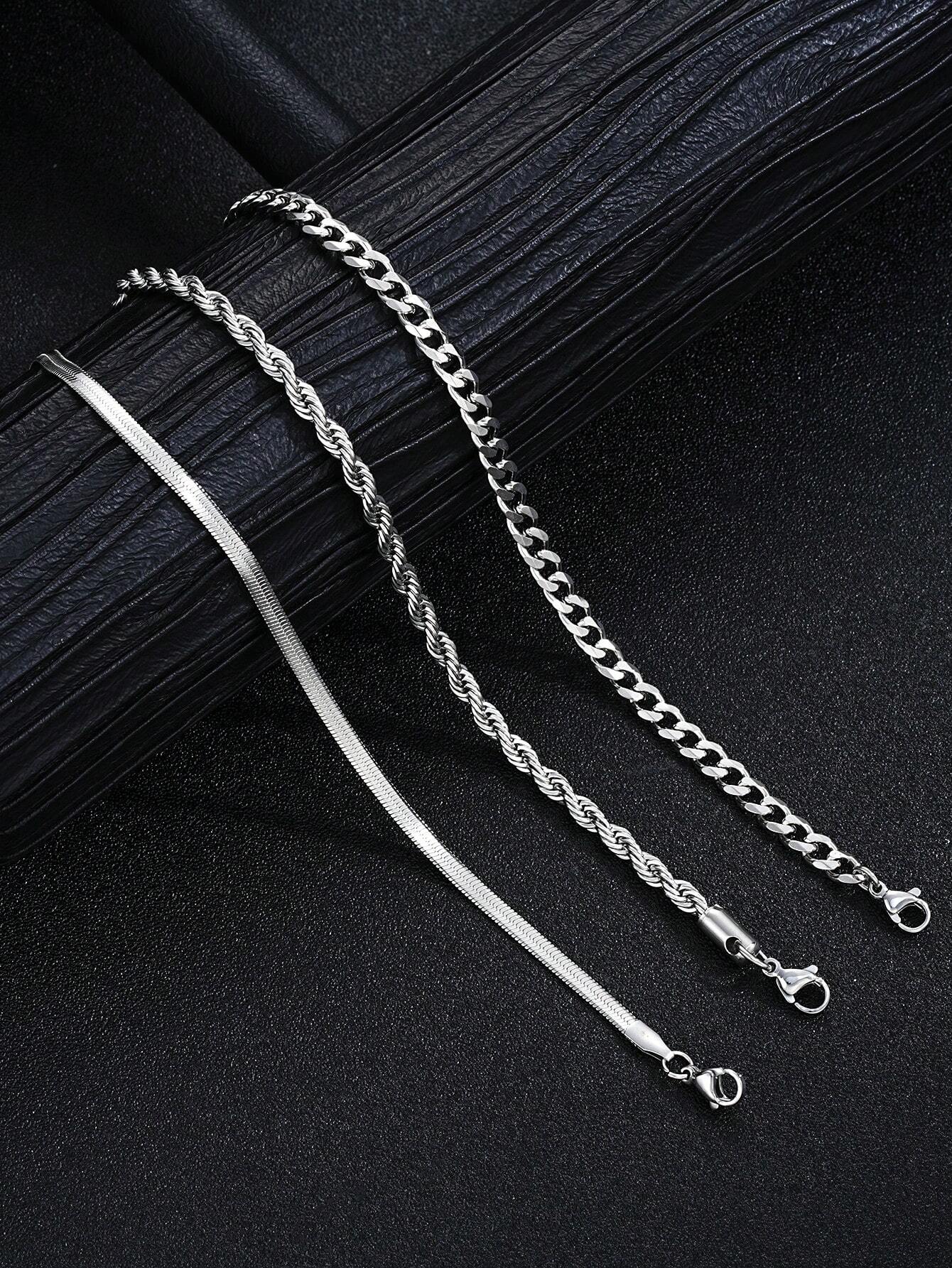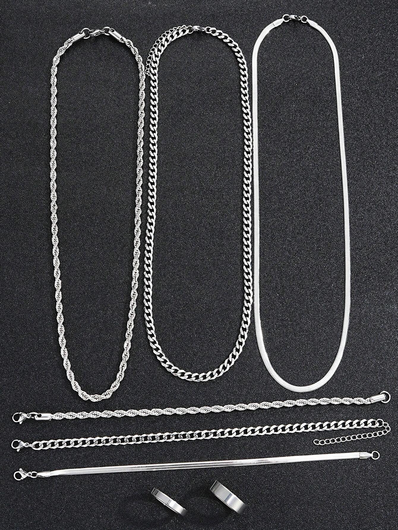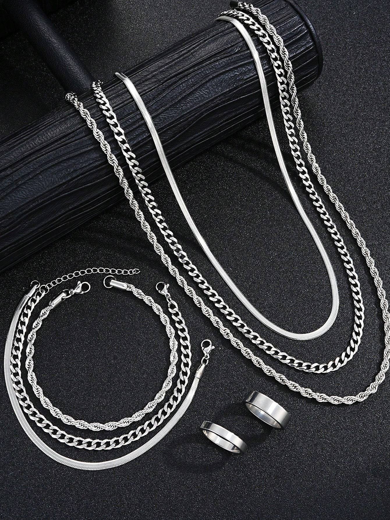 17KM 8pcs/Set Minimalist Punk Hiphop Stainless Steel Necklace, Bracelet, Ring Jewelry Set For Men, Ideal For Dating, Holiday And Daily Wear