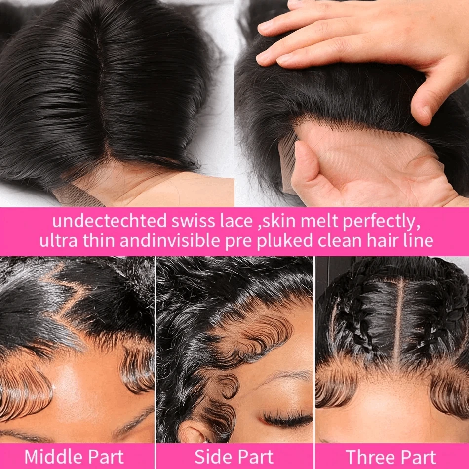 180 Density 8-34 Inchs Easy Wear 13×4 HD Lace Front Wig – Glueless, Pre-Plucked & Cut Straight Human Hair In Black Transparent Lace Closure With Pre-Bleached Knots Mixed Human Hair Wigs Headband Wear And Go Wig Natural Look Pixie Wig 13*1 150% 6inch Blend