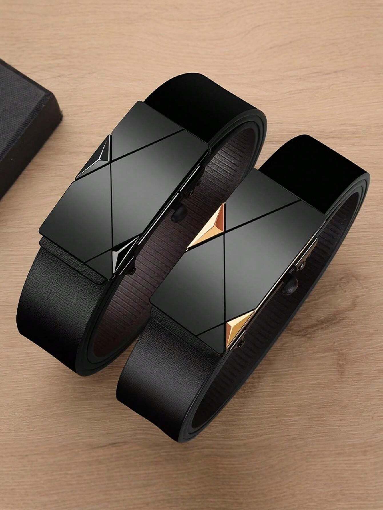 1pc/2pcsMen's Business Belt Alloy Automatic Buckle Belt Fashion Belt Luxury Jeans Belt PU Leather High-Quality Straps Summer, School