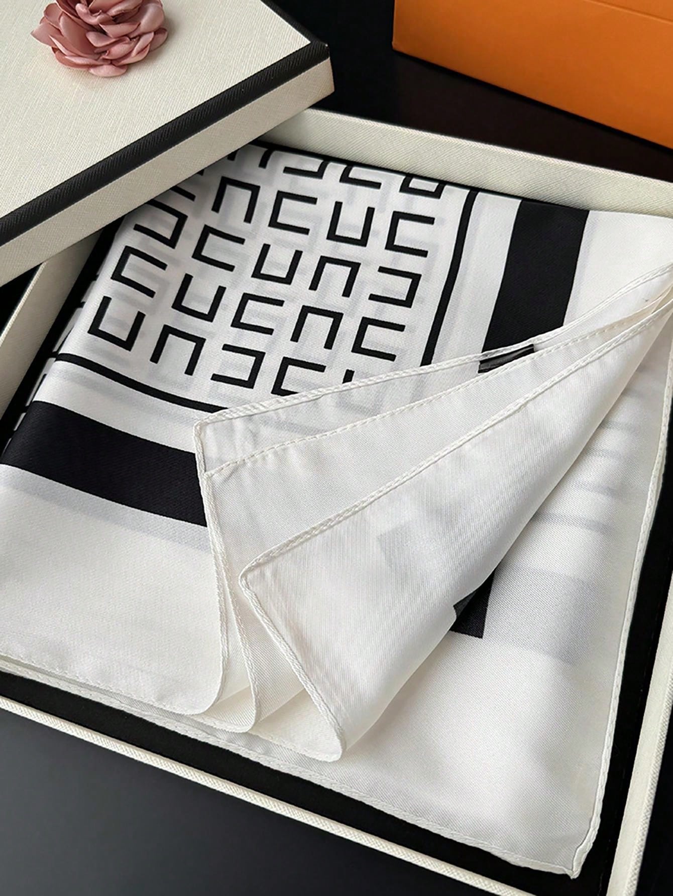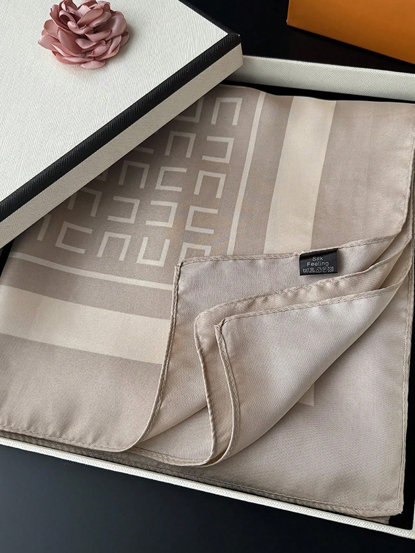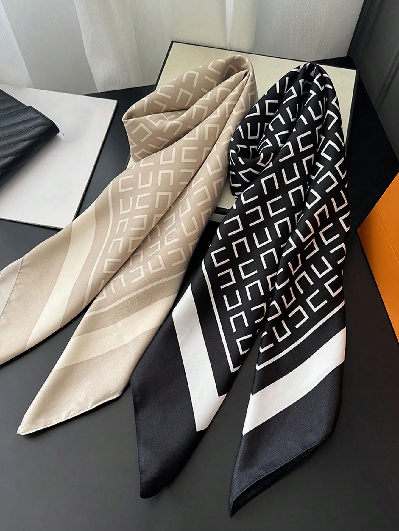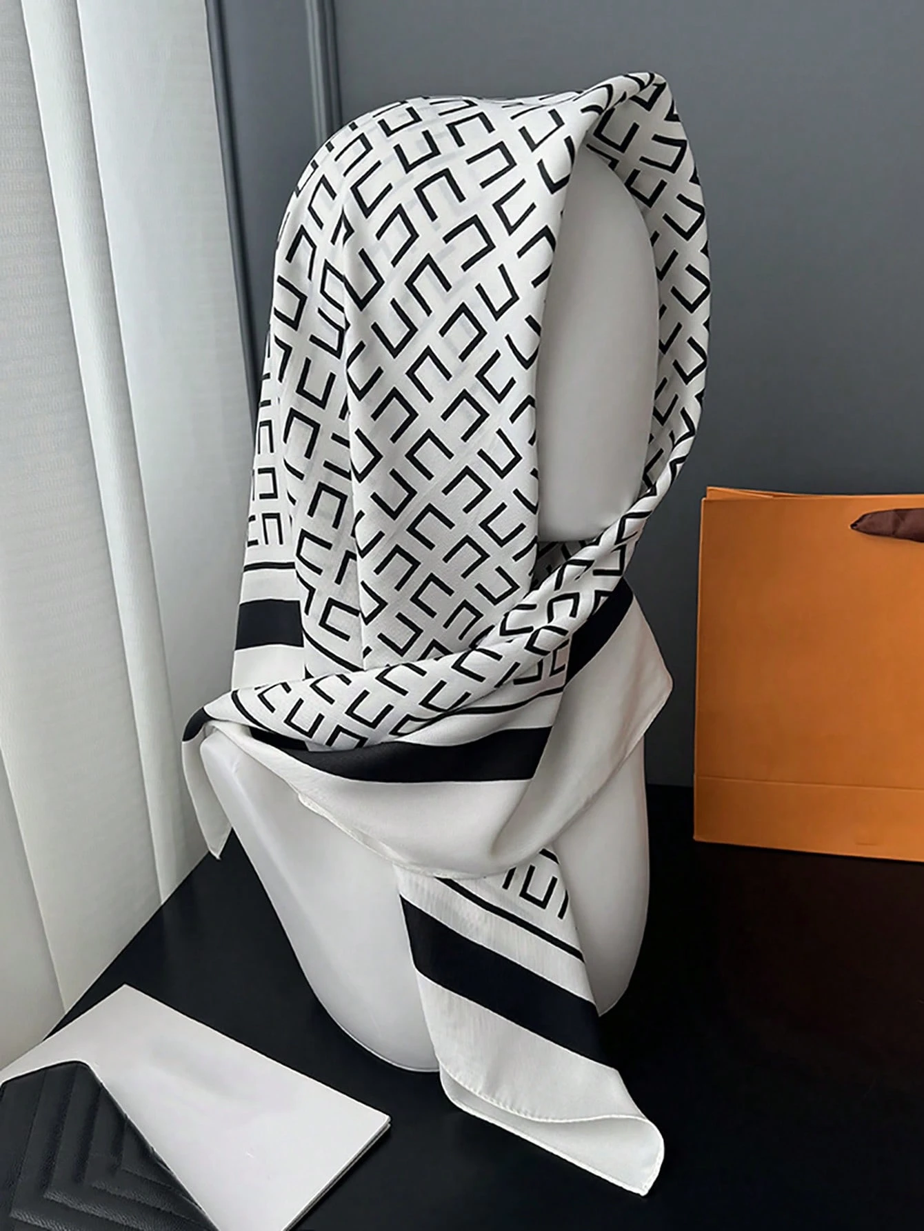 1pc 90*90CM Twill Satin Geometric Pattern Printed Large Square Bandana, Women Fashion Simple Elegant Printed Head Bandana, Casual Commuter Neck Bandana, Travel Sun Protection Decor Neck Gaiter