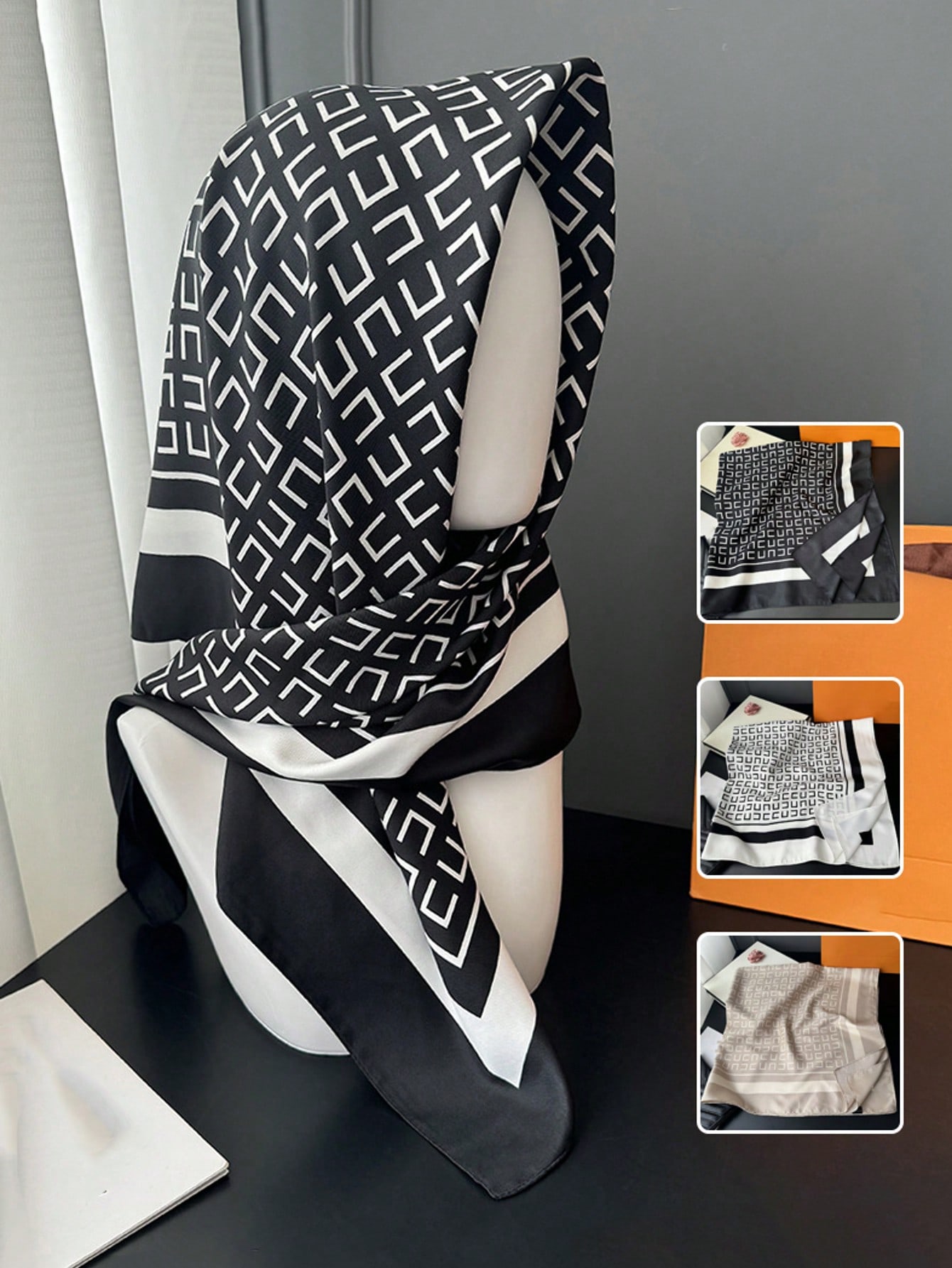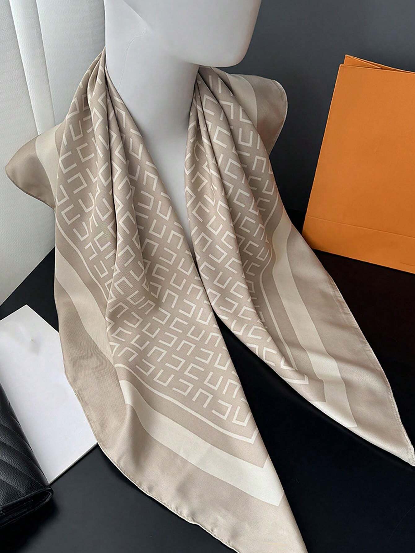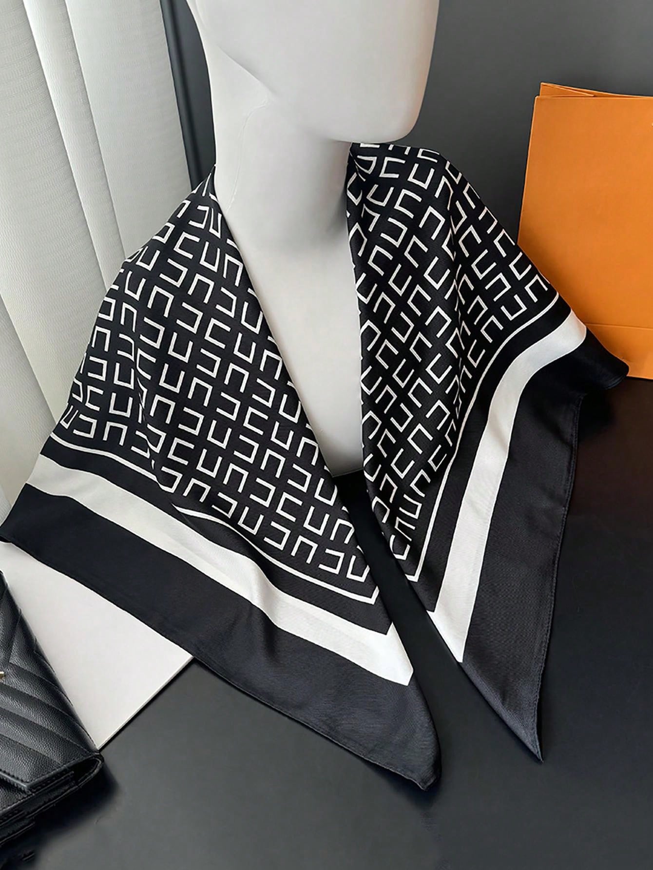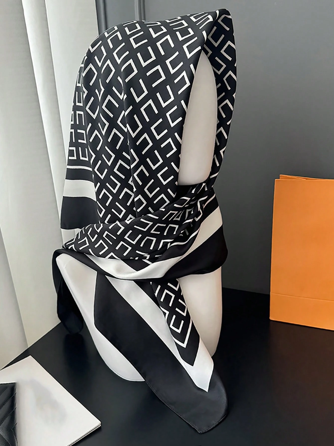 1pc 90*90CM Twill Satin Geometric Pattern Printed Large Square Bandana, Women Fashion Simple Elegant Printed Head Bandana, Casual Commuter Neck Bandana, Travel Sun Protection Decor Neck Gaiter