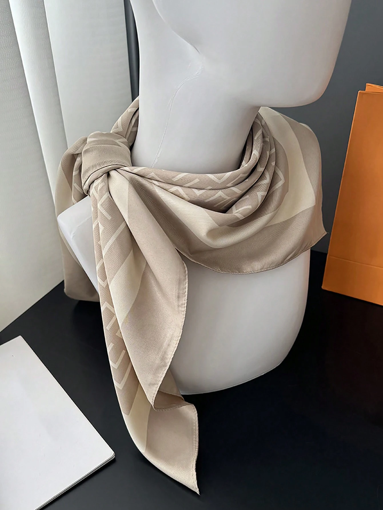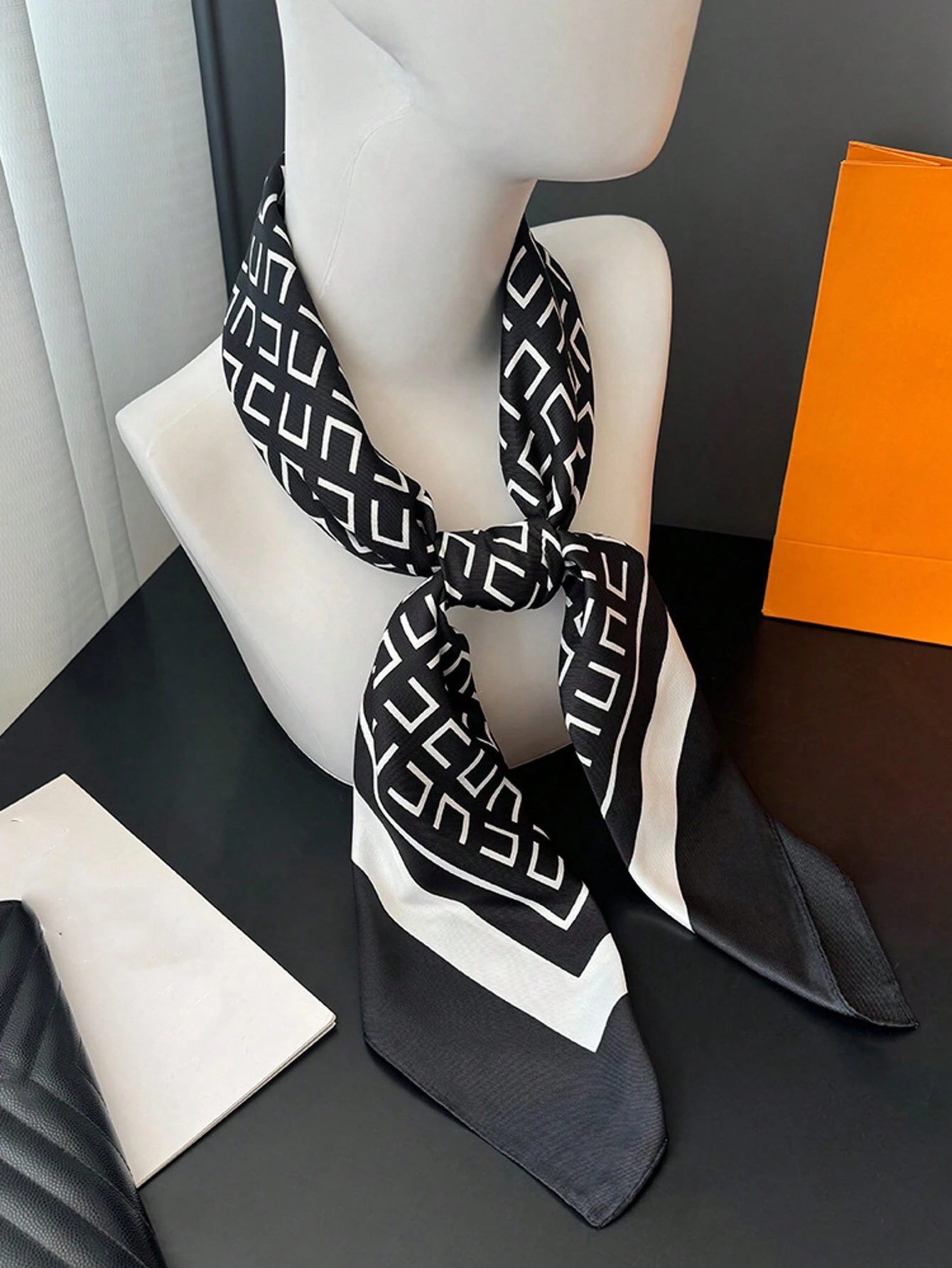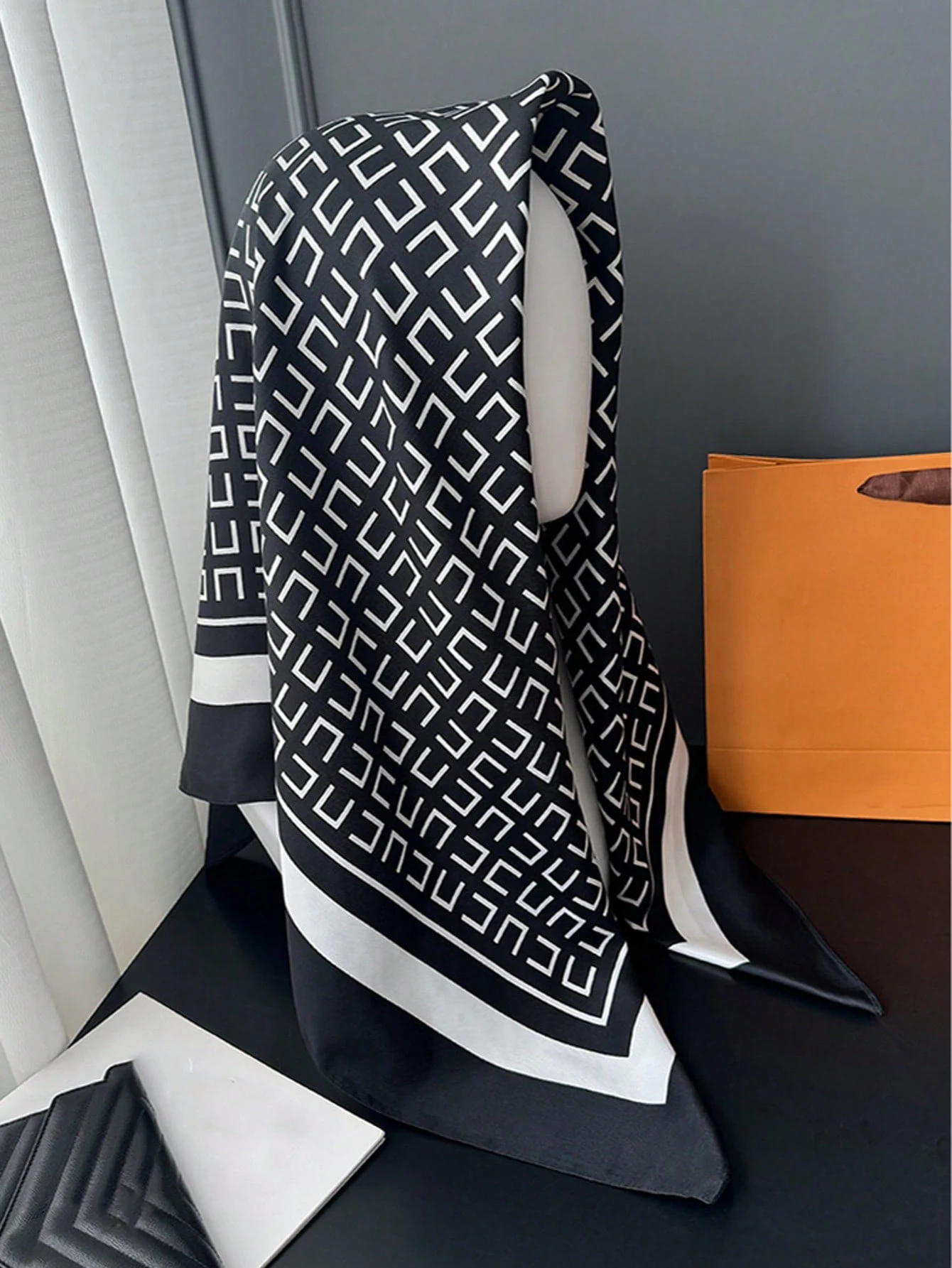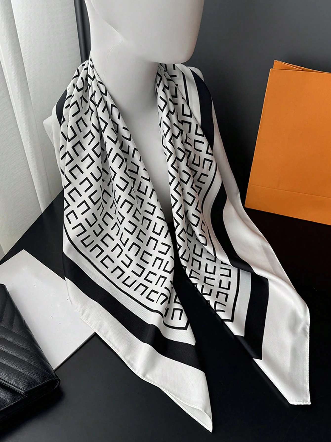 1pc 90*90CM Twill Satin Geometric Pattern Printed Large Square Bandana, Women Fashion Simple Elegant Printed Head Bandana, Casual Commuter Neck Bandana, Travel Sun Protection Decor Neck Gaiter
