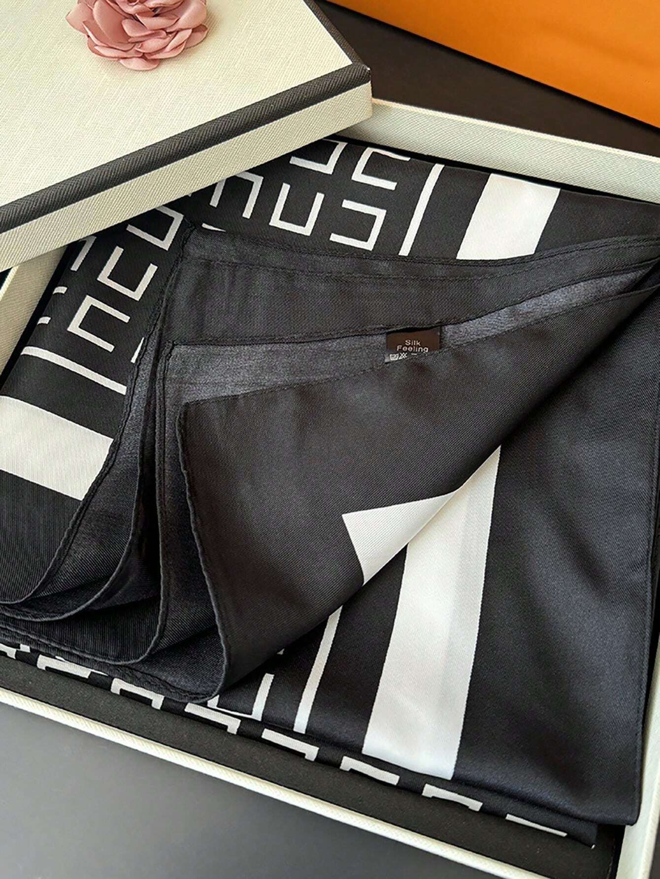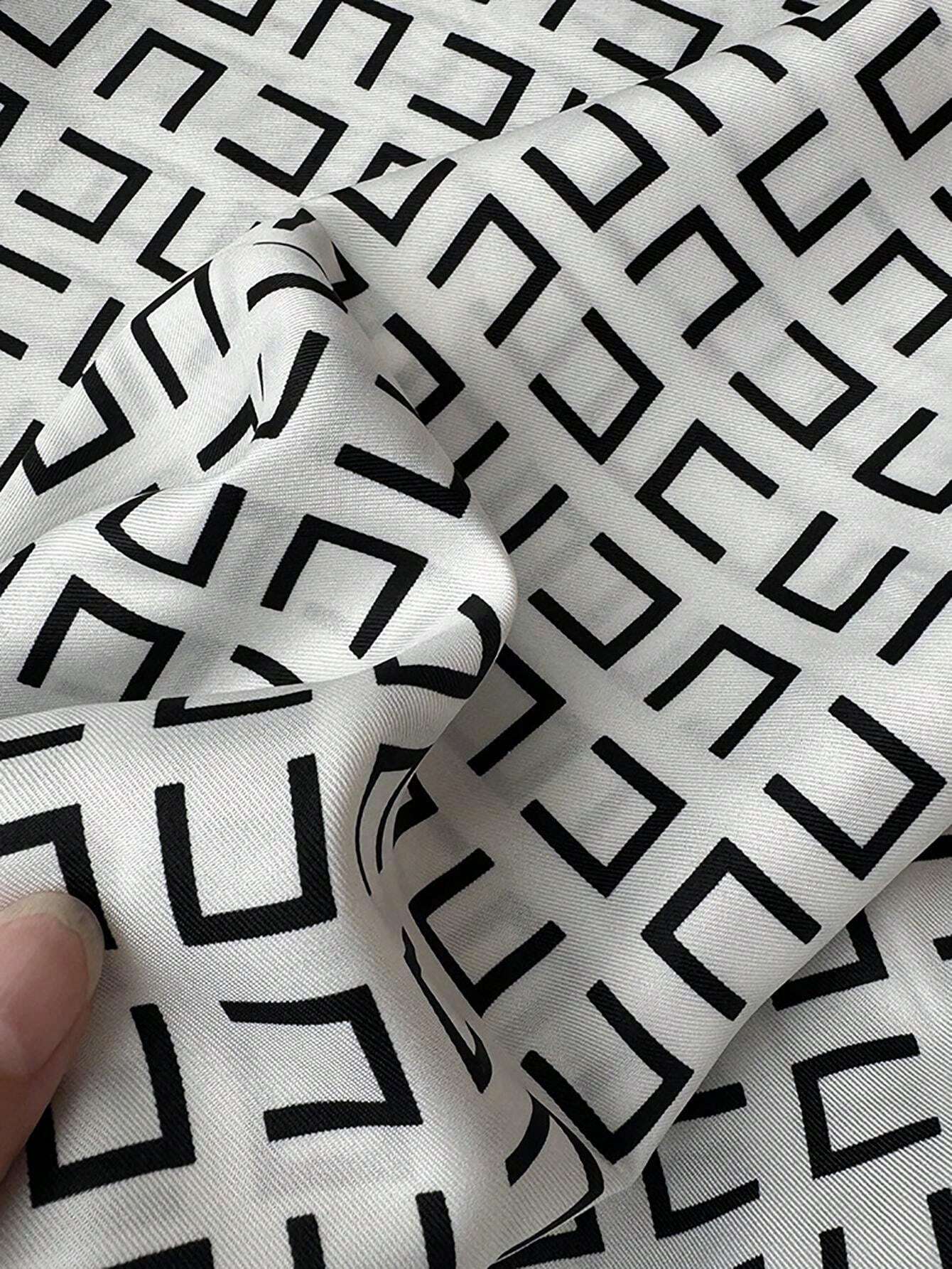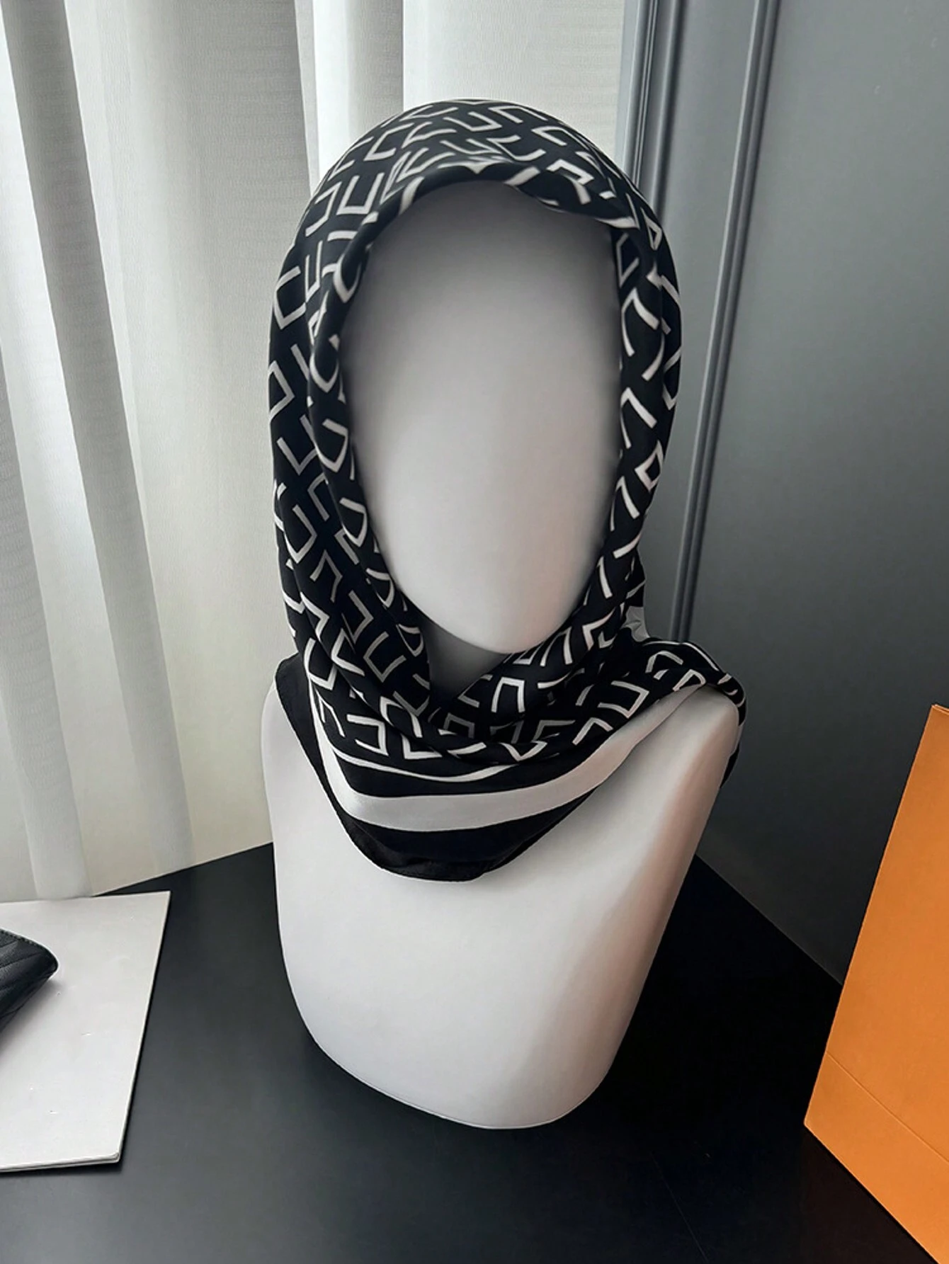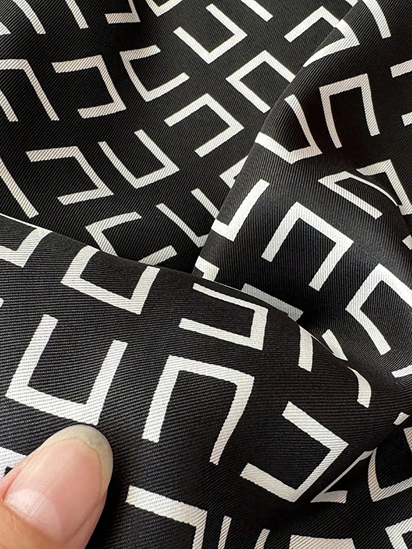 1pc 90*90CM Twill Satin Geometric Pattern Printed Large Square Bandana, Women Fashion Simple Elegant Printed Head Bandana, Casual Commuter Neck Bandana, Travel Sun Protection Decor Neck Gaiter