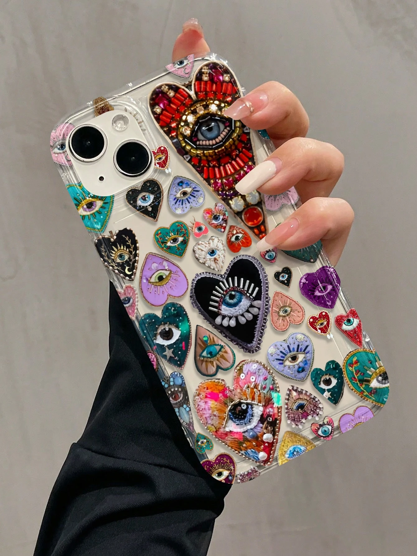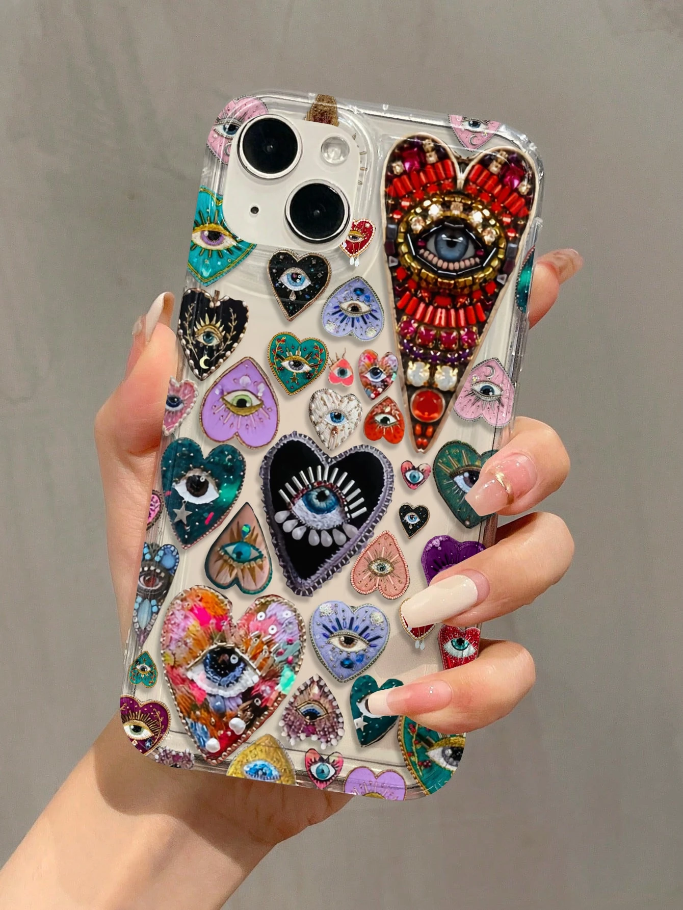 1pc Airbag Heart Eyes Design Anti-Drop Novelty Phone Case Suitable For Apple 16, 15, 14, 13, 12, 11 Pro Max, Compatible With Samsung Series