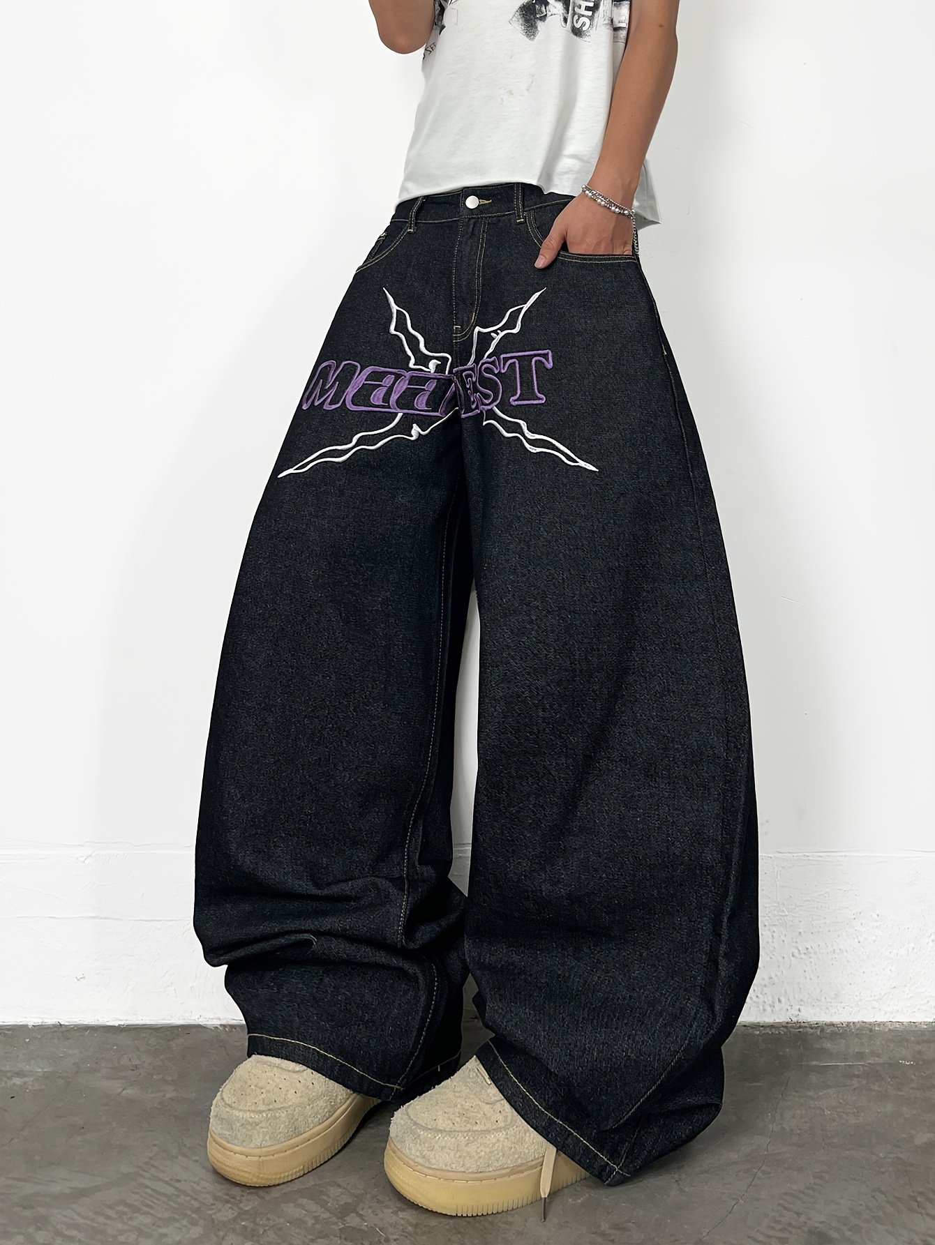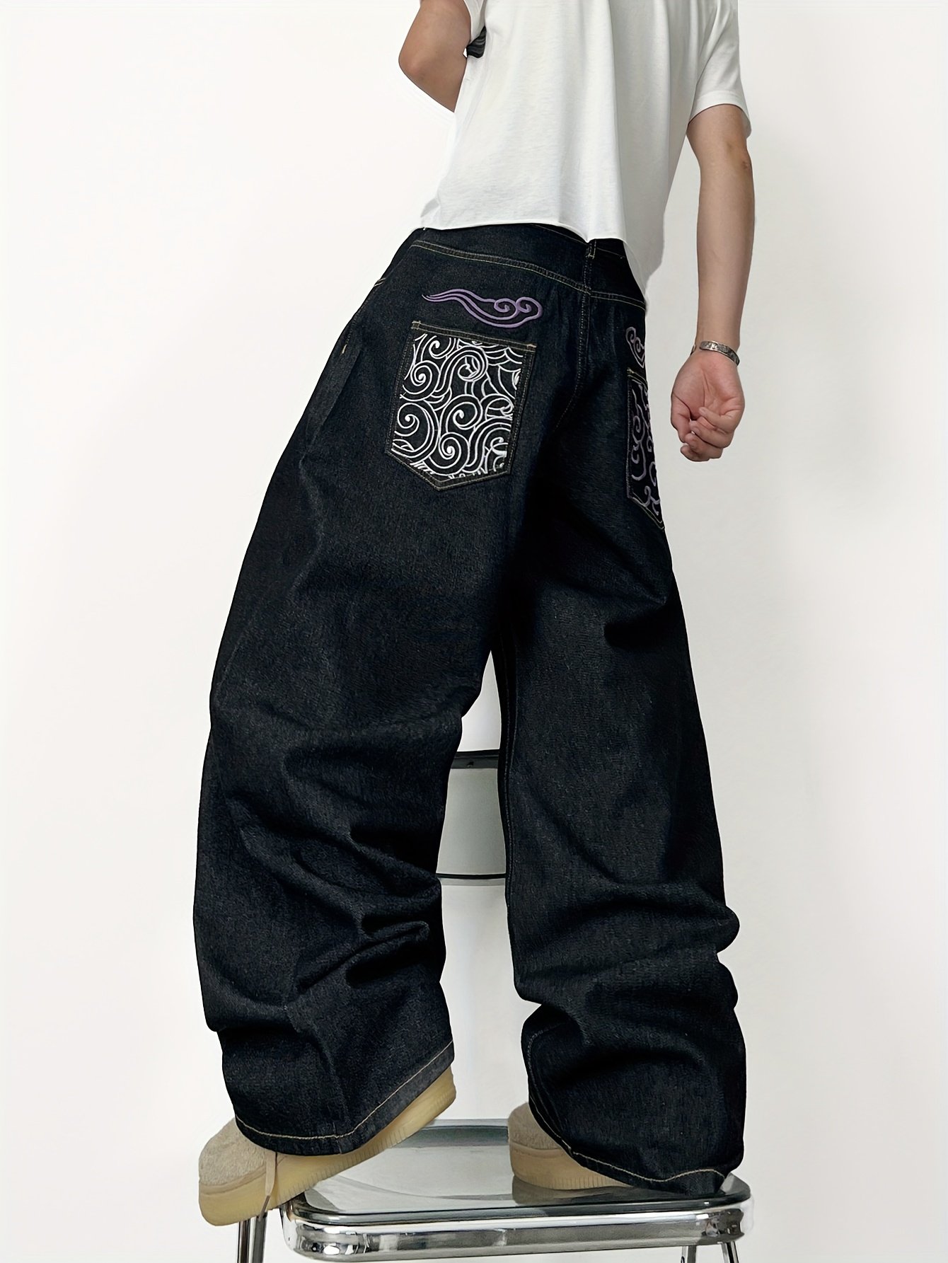 Be the first to review “1pc American High Street Niche Design Heavy Embroidery Loose Faux Denim, Distressed Washed Fashionable Versatile Wide Leg Pants, Unisex Without Belt/Without Pendant, Yk Pants, Men'S Faux Denim, Baggy Pants” Cancel reply