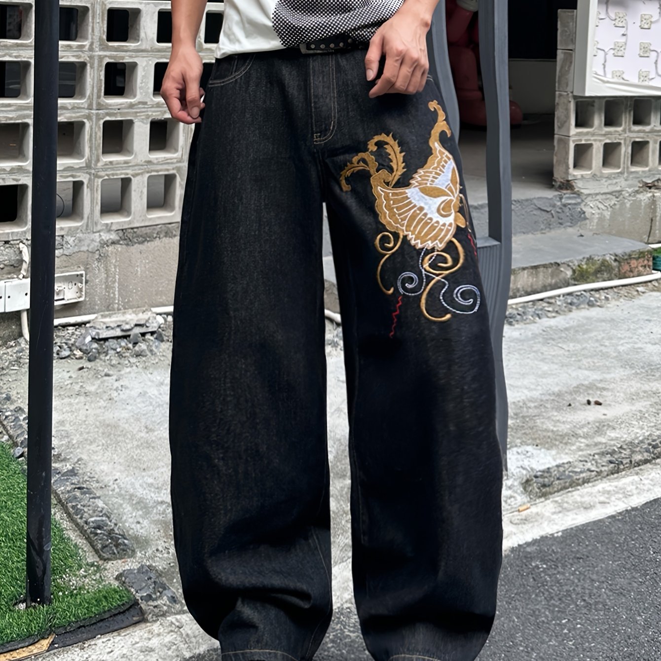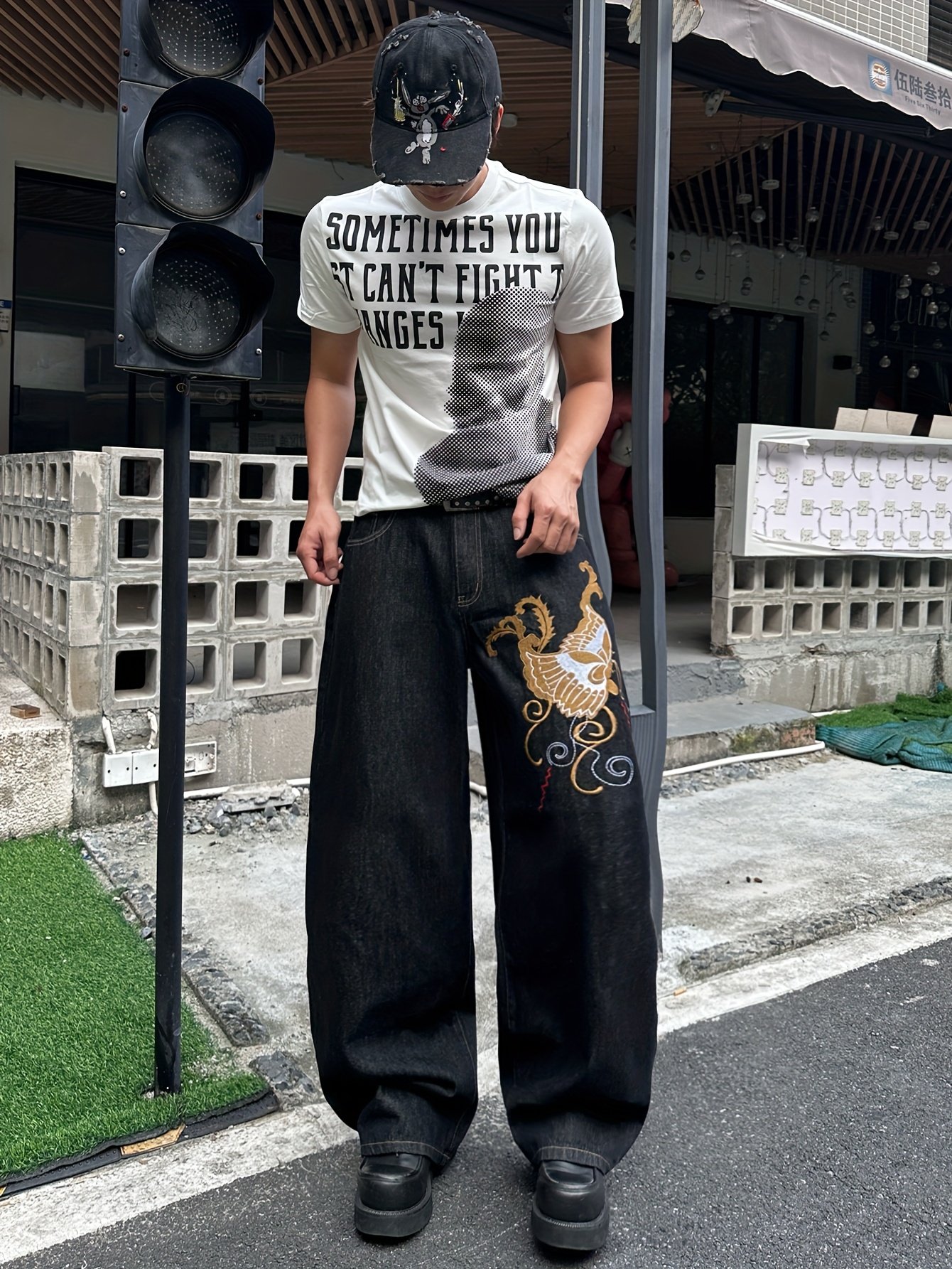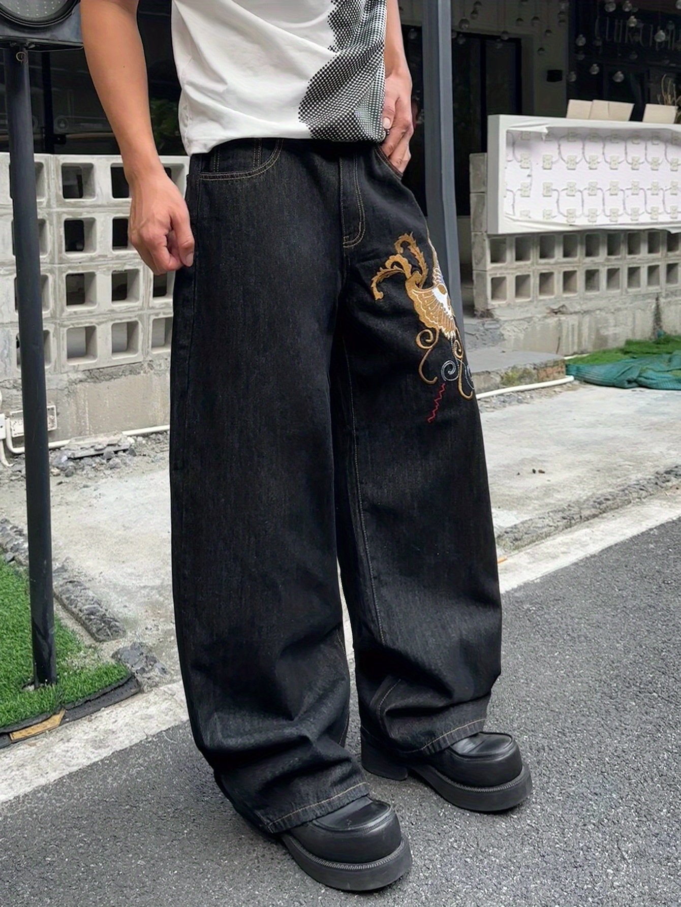 Men's Hip-Hop Loose Fit Wide-Leg Denim Pants, Beltless Skater Jeans