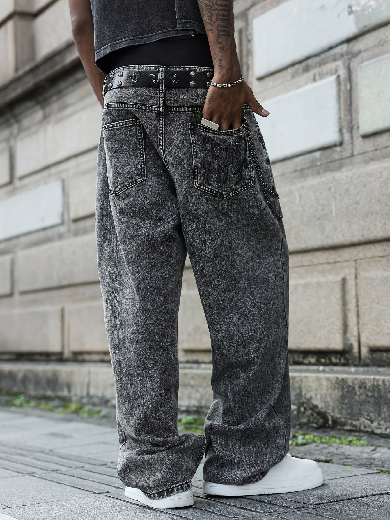 Be the first to review “1pc Black Vintage Wash Wide-Leg Jeans – Oversized Streetwear Pants with Black/White/Beige Thread Embroidery, Unisex Loose-Fit Trousers for Men & Women No Belt/Accessories, Machine Washable All-Season Casual Wear” Cancel reply
