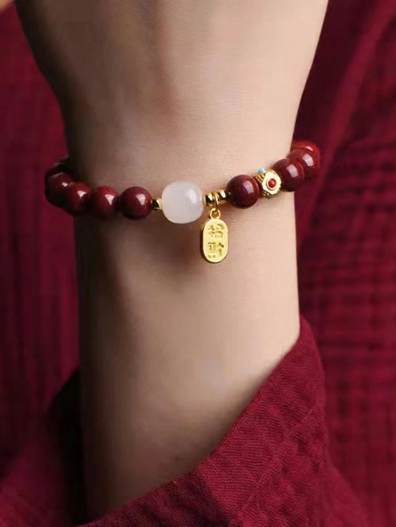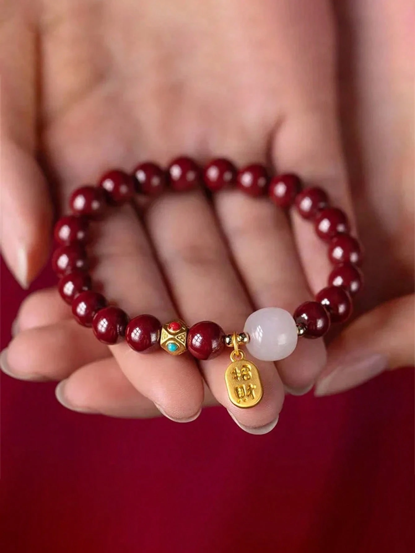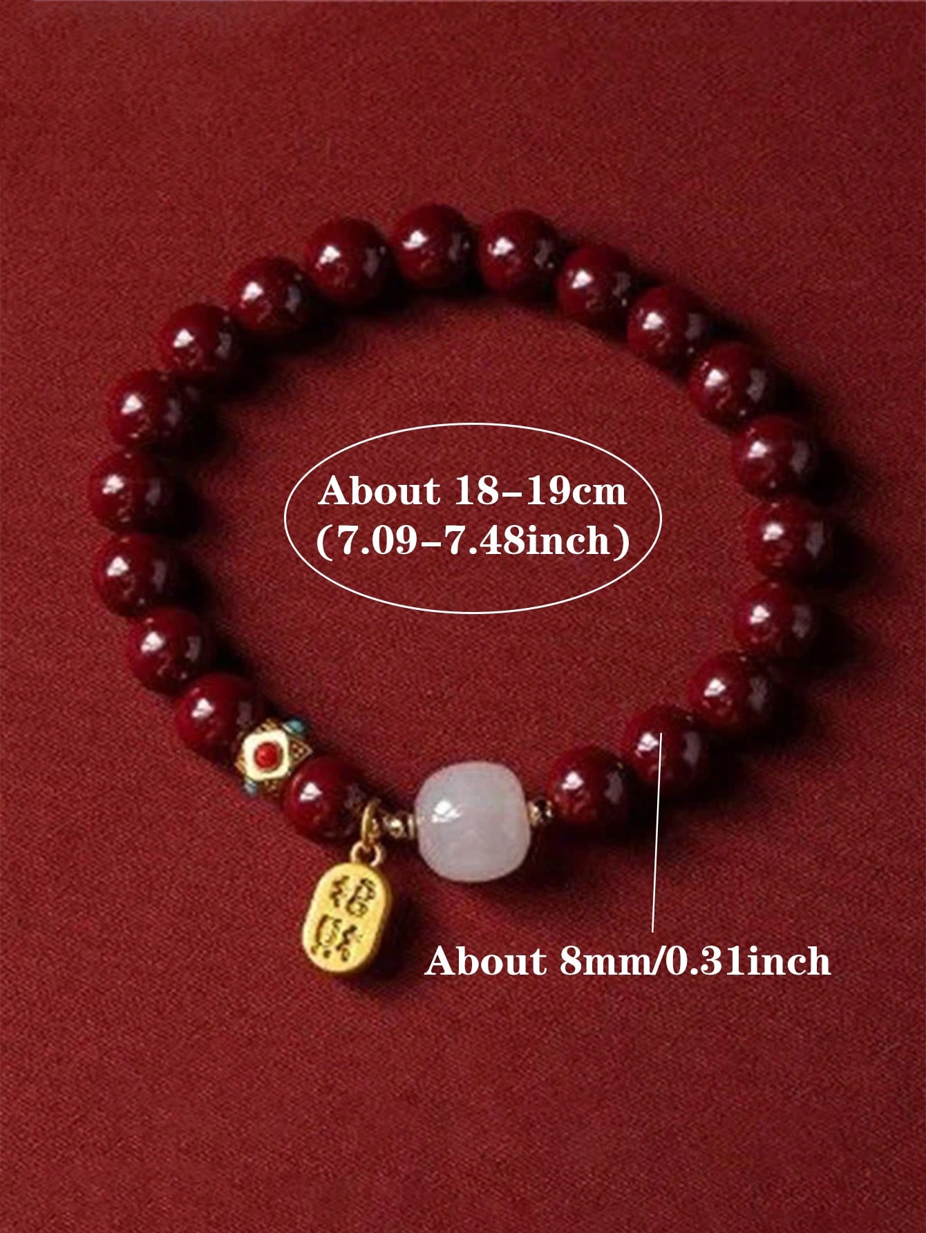 1pc Charm Vintage Cinnabar Beaded Bracelet Beads Prayer Bracelet For Women Men Wealth Good Luck Amulet New Year Jewelry Prosperity Attract Money
