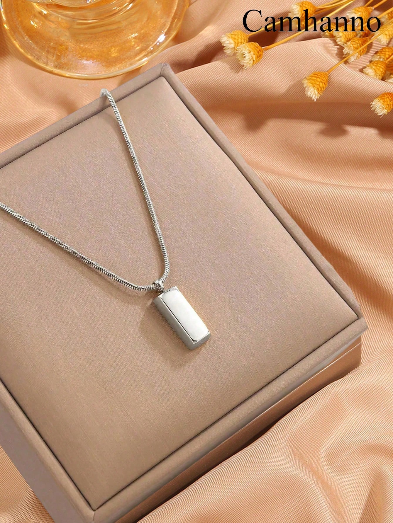 1pc Exquisite Design Sense Of Stainless Steel Geometric Square Pendant Necklace Suitable For Holiday Gifts Boyfriend