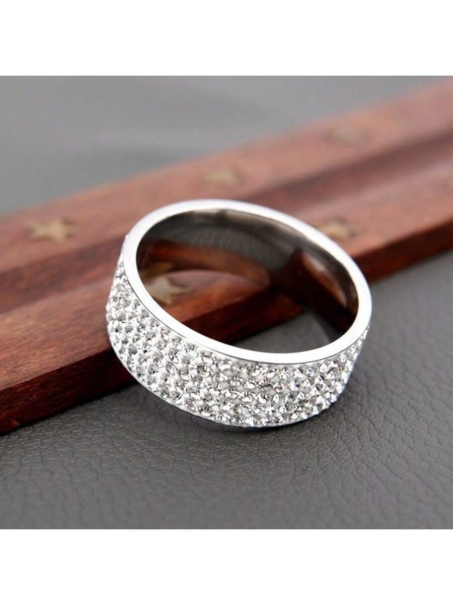 1pc Fashionable European & American 8mm 5-Row Zirconia Titanium Steel Ring, Precision Designed Micro Pave Rhinestone Couple Ring, Popular Jewelry Accessory, Bestselling Cross-Border, Stainless Steel Rhinestone Shimmering Band
