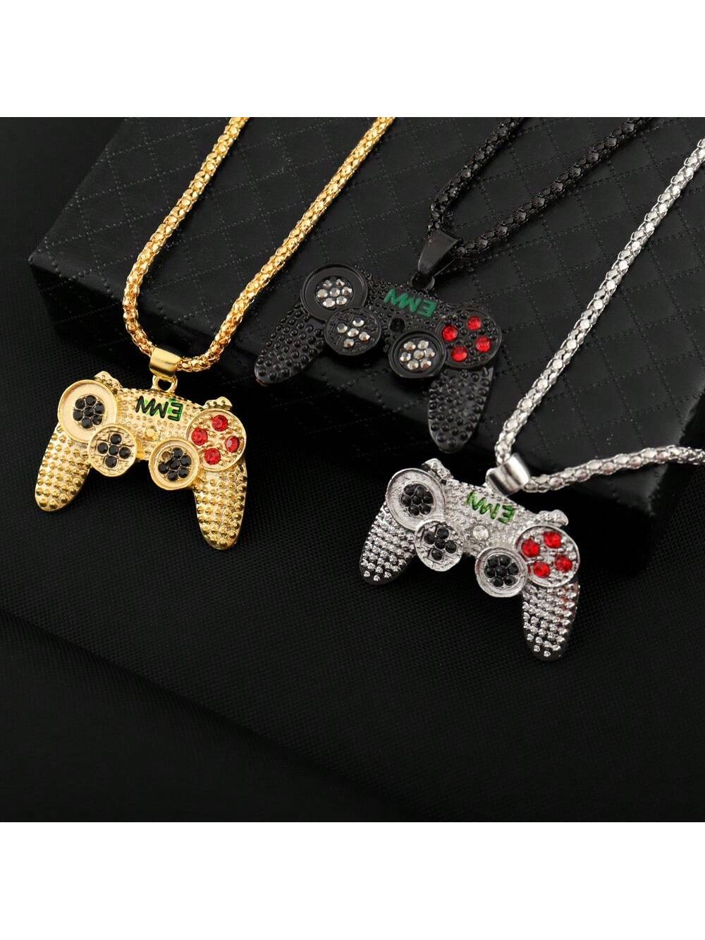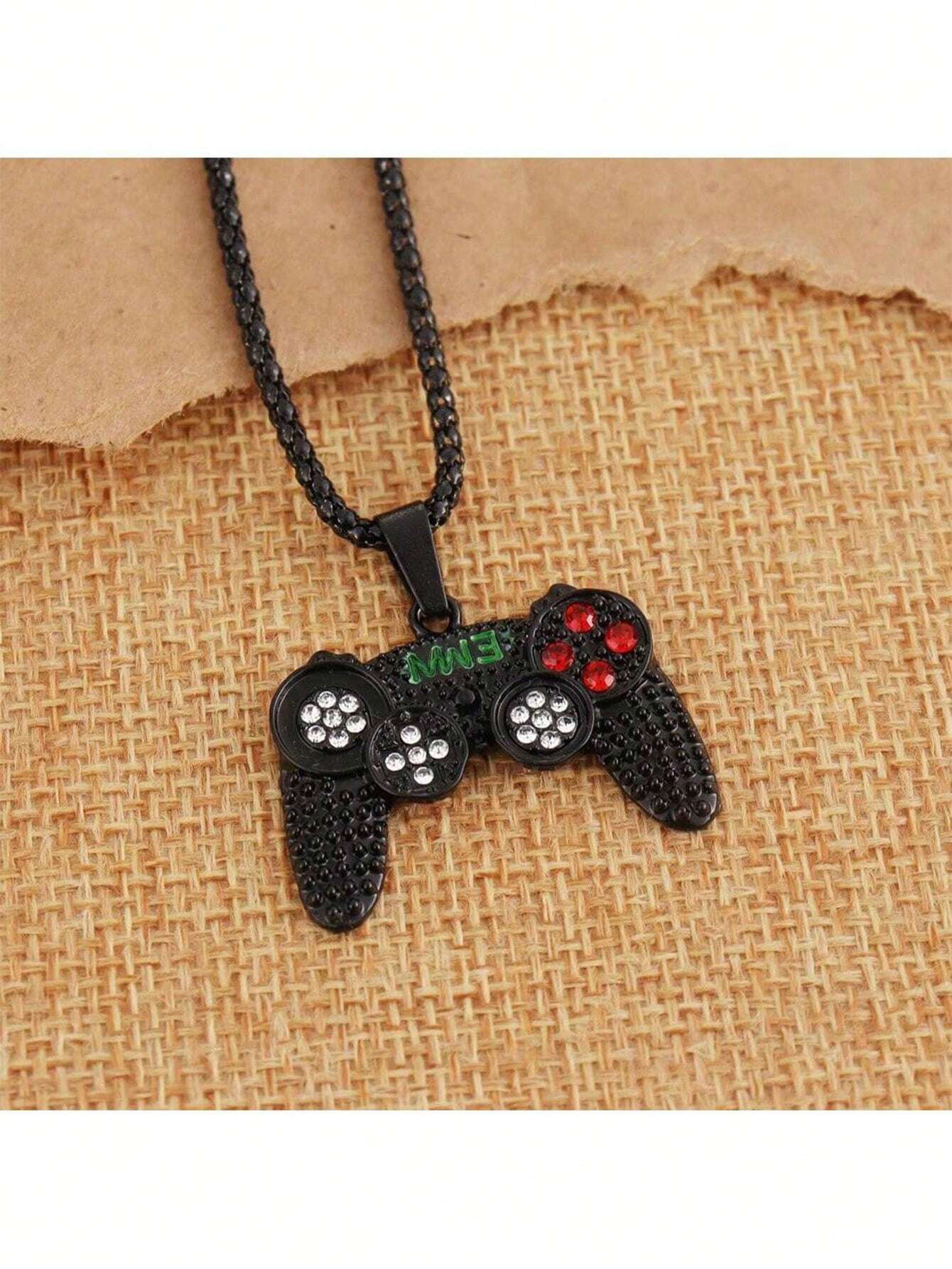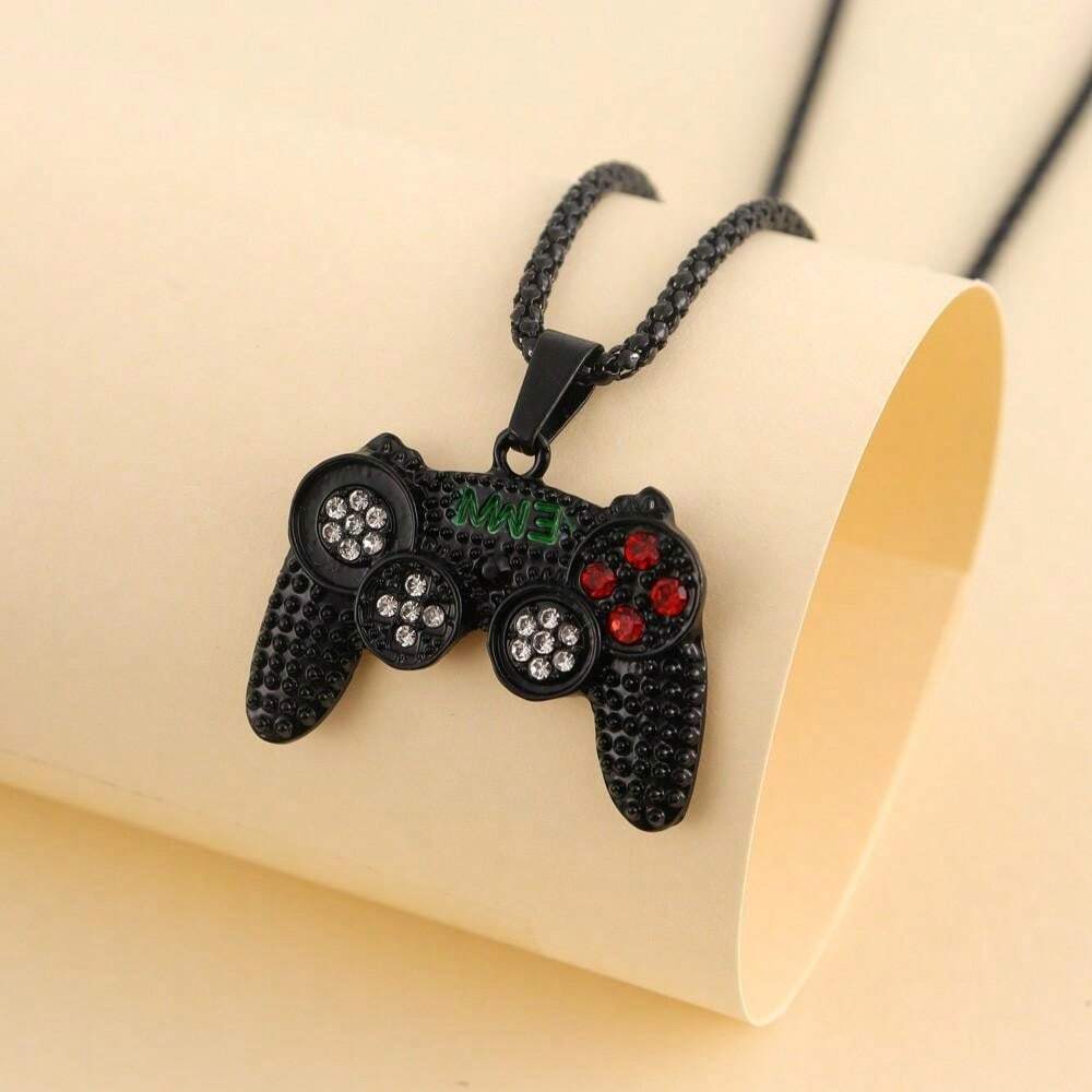 1pc Fashionable Stainless Steel Pendant Necklace With Gemstone Inlaid Game Controller Shape Pendant, A Must-Have Item For Gamers, Suitable For Both Men And Women; A Great Choice Of Gift For Friends On Special Occasions Such As Valentine's Day, Birthdays,