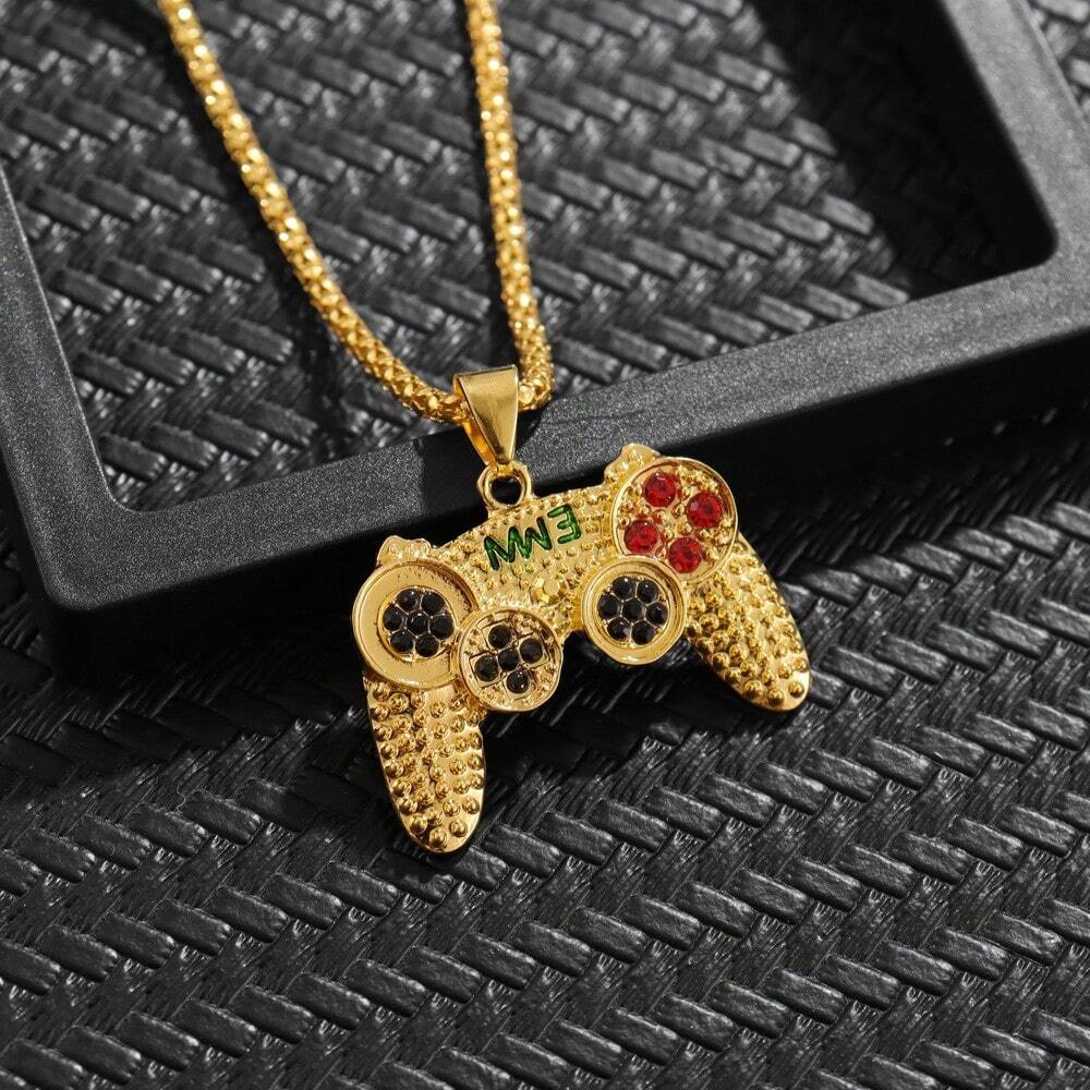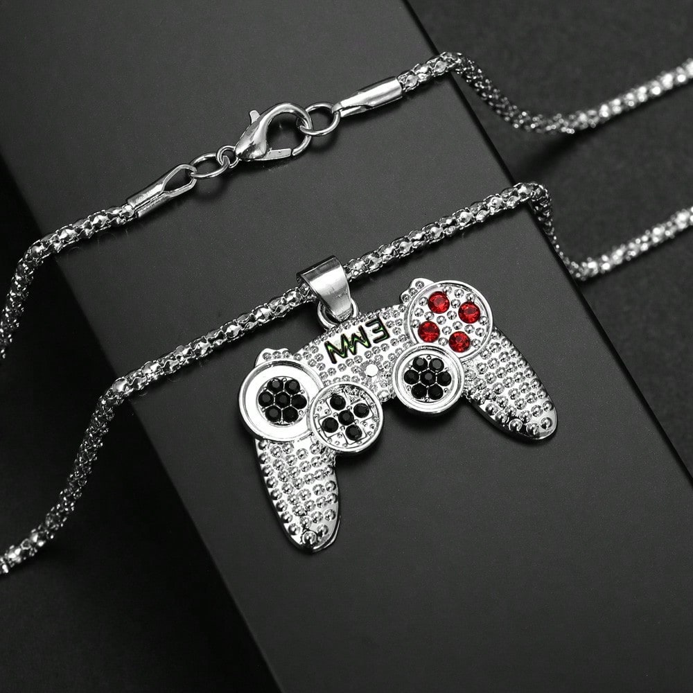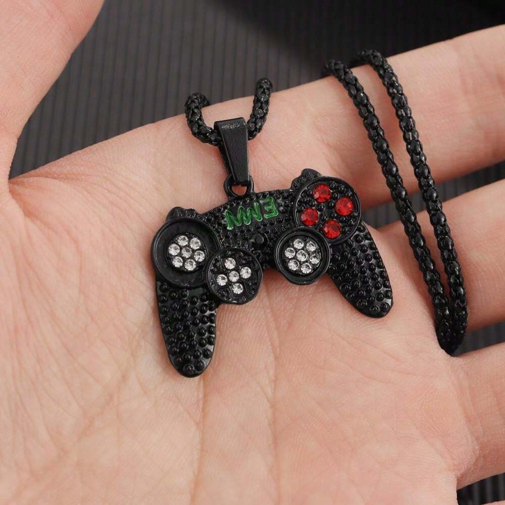 1pc Fashionable Stainless Steel Pendant Necklace With Gemstone Inlaid Game Controller Shape Pendant, A Must-Have Item For Gamers, Suitable For Both Men And Women; A Great Choice Of Gift For Friends On Special Occasions Such As Valentine's Day, Birthdays,