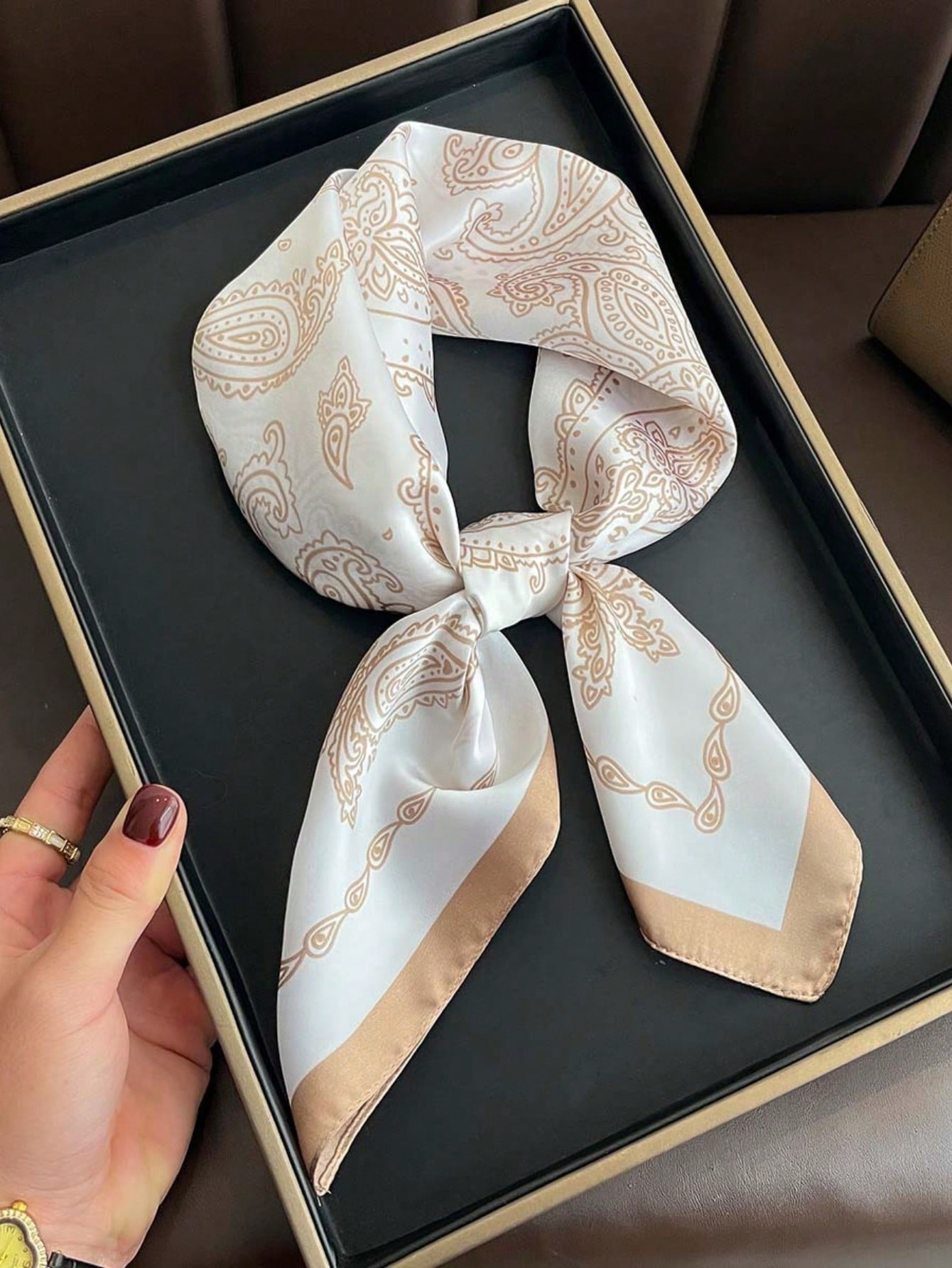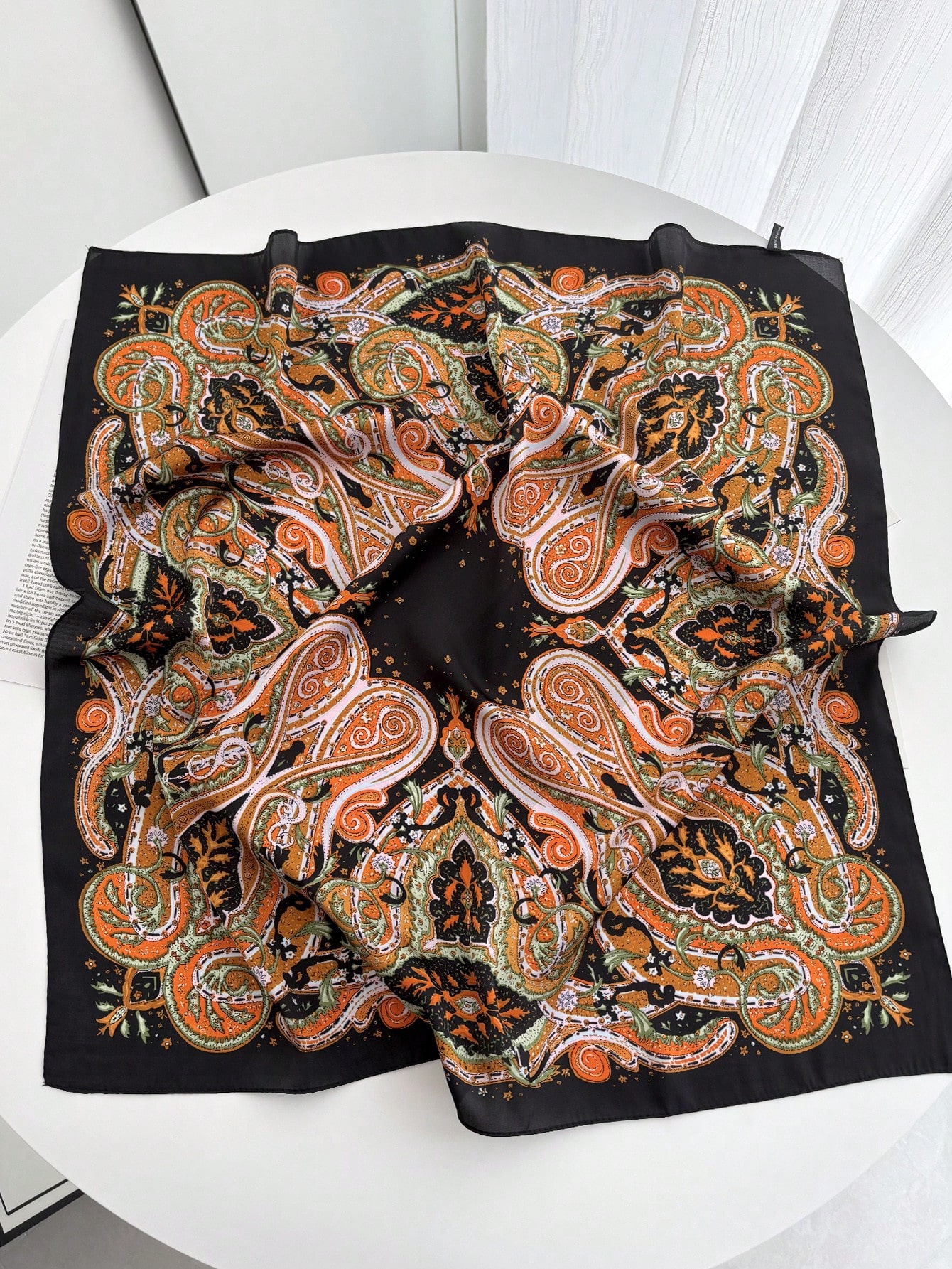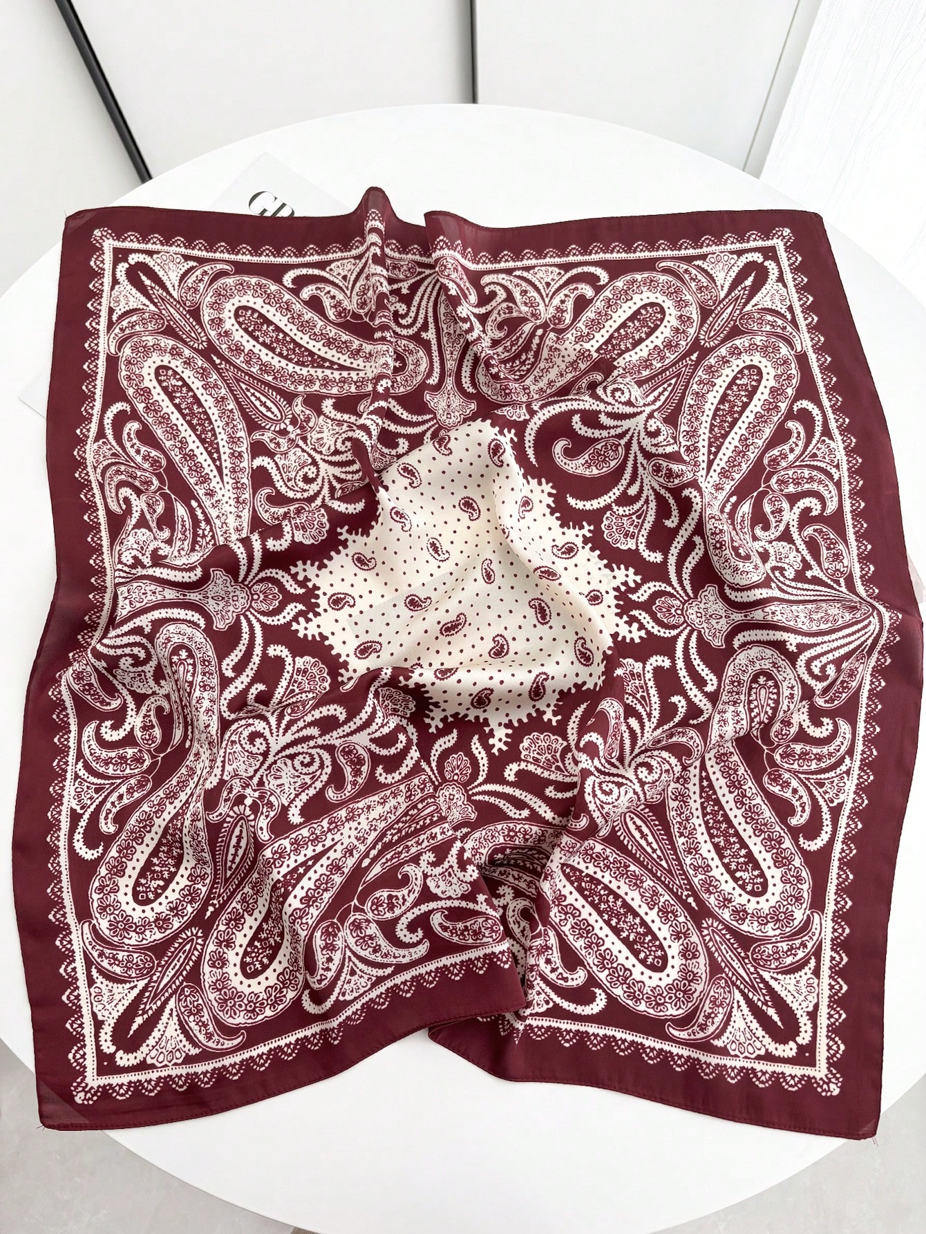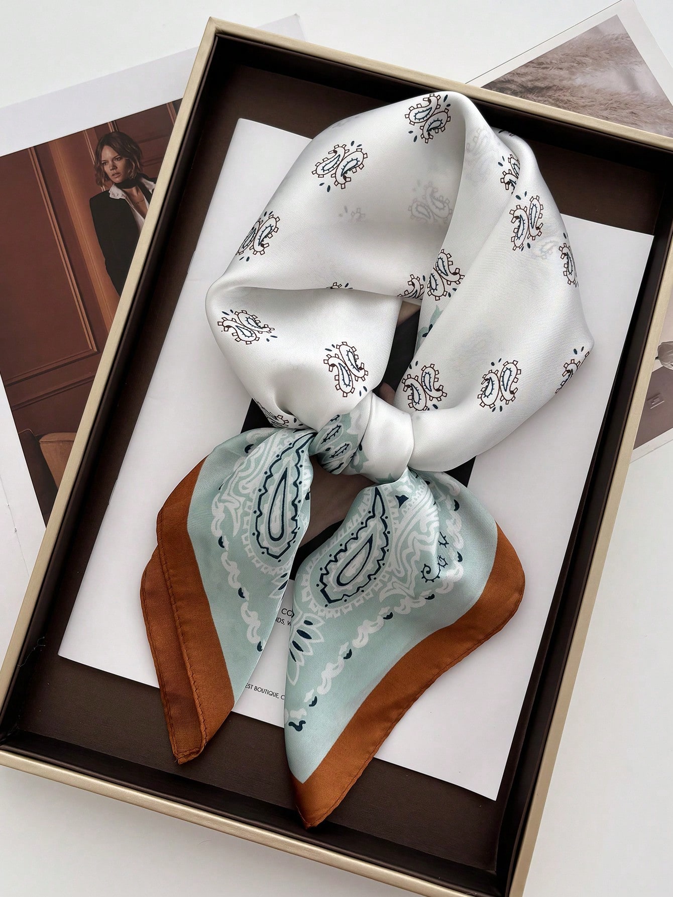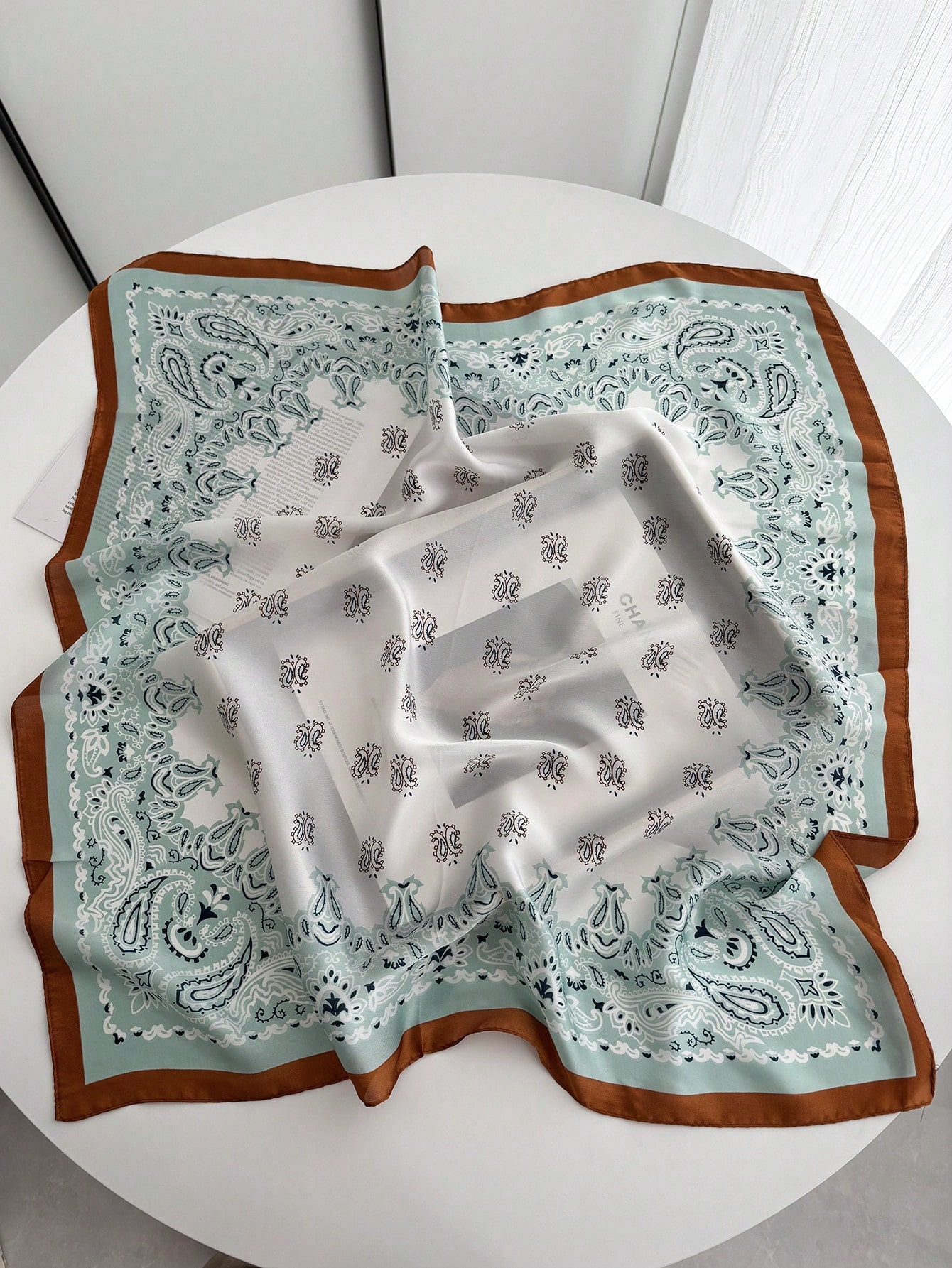 1pc Faux Silk Paisley Print 70cm Small Square Scarf, Versatile Lightweight Headscarf/Neckerchief For Women & Men