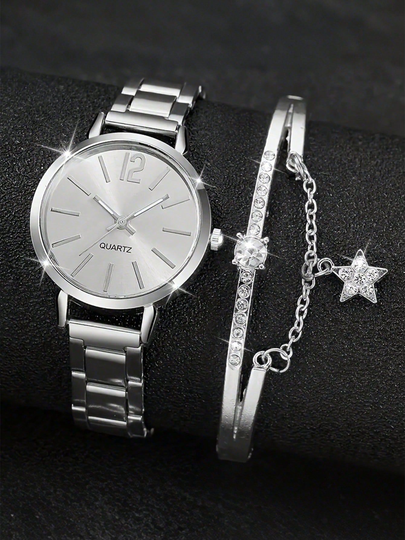 1pc Graduation Digital Small Disc Girls Steel Strap Watch And 1pc Bracelet Jewelry Set For Ladies
