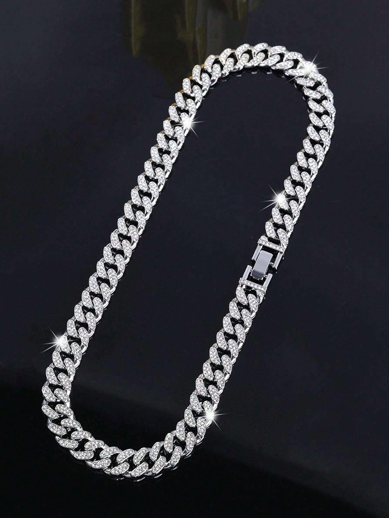 1pc Hip-Hop Fashion Ice Crystal Inlaid Shiny Rhinestone Cuban Necklace Bracelet, Fashionable Cuban Chain, Suitable For Men And Women, Gift Recommendation, New Year Gift