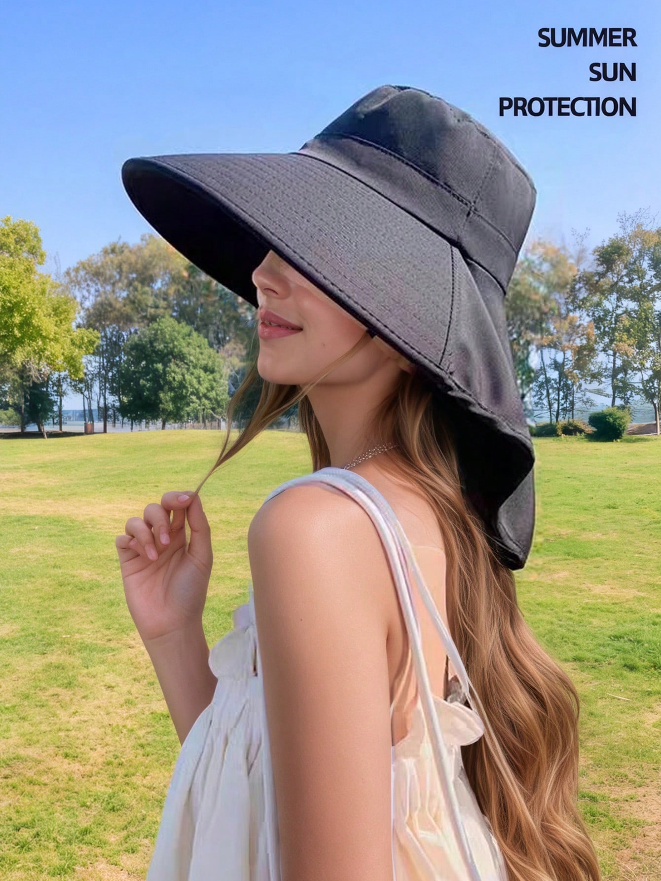 1Pc Ladies Navy Blue Oversized Sun Hat Breathable And Light Wide Edge Face Neck And Ear Protection Waterproof Perfect For Hiking Travel Beach And City Walks Outdoor Sun Protection Oversized Edge Hat Stylish Lightweight Hat Gift For Girlfriend