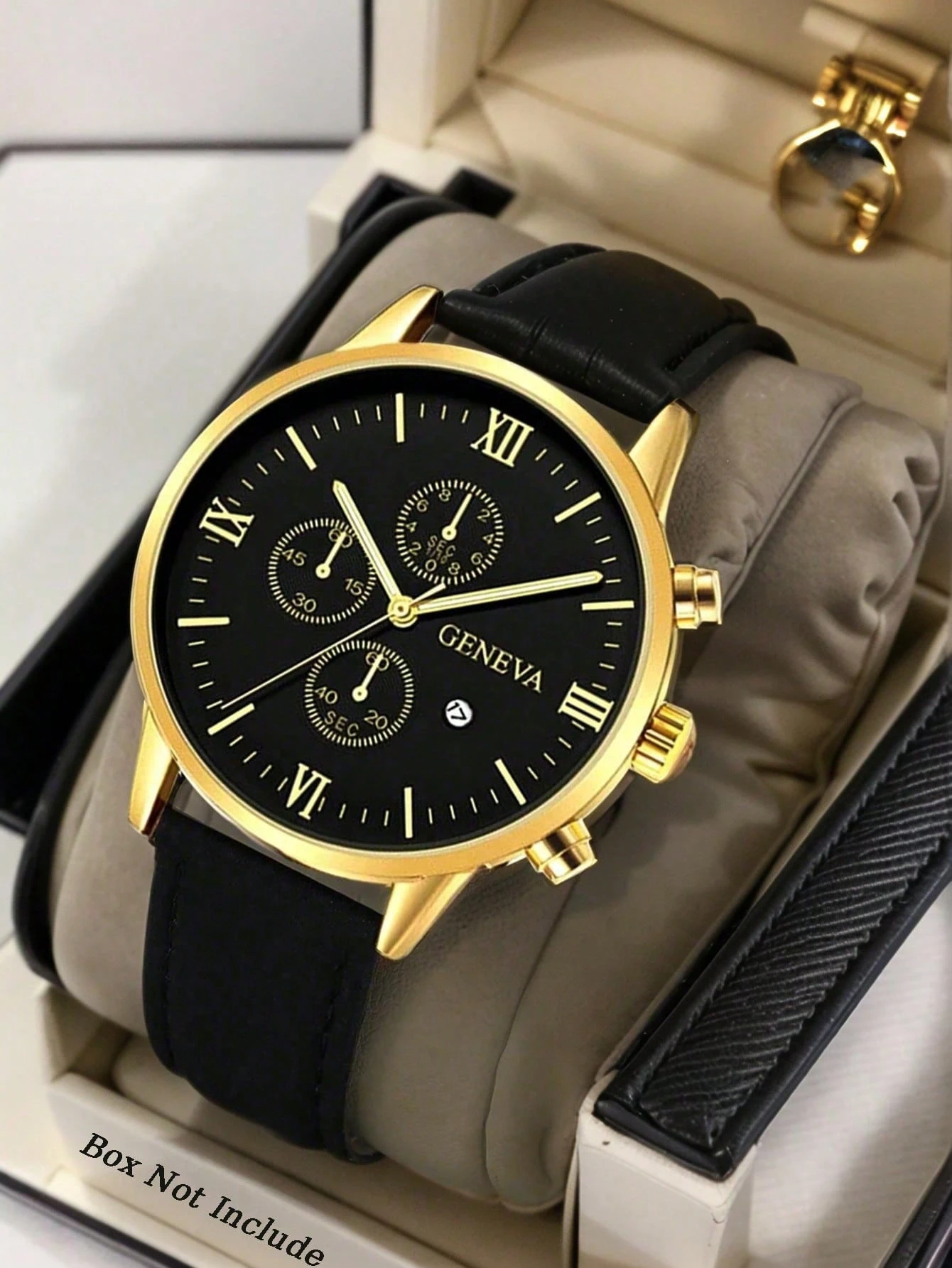 1pc Leather Men Watch Gold The Calendar Function Allows Manual Adjustment Of The Hands. The Adjustable Watch Strap Is A Fashionable Item For Going Out And A Must – Have For Traveling. It Is The Perfect Choice For Formal Attire. It Is A Great Outfit Item F