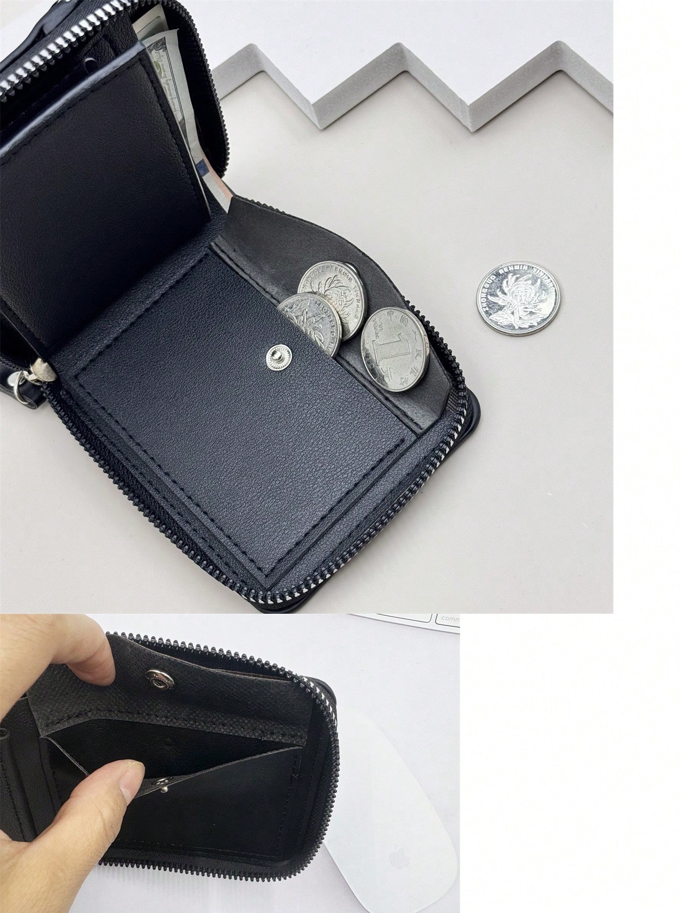 Home Accessories Men-Accessories Wallets & Belts-MA 1pc Men's Short PU Leather Wallet, Fashionable Plaid Soft Wallet, Horizontal Zipper Wallet Bifold Coin Purse, Woven Pattern Patchwork Wallet, Large Capacity Multi-Card Slots, Can Hold Large Bills, ID Photo Slot, Letter Decor, Simple Coin Pocket, Credit/Ba