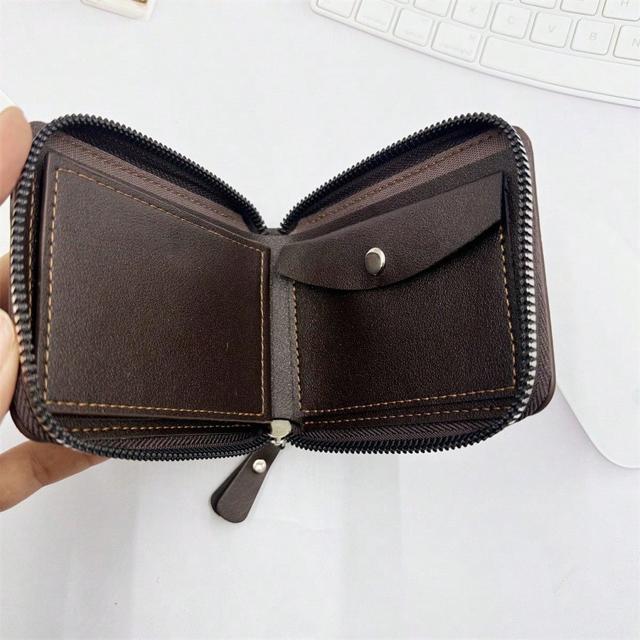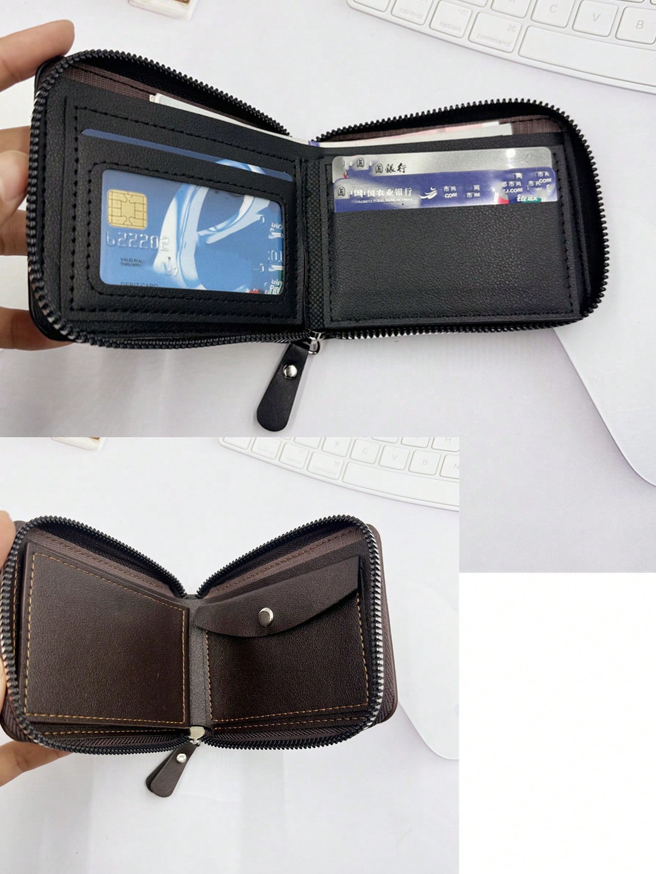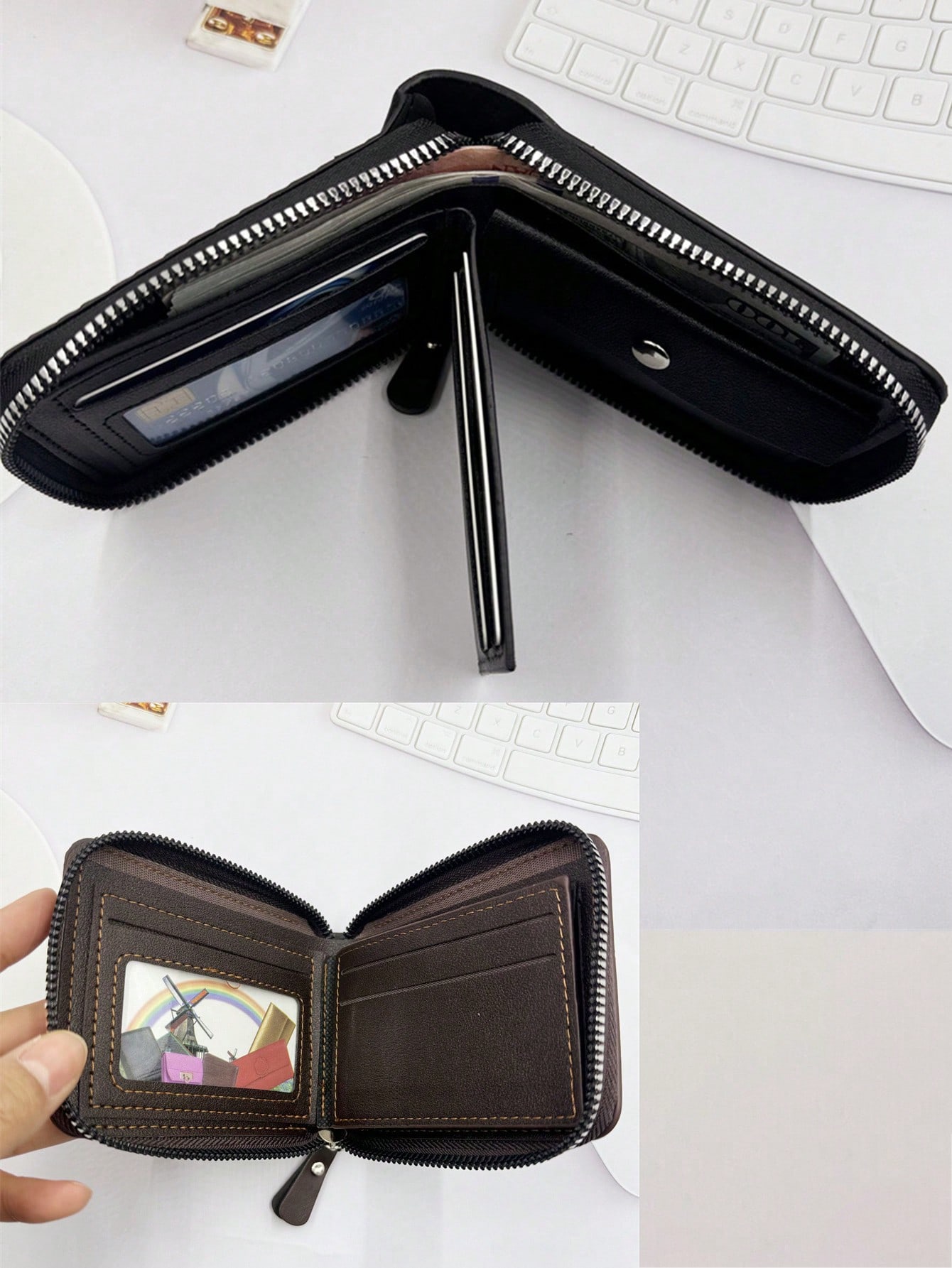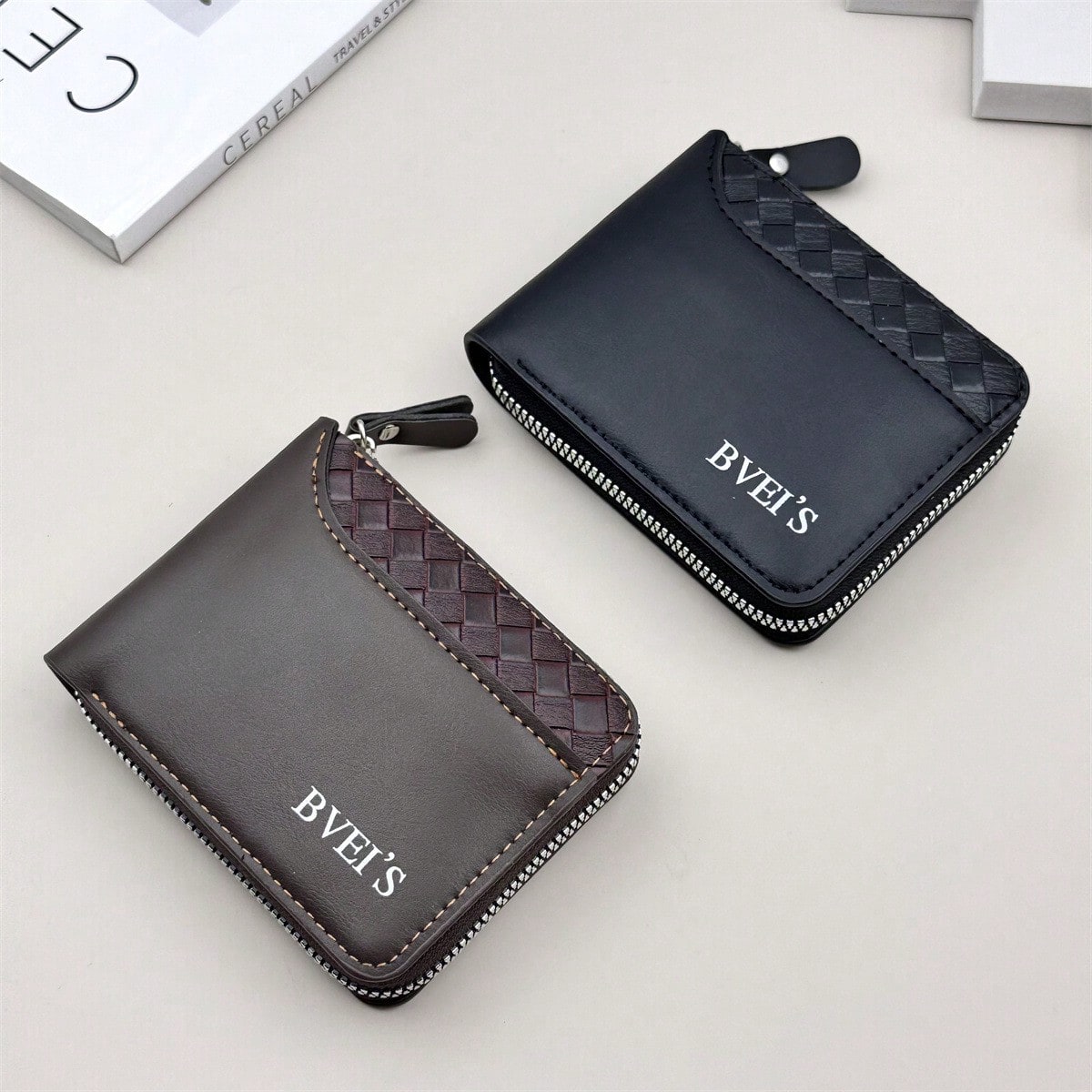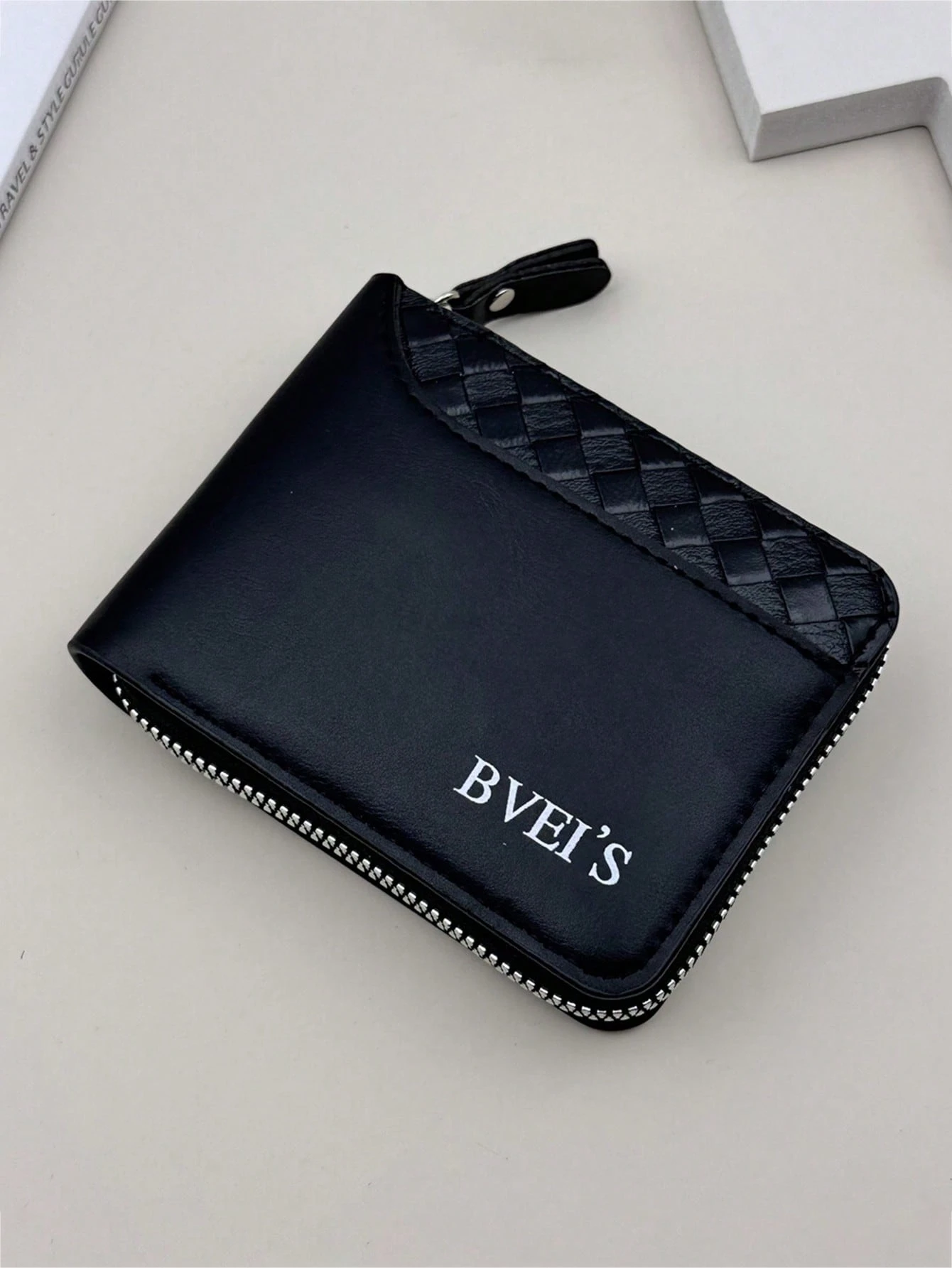 1pc Men's Short PU Leather Wallet, Fashionable Plaid Soft Wallet, Horizontal Zipper Wallet Bifold Coin Purse, Woven Pattern Patchwork Wallet, Large Capacity Multi-Card Slots, Can Hold Large Bills, ID Photo Slot, Letter Decor, Simple Coin Pocket, Credit/Ba