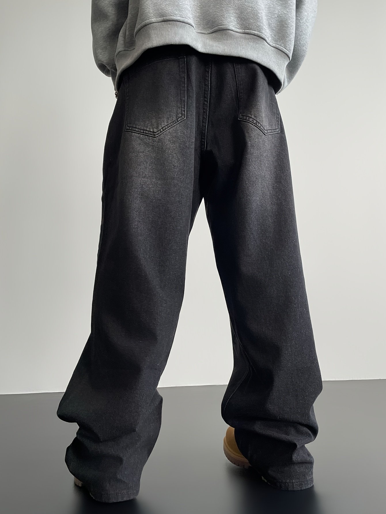 Men's Hip-Hop Loose Fit Wide-Leg Denim Pants, Beltless Skater Jeans