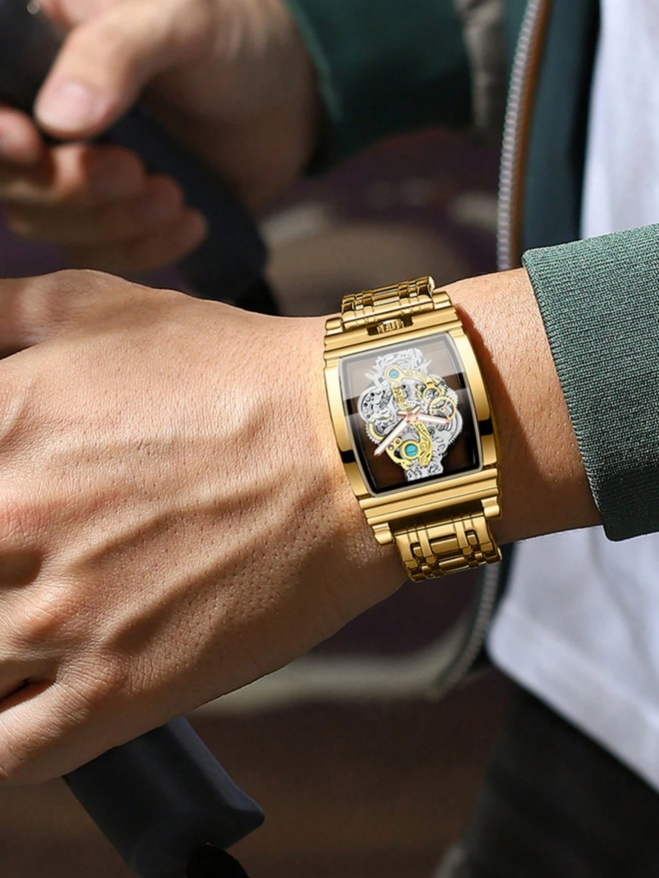 Be the first to review “1PC Men's Wristwatch, Luminous Hands, 30-Meter Water Resistance, Mineral Glass Crystal, 316 Stainless Steel Strap, Barrel-Shaped Three-Dimensional Dial, Tourbillon Design, Locomotive Gear Skeleton Watch, Luxury Gold Men's Watch, Casual Sports Watch, For D” Cancel reply
