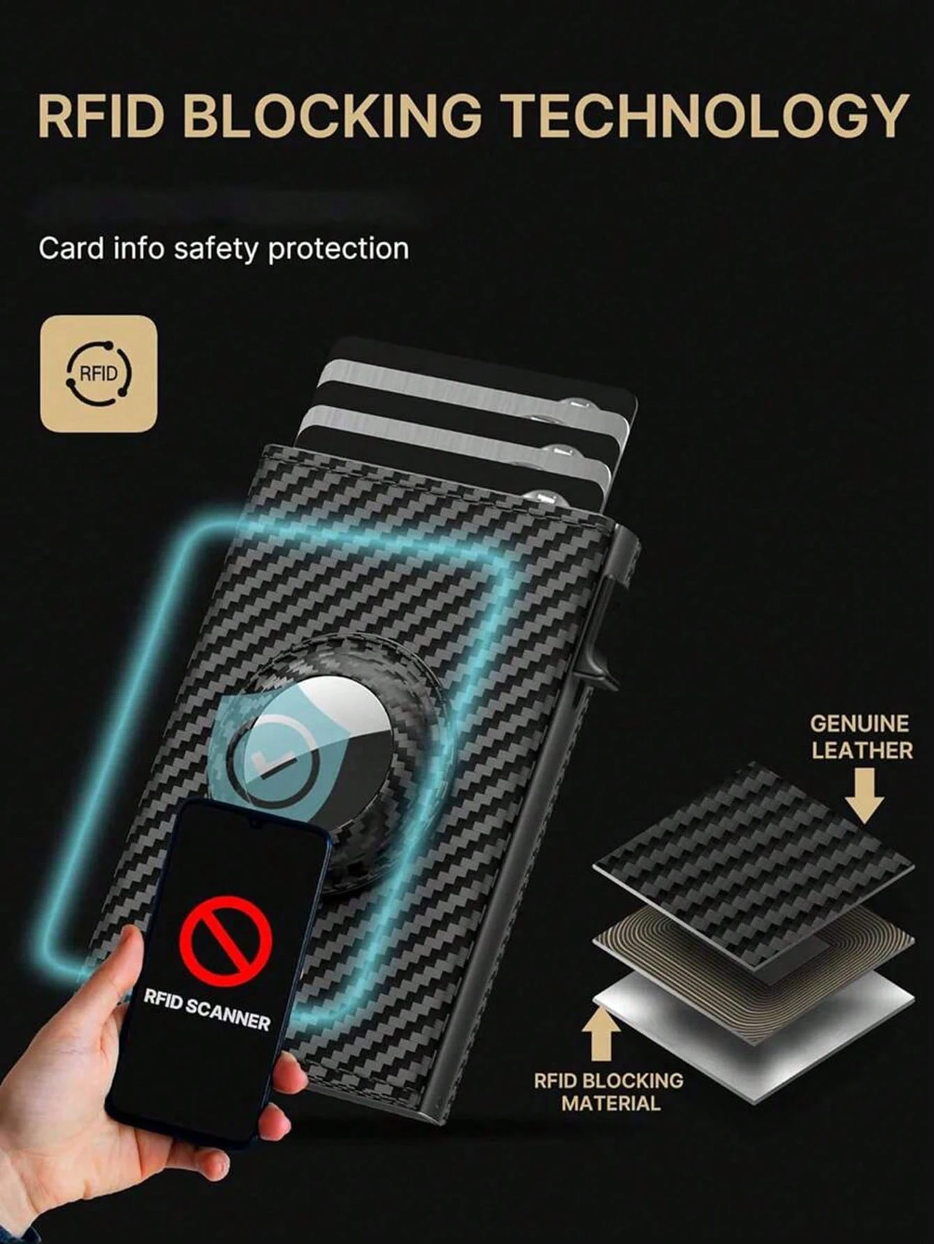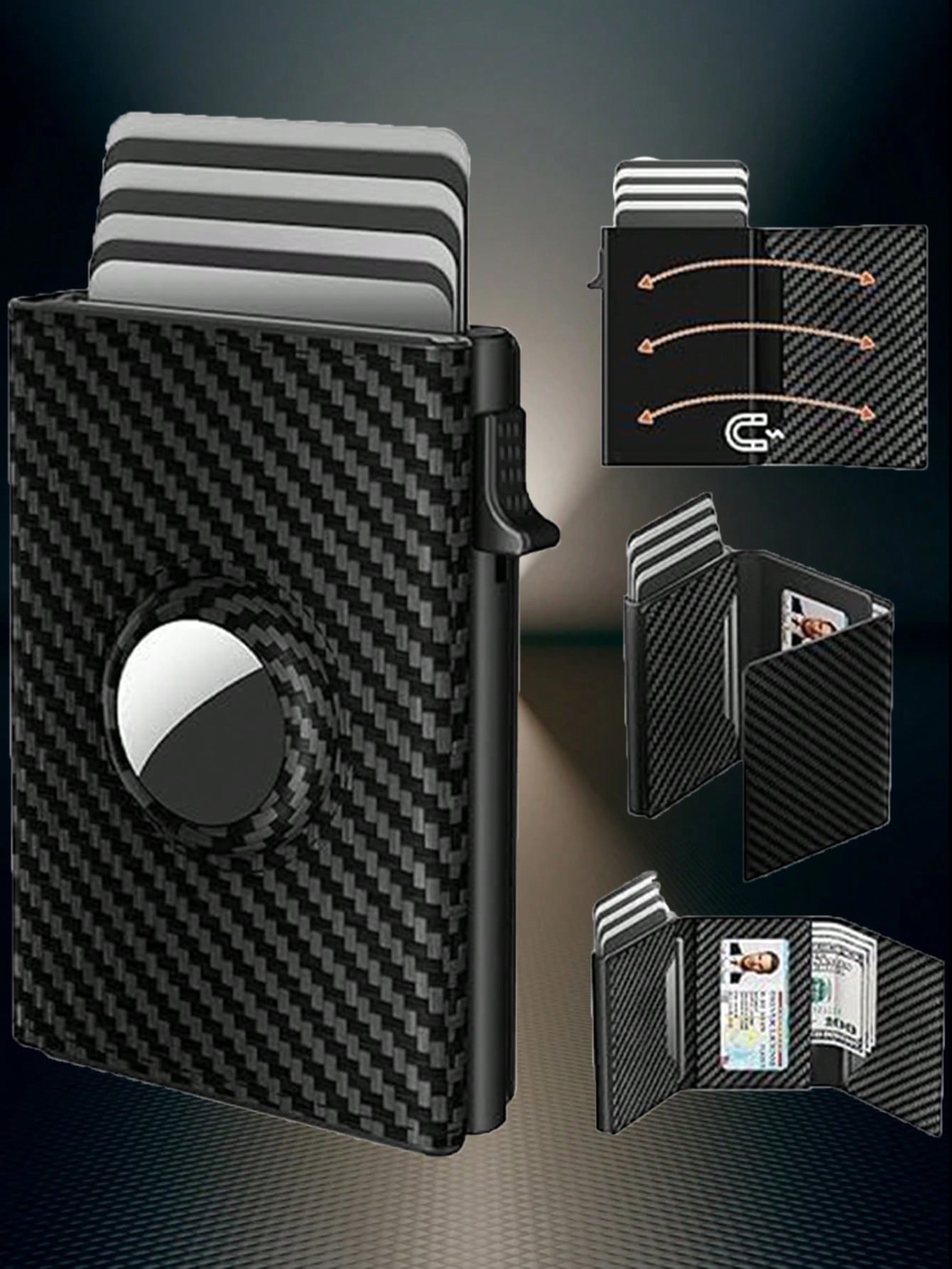 1pc Multifunctional Men Wallet, Fashion, Minimalist Credit Card Holder, Shield, Pop-Up Card Holder, High Quality Faux Leather, Carbon Fiber, Smart, Slim, 9-14 Card Capacity | ID Window, Suitable For Father, Husband, Brother, Best GiftThe Product Does Not