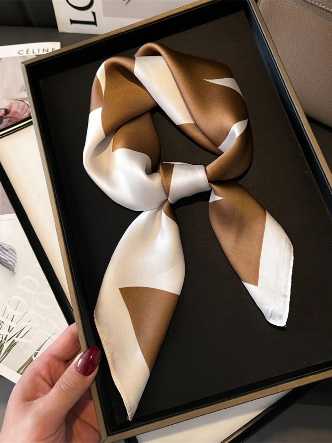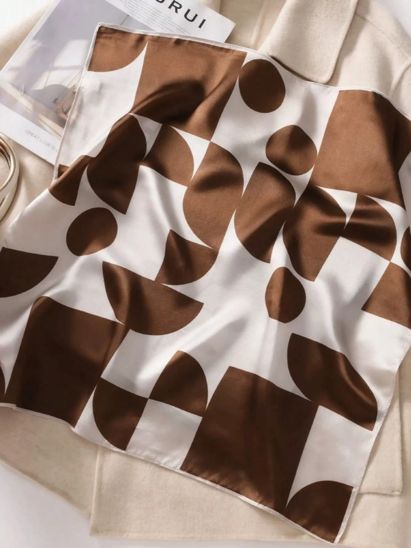 1pc Printed Faux Silk Small Square Scarf, Minimalist Fashion Versatile Geometric Pattern Bandana For Women, Essential For Spring And Summer