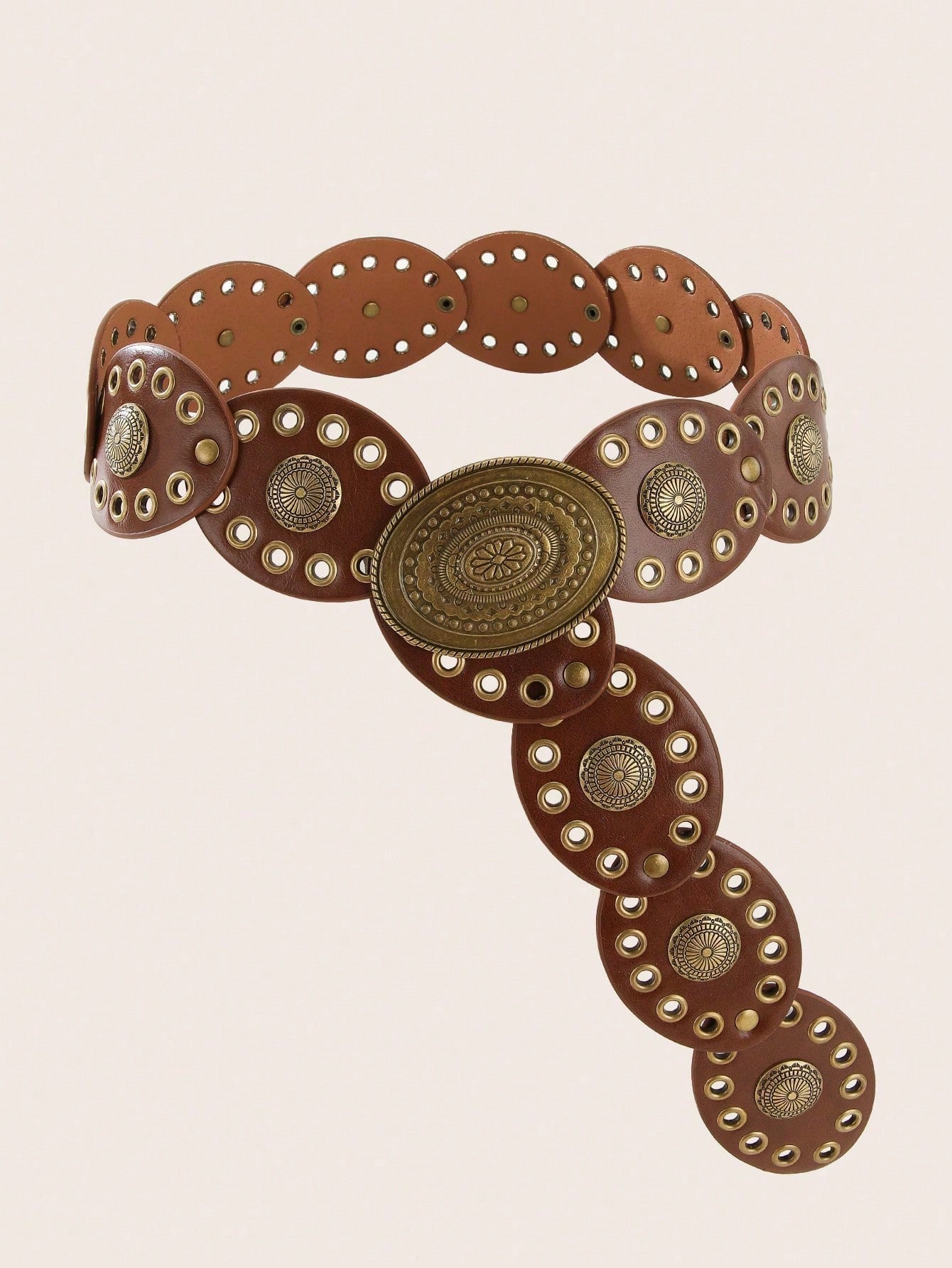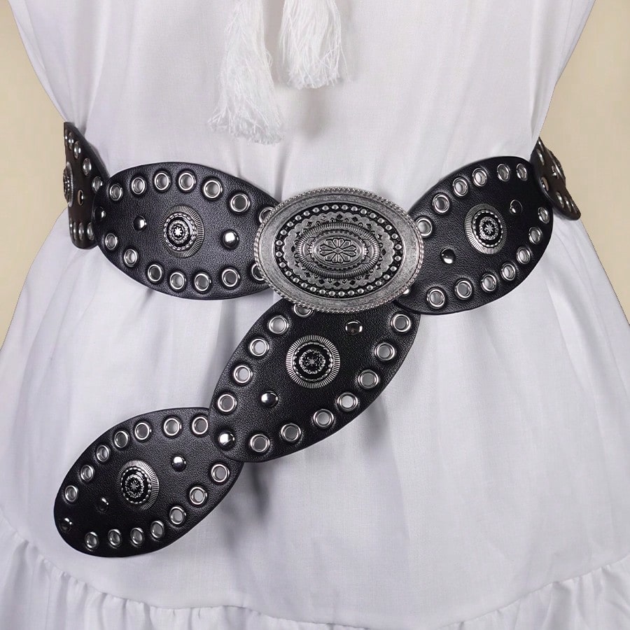 1pc Punk Style Vintage Rivet & Mesh Oval Shaped Denim Belt/Dress Belt For Women, Suitable For Daily Gathering And Holiday Wear Summer, School