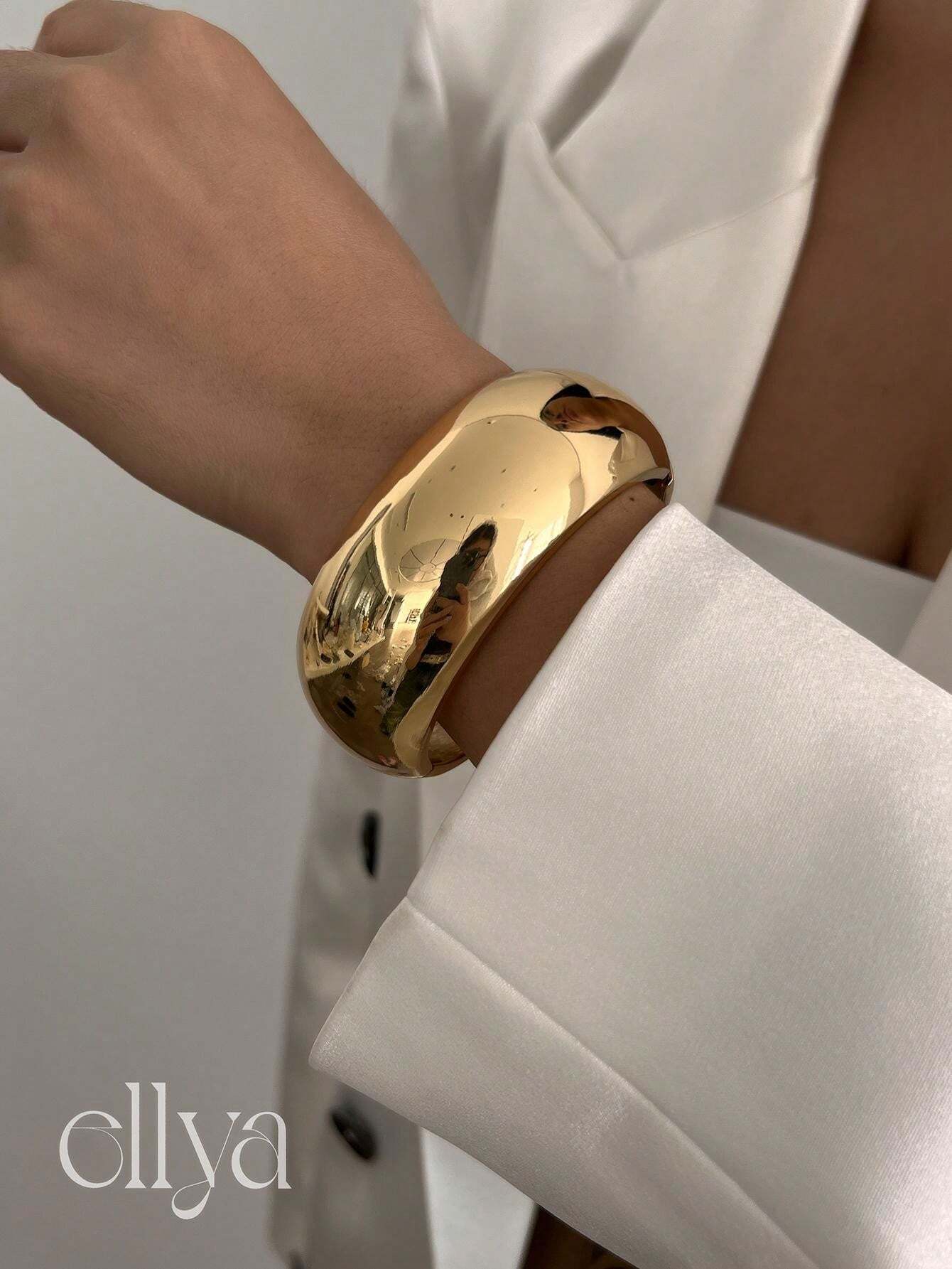 1pc Retro Minimalist European & American Style Exaggerated Fashion Metal Cuff Bracelet, Women's Wide Cuff Thick Gold Bangle, Adjustable Cuff Wristband, Understated Punk Solid Jewelry, Suitable For Daily Wear And Multi-Occasion Decorative Charm Bracelet Gi