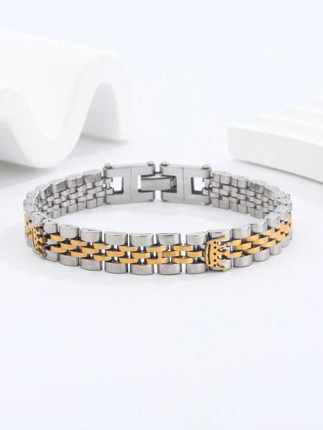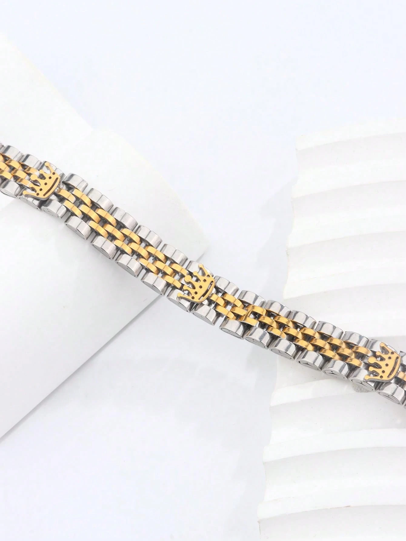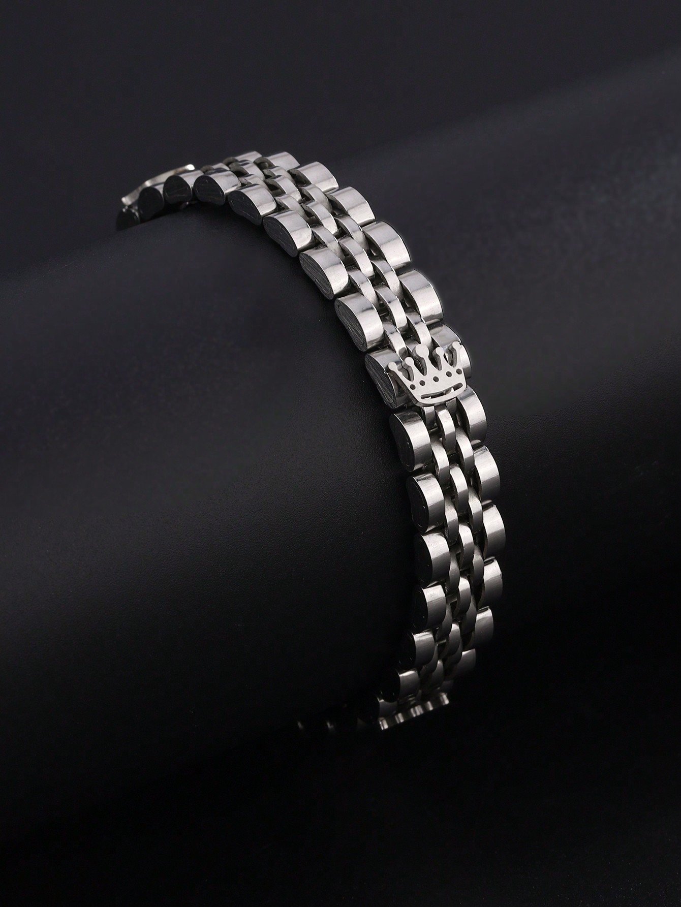1pc Simple And Fashionable Stainless Steel Bracelet With Three Crown Design