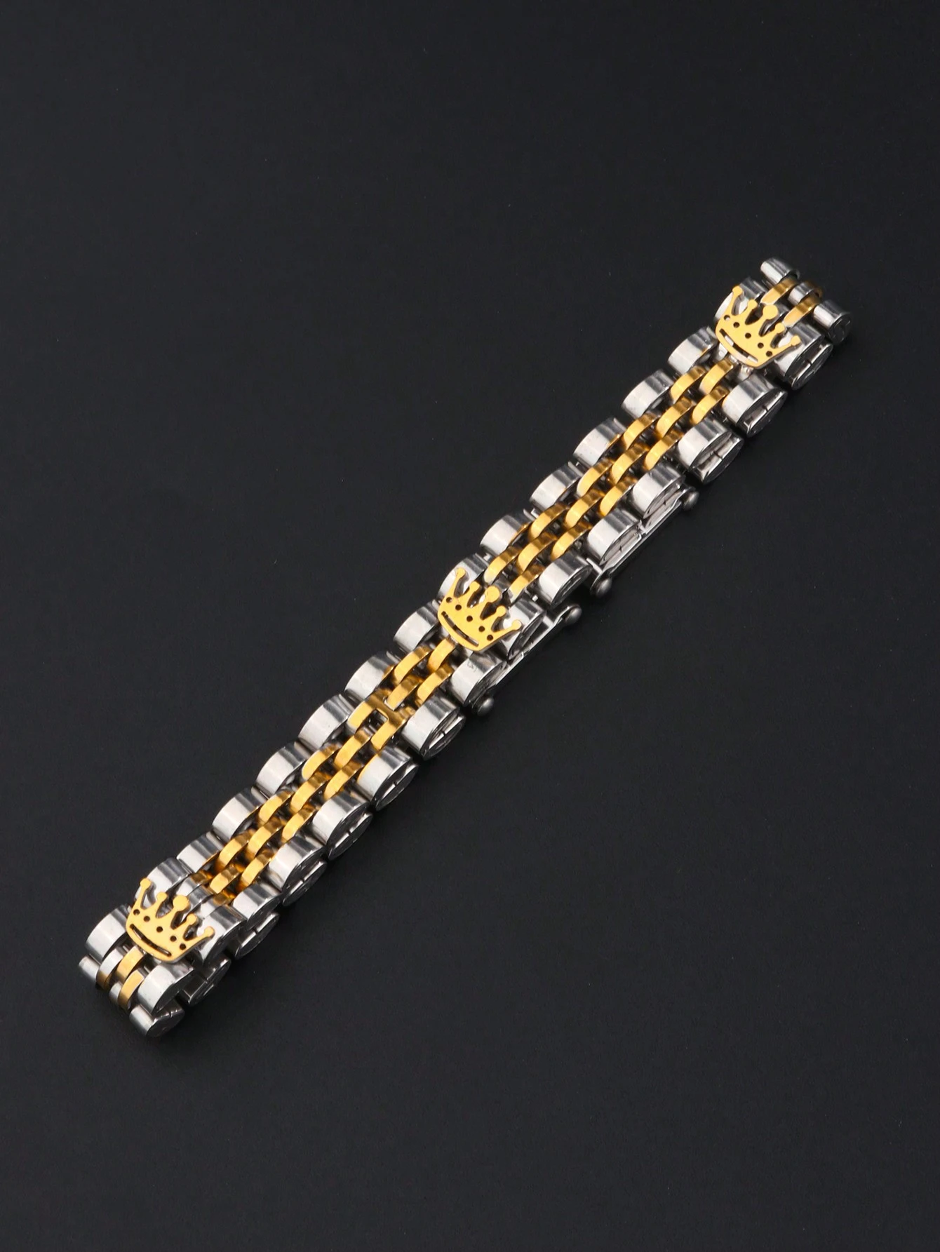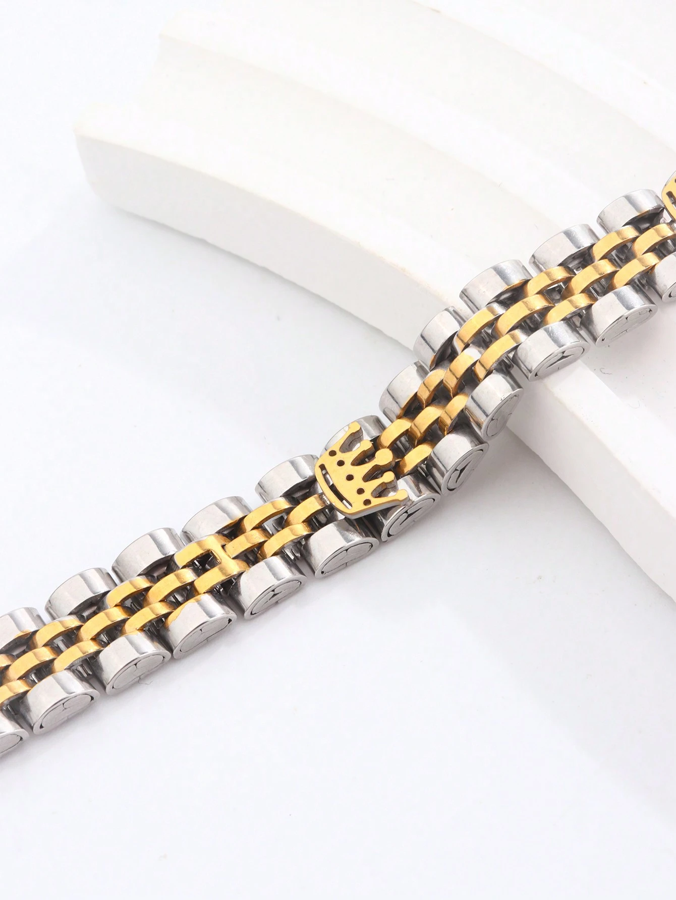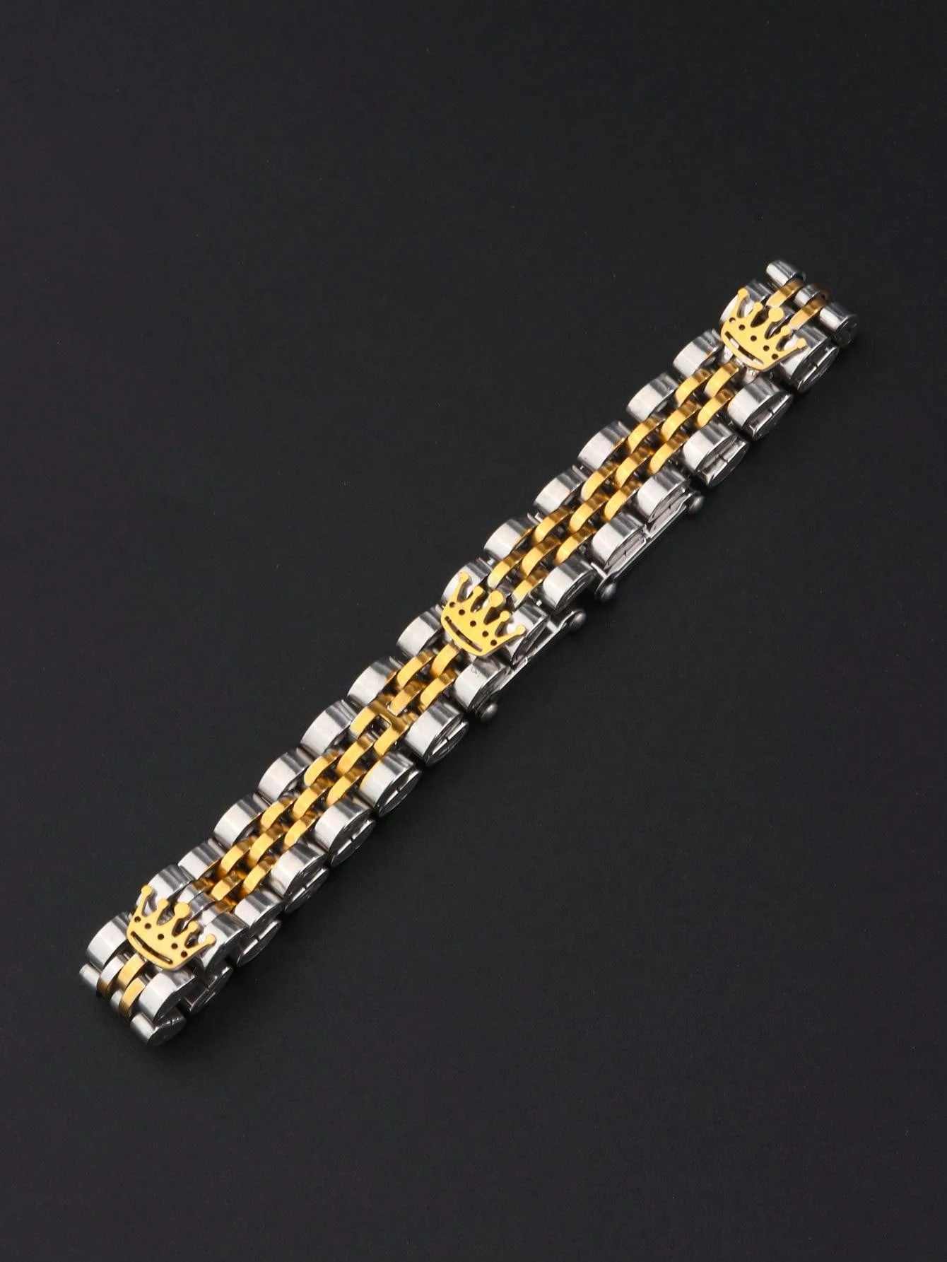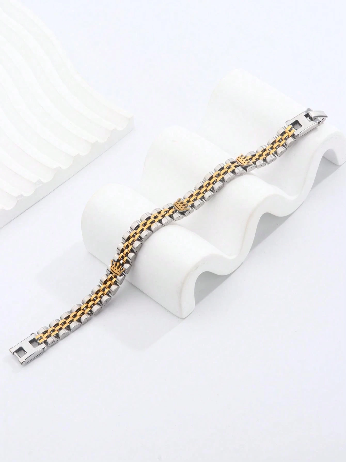 1pc Simple And Fashionable Stainless Steel Bracelet With Three Crown Design