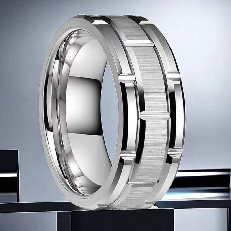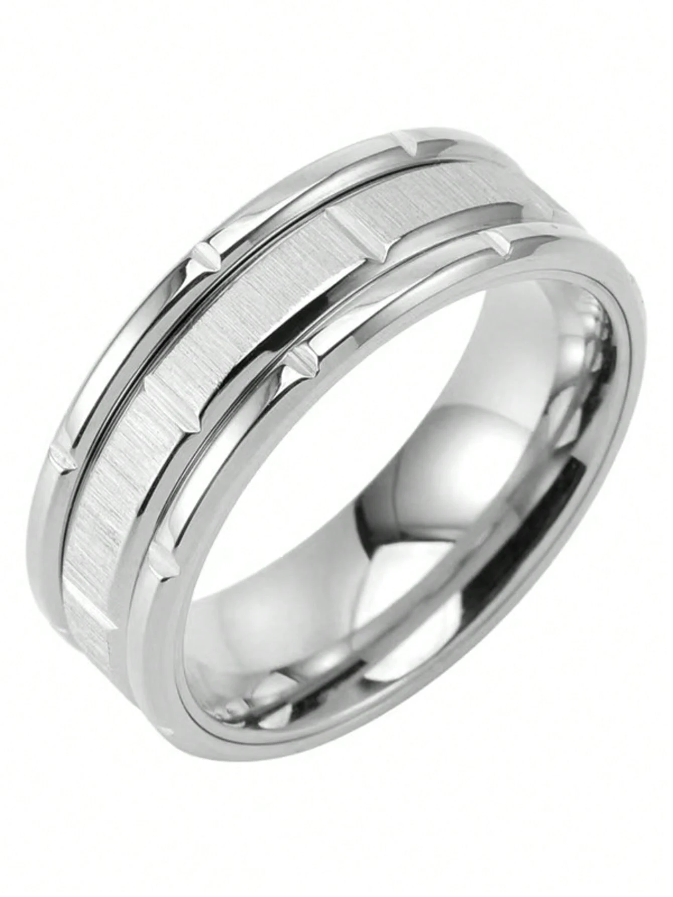 1pc Stainless Steel 8mm Ring For Men, High Polished, Textured Surface, Comfortable Fit, Perfect Gift For Him, Suitable For Casual Or Formal Occasions, Titanium Steel Ring, Wedding Band, Gift For Father's Day, Valentine's Day