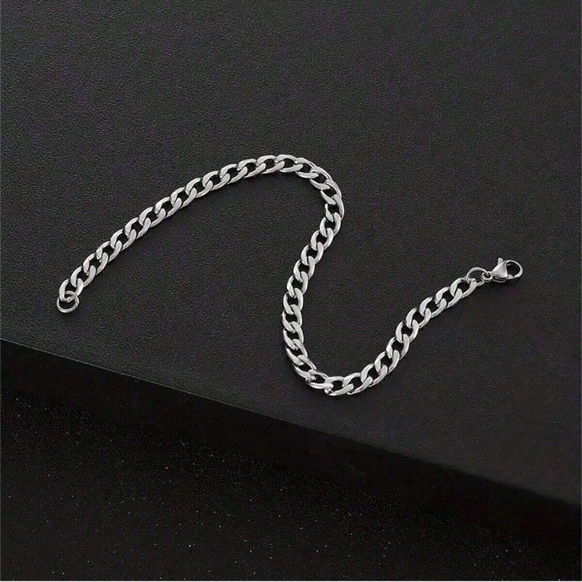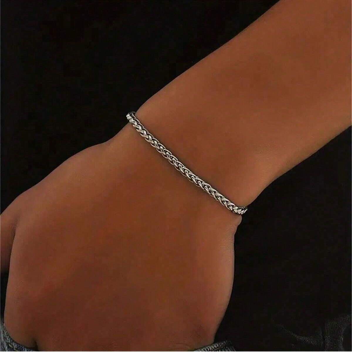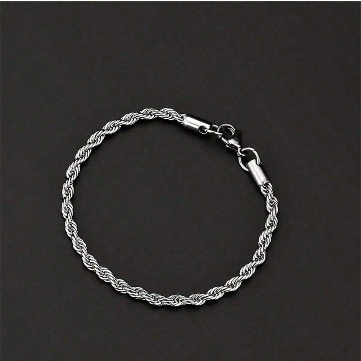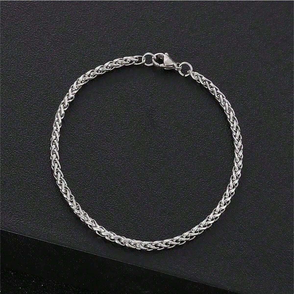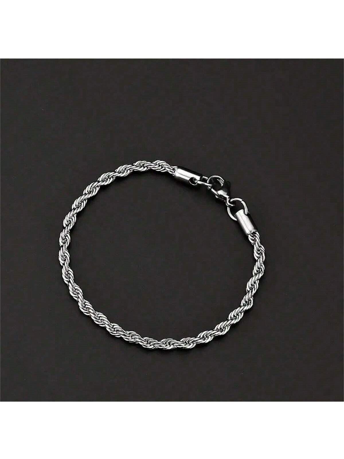 1pc Twisted Chain Link Stainless Steel Silver Bracelet, Fashion Accessory Gift