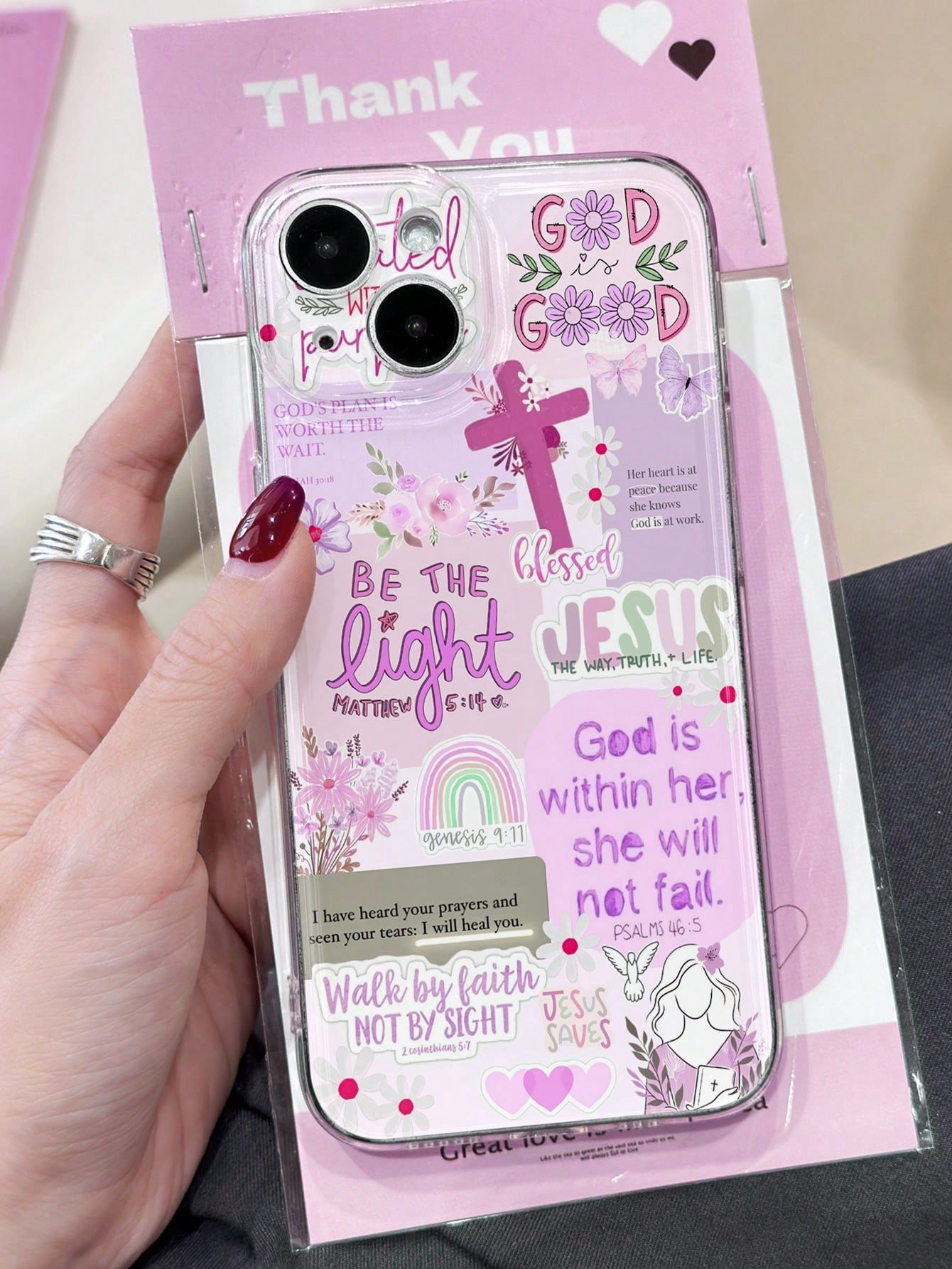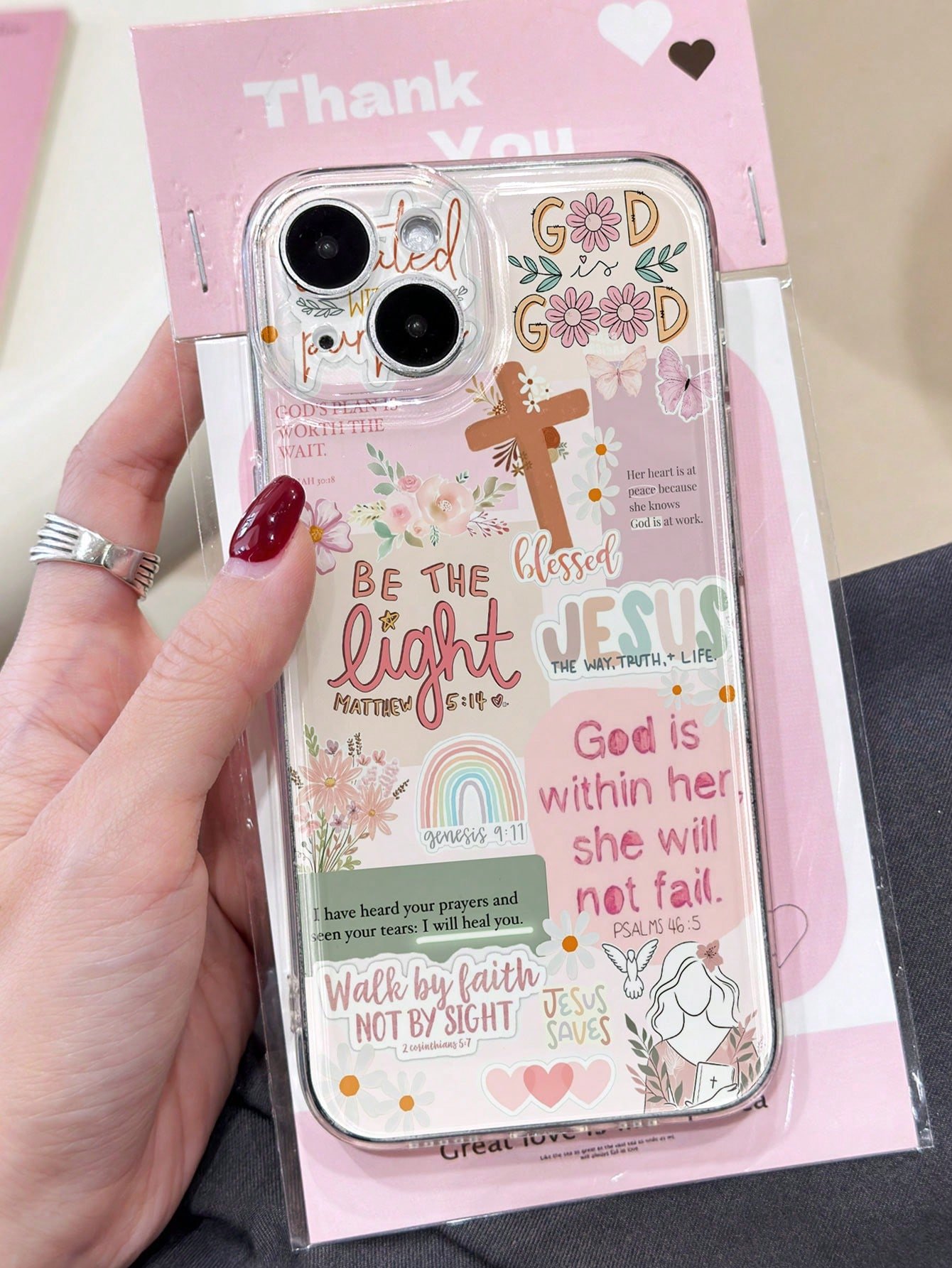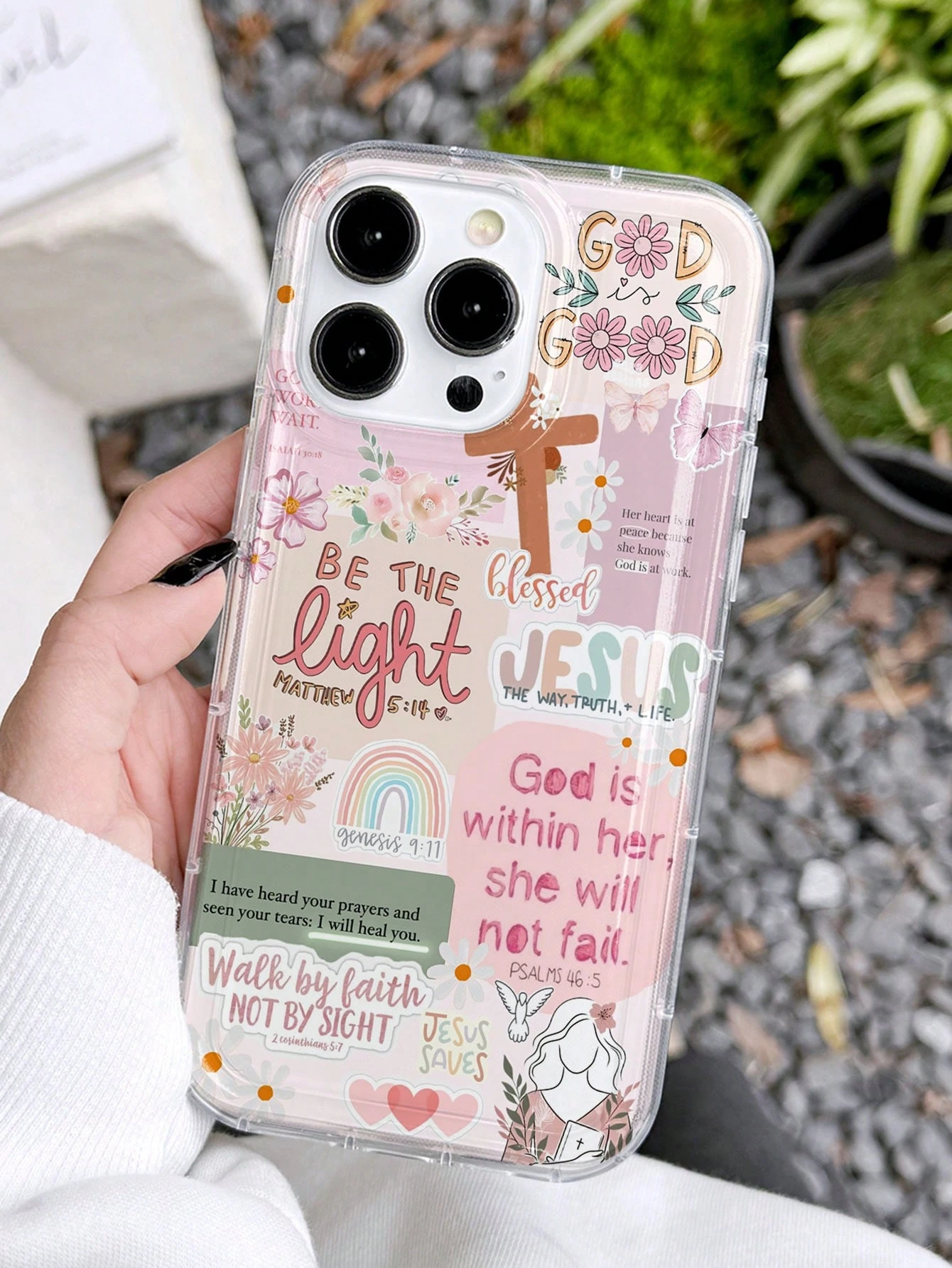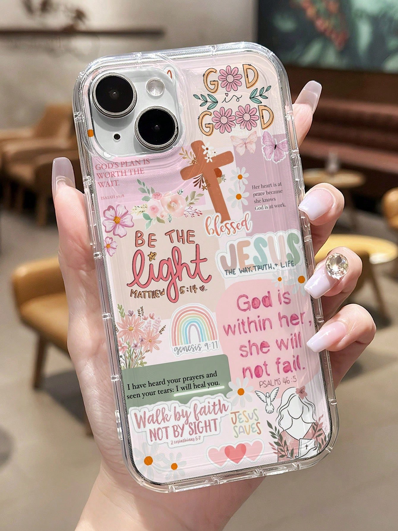 1pc Vintage Newspaper Patchwork Jesus God Slogan Floral Smiling Face Pattern Airbag Anti-Slip Soft Phone Case Compatible With Iphone 11/12/13/14/15/16 Pro Max Waterproof Shockproof Anti-Fall Scratch Resistant