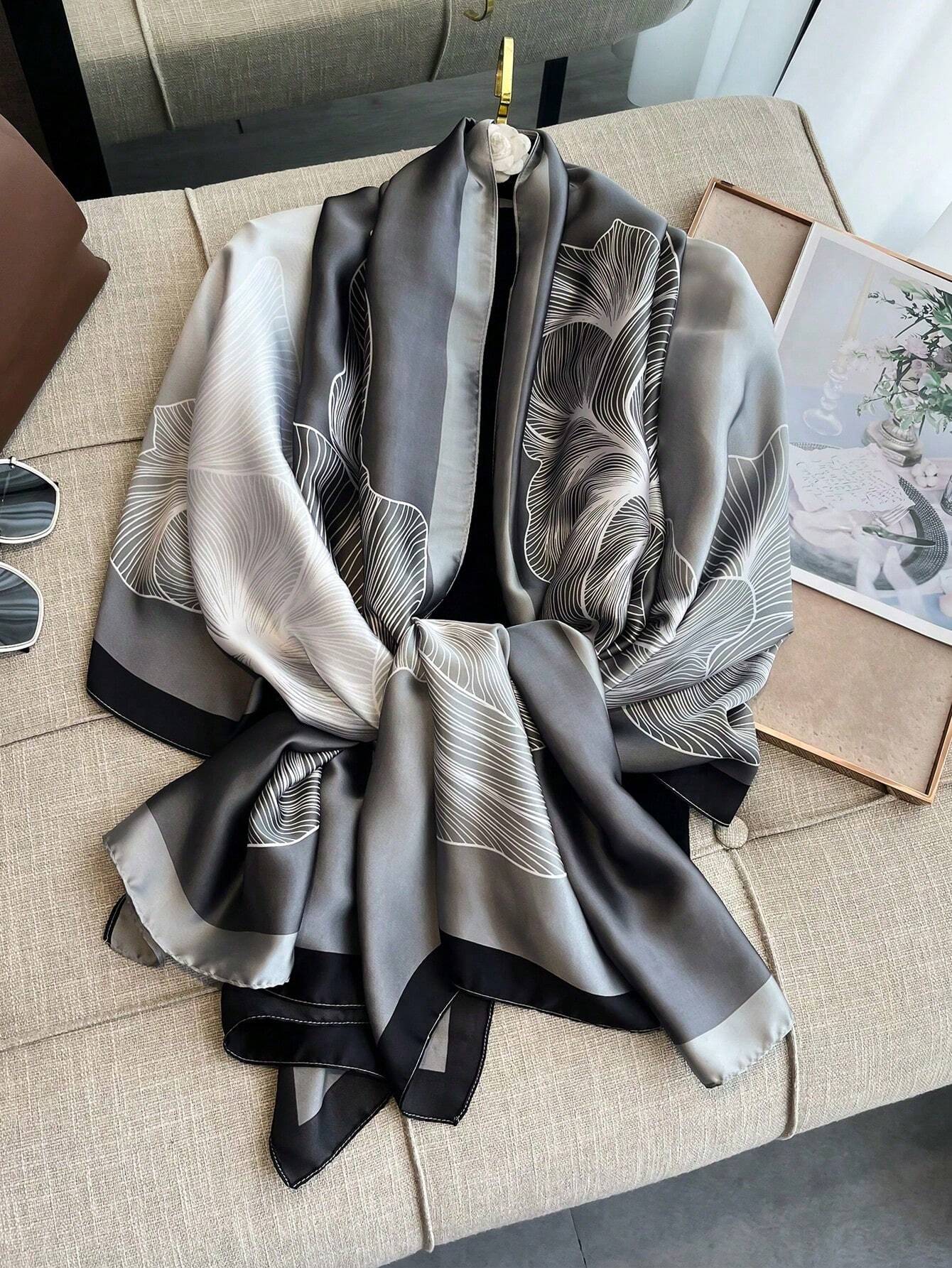 Home Accessories Women-Accessories Scalfs & Bandanas-WA 1pc Women Beach Accessories Simulation Silk Flower Printed Scarf, Sunscreen Beach Towel Or AC Shawl, Fashion All-Match Scarf For Summer Vacation Bandana,Hair Band,Head Band Ideal For Dressing Up Your Look