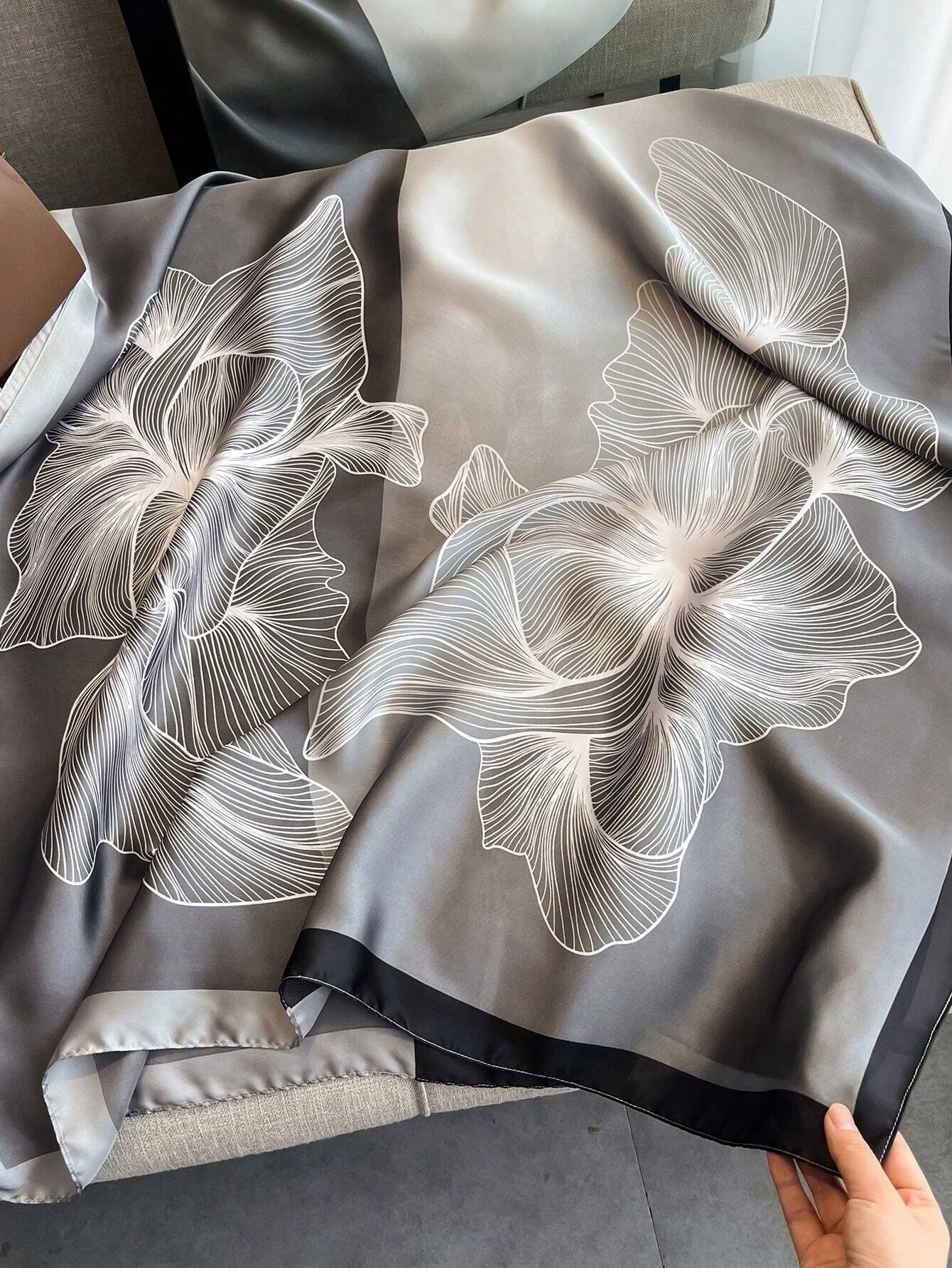 1pc Women Beach Accessories Simulation Silk Flower Printed Scarf, Sunscreen Beach Towel Or AC Shawl, Fashion All-Match Scarf For Summer Vacation Bandana,Hair Band,Head Band Ideal For Dressing Up Your Look