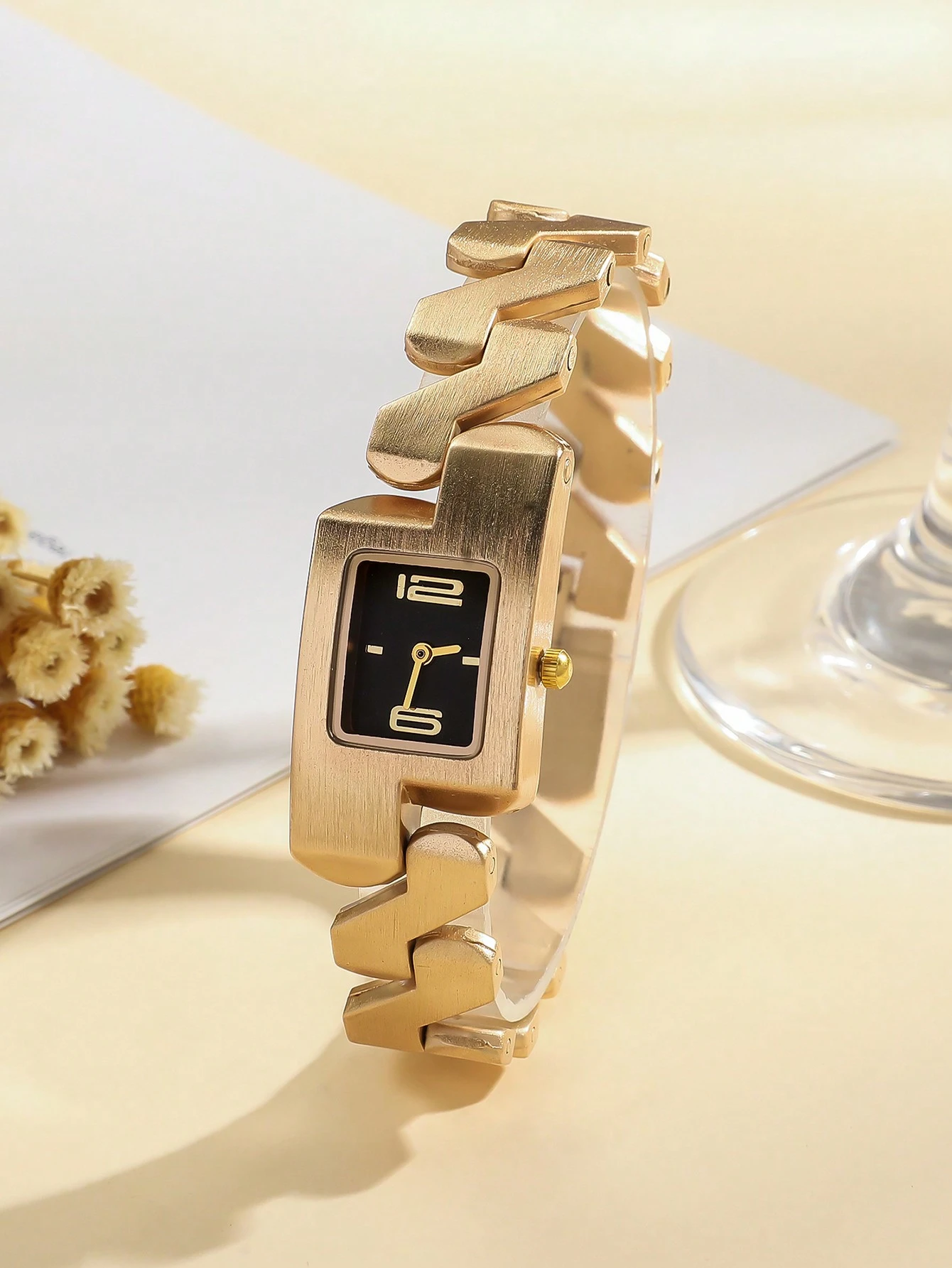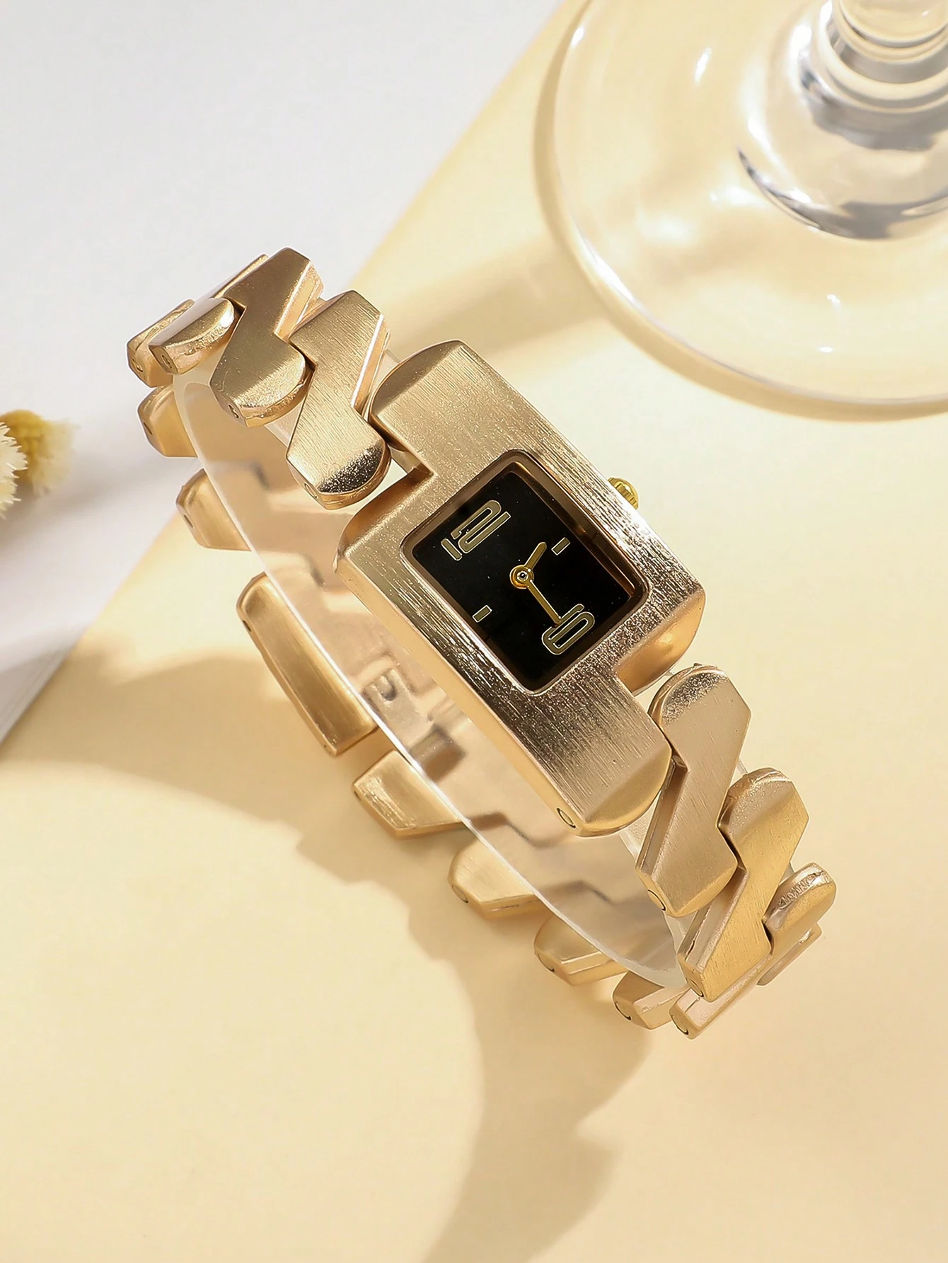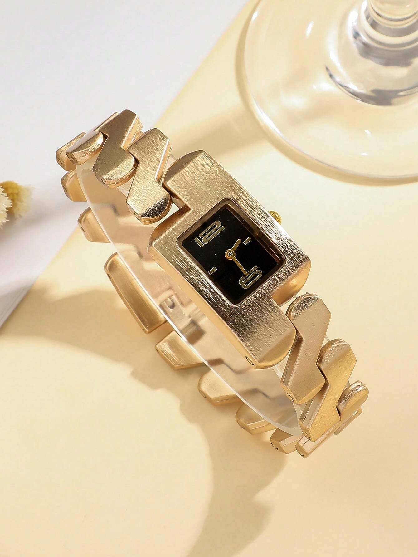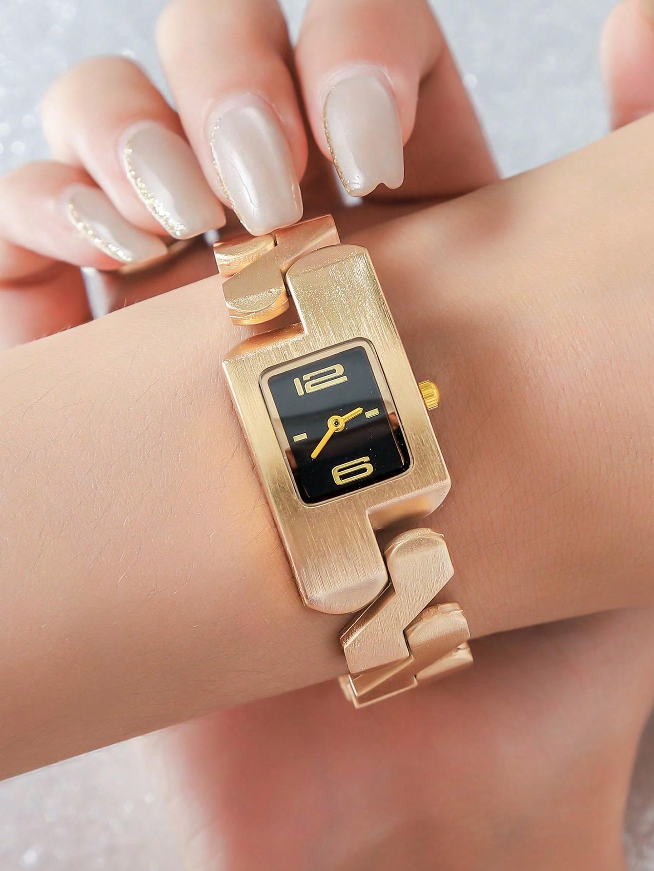 1pc Women's Fashionable Mixed Arabic Numeral Scale Square Dial Steel Band Quartz Watch, Suitable For Daily Wear, Birthday Gift, Anniversary Gift, Etc