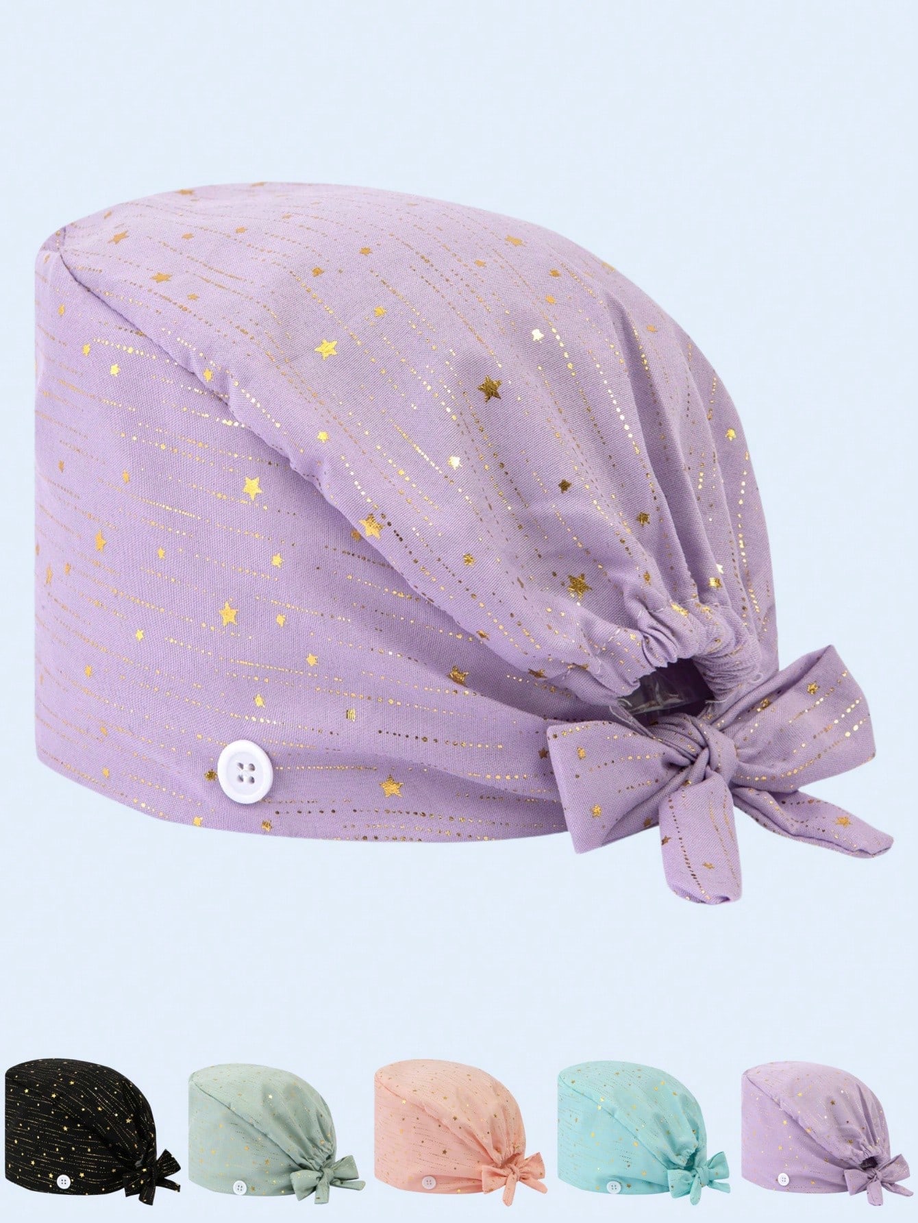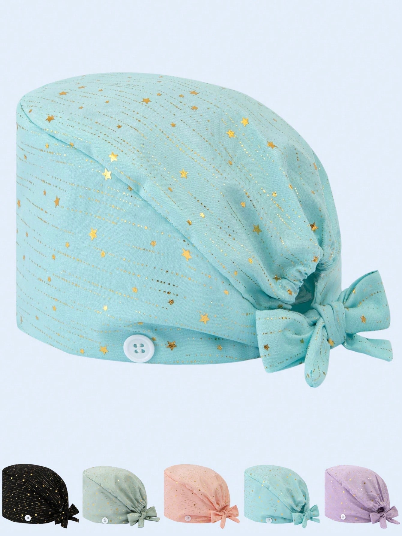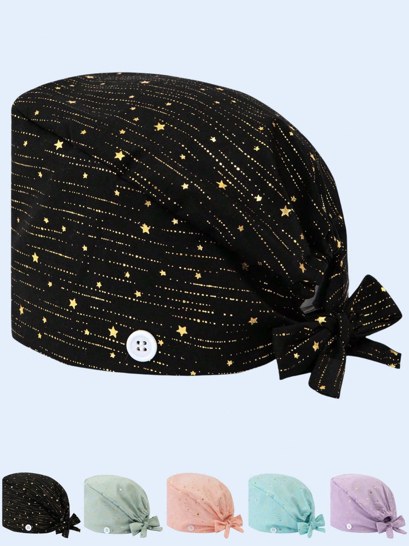 1pc Women's Polyester Metallic Shooting Star Print Work Hat/Nurse Cap, Anti-Bacterial & Dust-Proof, Adjustable Elastic Band, Sweatband Lining, Mask String Hook, Suitable For Medical Staff, Beauty Salon, Veterinary, And Cleaning Workers