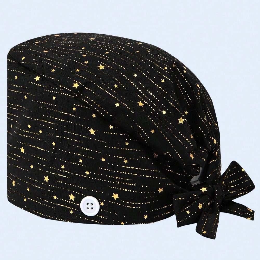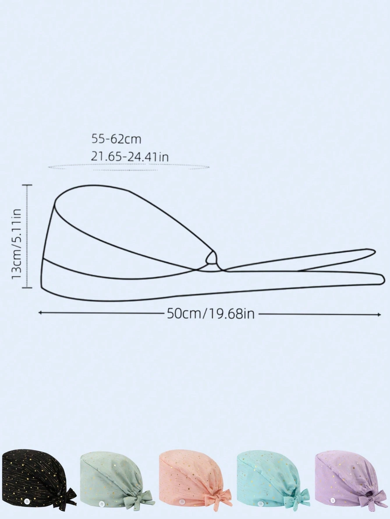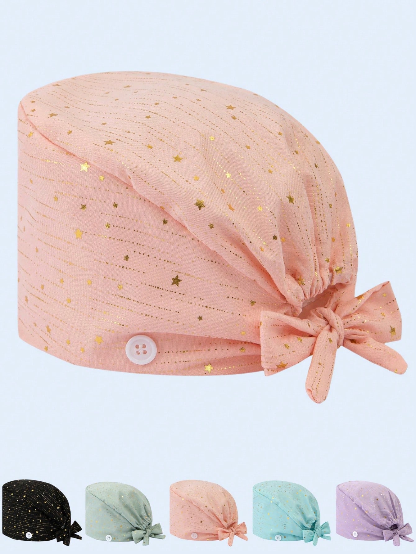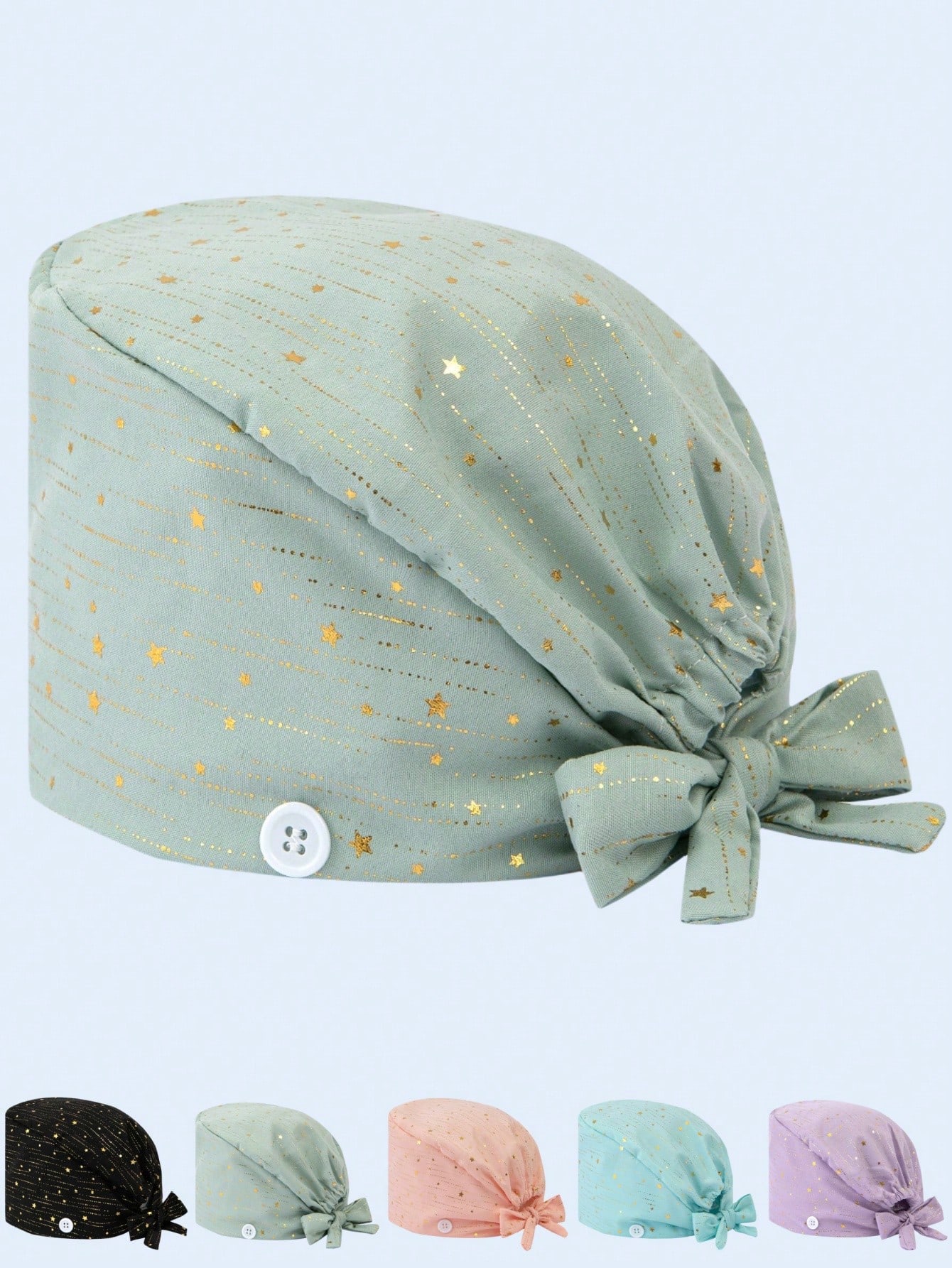 1pc Women's Polyester Metallic Shooting Star Print Work Hat/Nurse Cap, Anti-Bacterial & Dust-Proof, Adjustable Elastic Band, Sweatband Lining, Mask String Hook, Suitable For Medical Staff, Beauty Salon, Veterinary, And Cleaning Workers