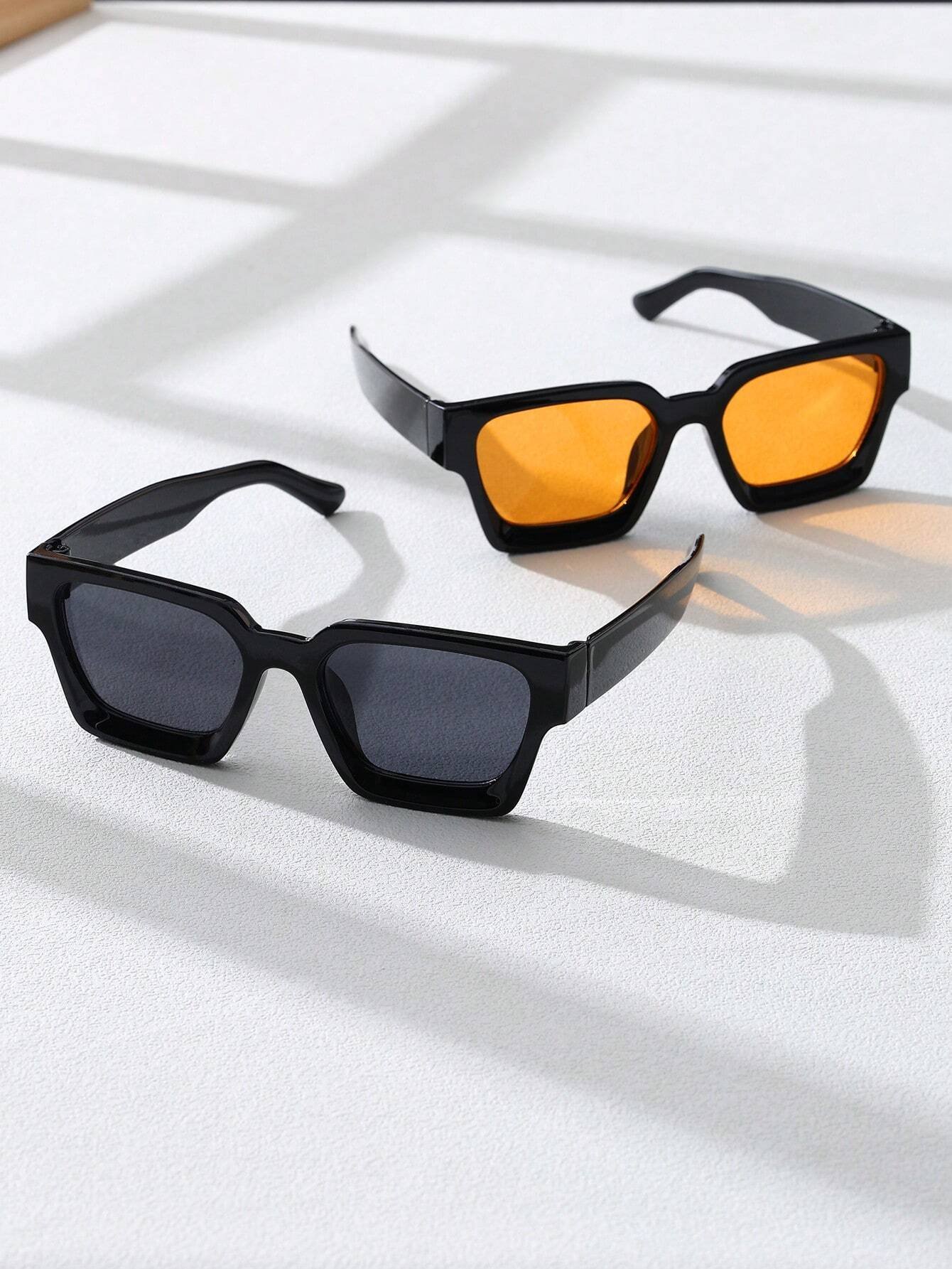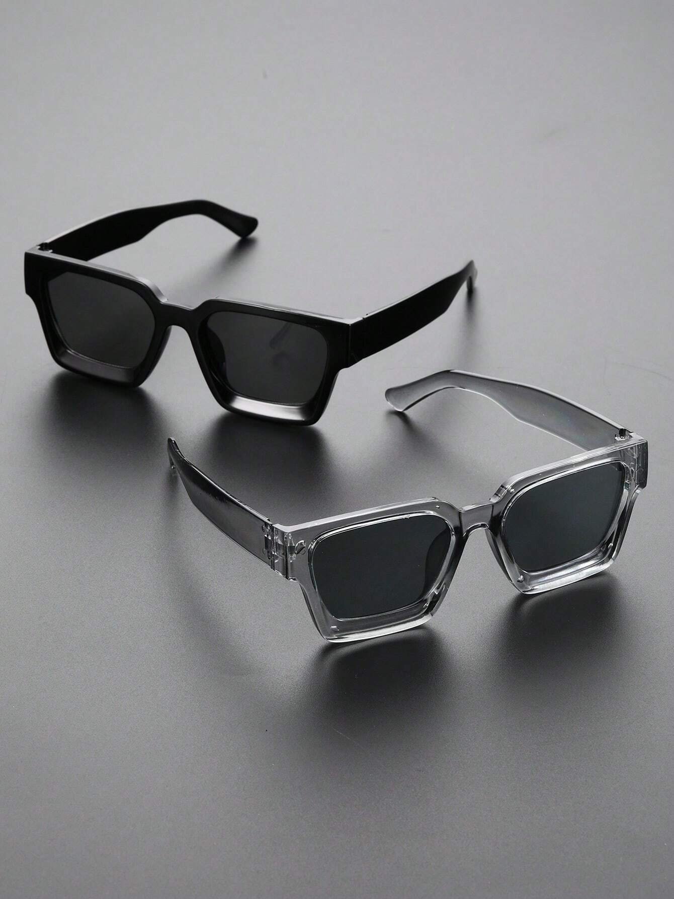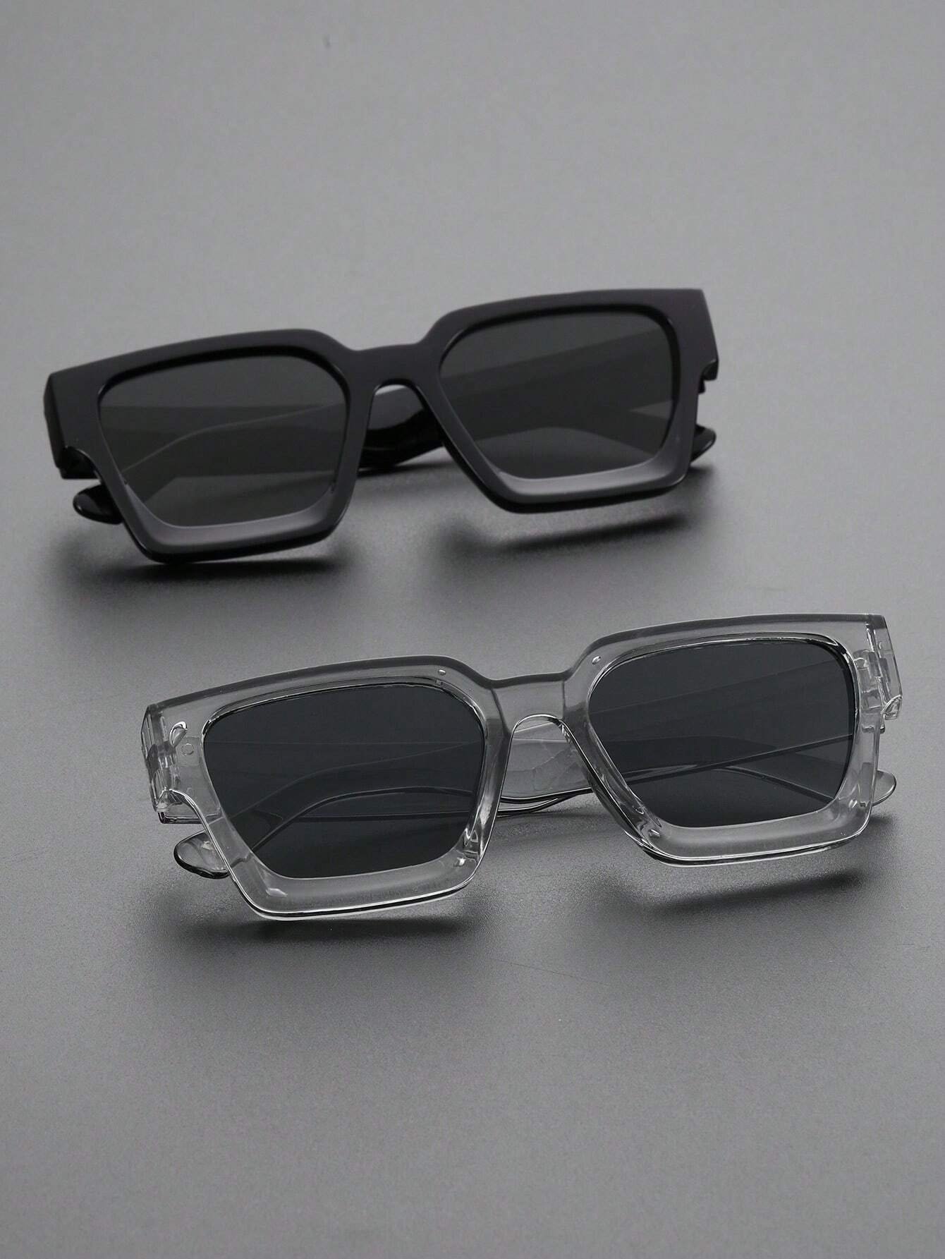 2-3pcs Men Square Plastic Frame Fashion Classic Eyeglasses For Outdoor Daily Vacation Driving Clothing AccessoriesY2K Festival For Summer Beach Vacation, Outdoor, Travel