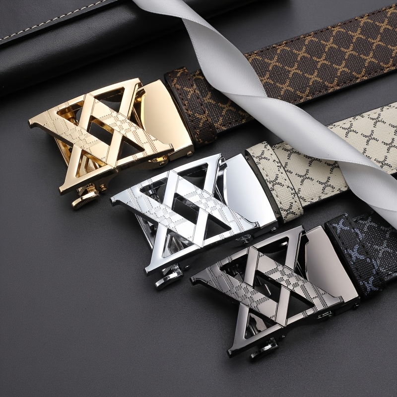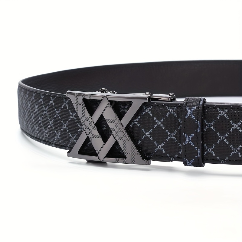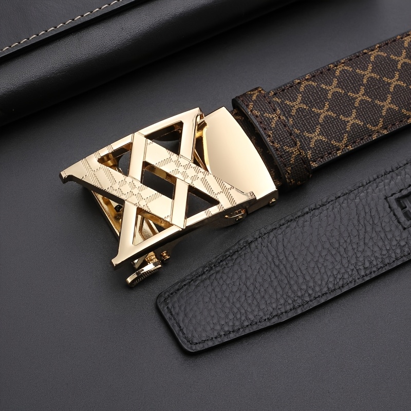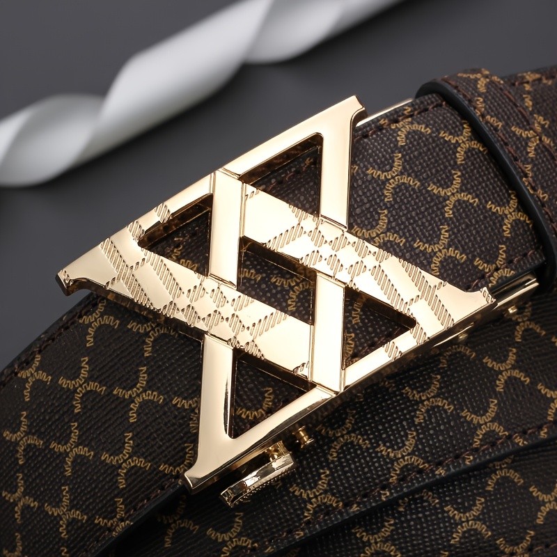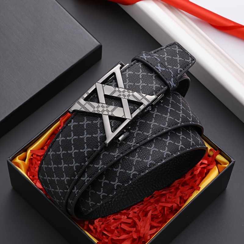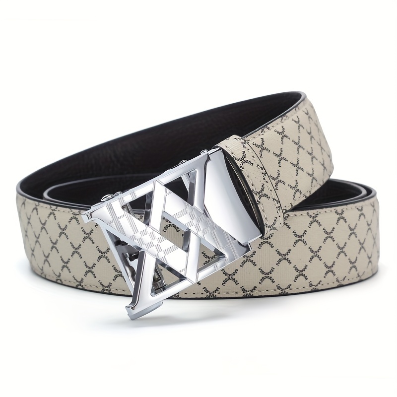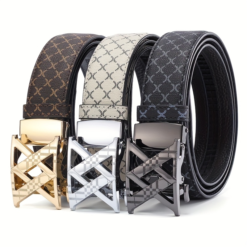 2025 Men'S Fashion Automatic Buckle Alloy Faux Leather Belt – Multicolor PVC, Letter Design, Ideal for Valentine'S & Father'S Day, Stylish Business Accessory | Perfect for Commute Attire Everyday | Available in Golden/Black/Silvery
