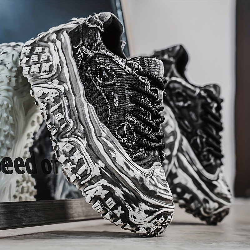 Men'S Stylish 2025 Spring Sneakers – Thick Cushioned Platform Low-Top Lace-Up Shoes with Double-Color Design, Comfortable Fabric & Faux Upper, Durable Rubber Sole for Casual Streetwear, Everyday Comfort Footwear, Minimalist Streetwear, Soft Fabric Lining