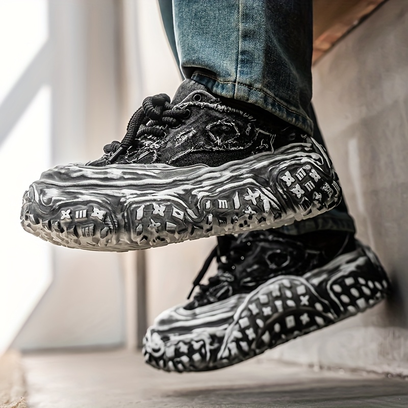 2025 New Men'S Low-Top Sneakers – All-Season Casual & Sports Shoes with Thick PVC Sole, Breathable Fabric Lining, Round Toe Design for Daily Wear & Light Sports, Shoes Sneakers, Durable Footwear