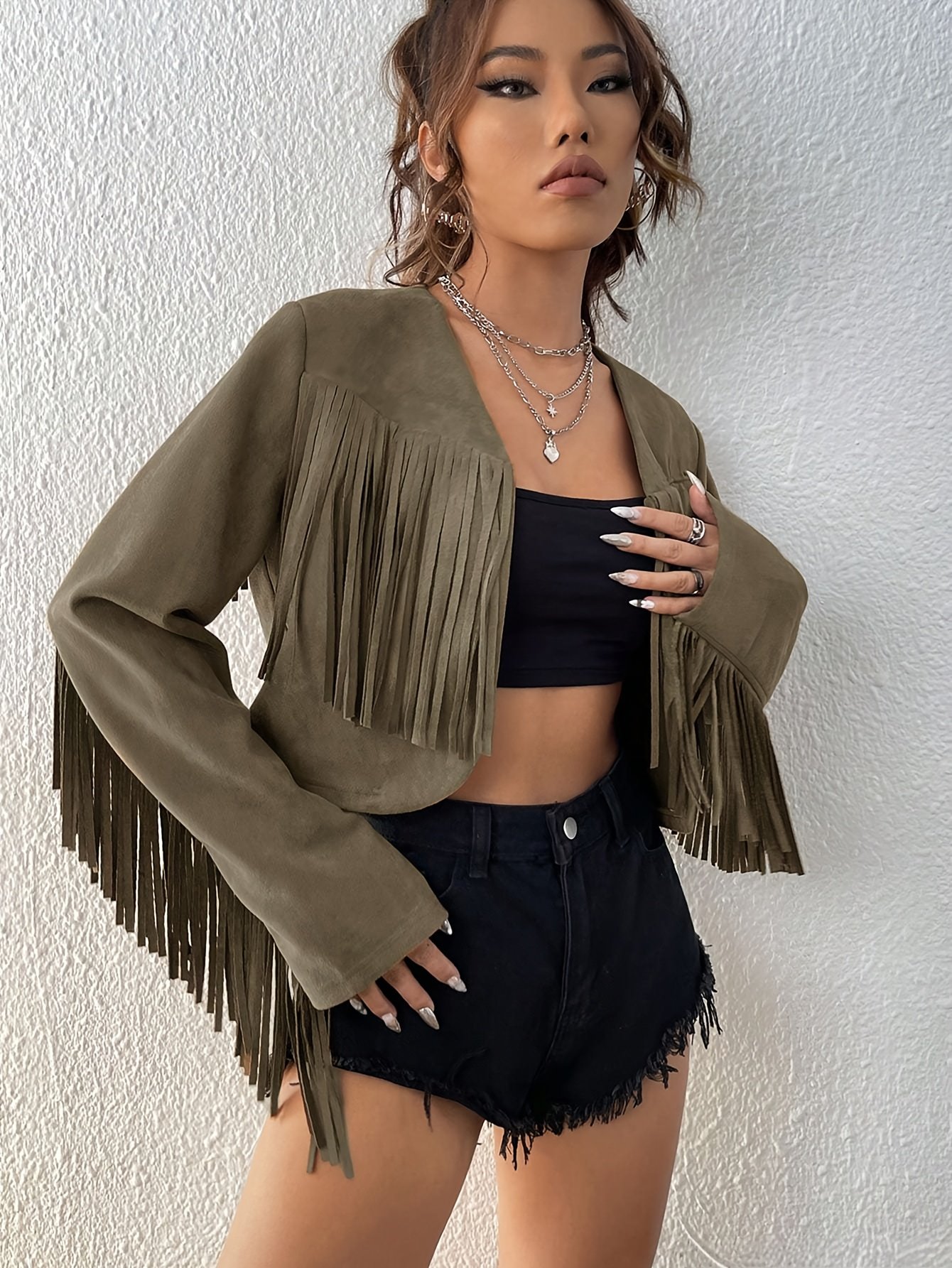 2025 New Women'S Elegant Short Jacket with Studded Fringe Trim, Perfect for a Stylish Street Casual Look