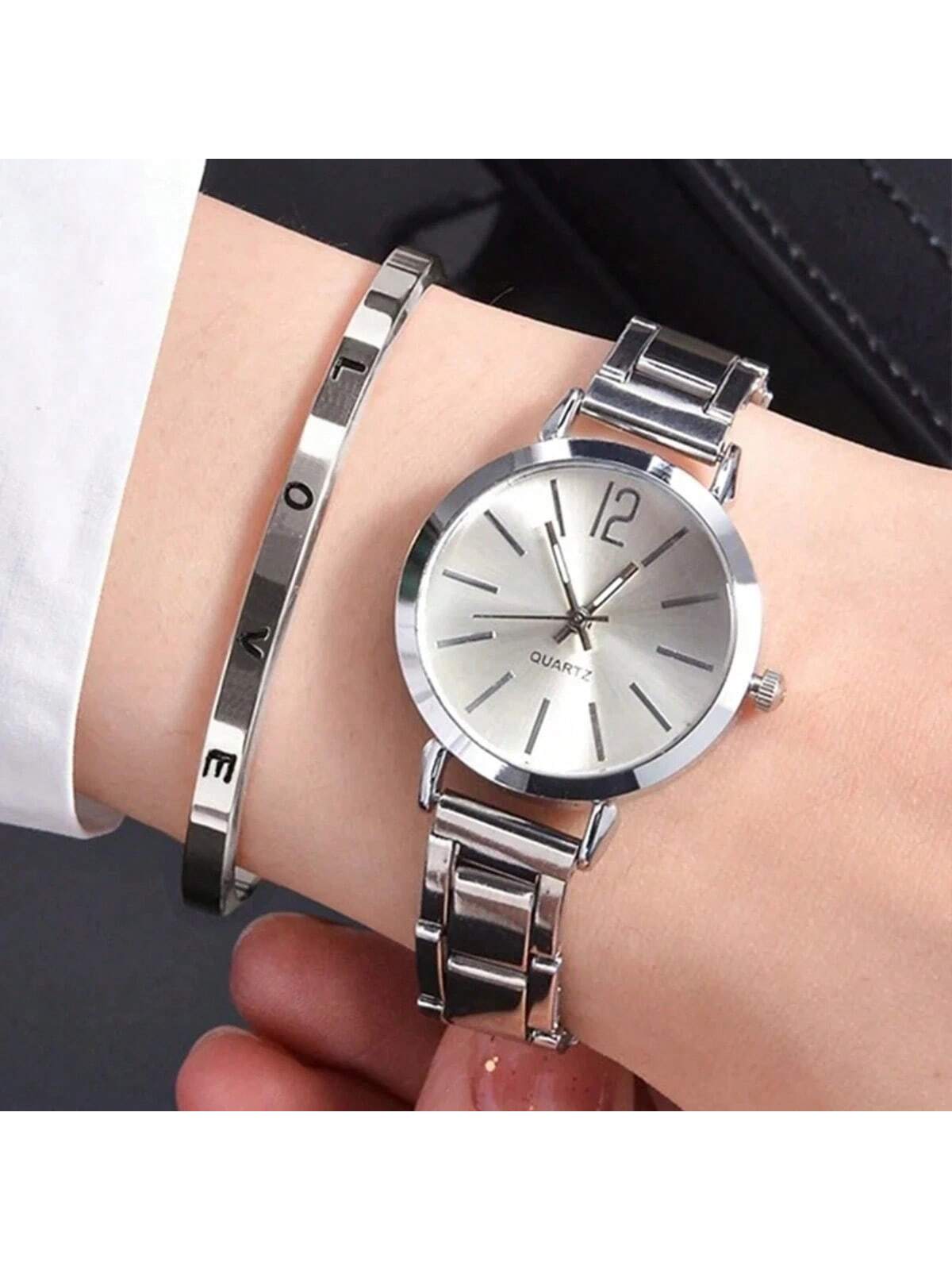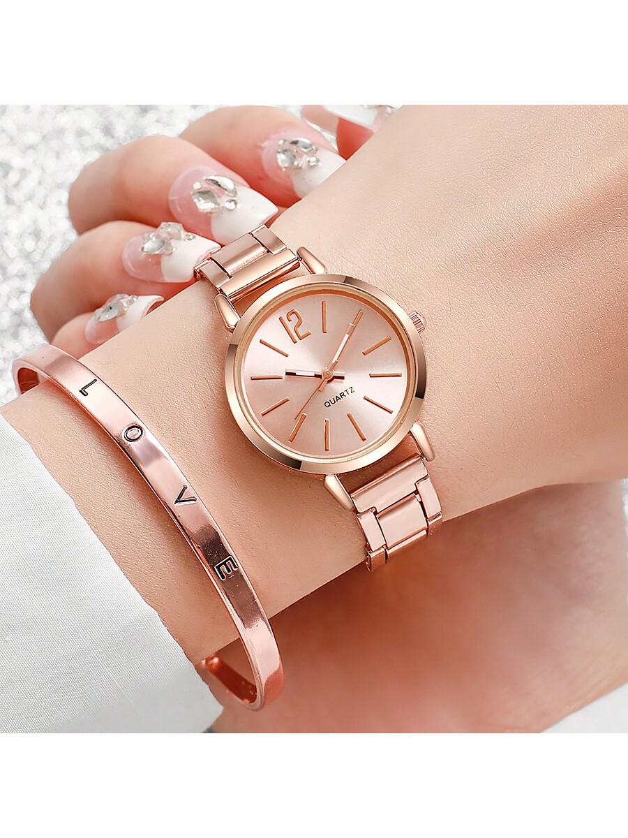 2pcs Luxury Gold Set Women's Watch Ladies Bracelet Stainless Steel LOVE Bracelet Gifts For Women