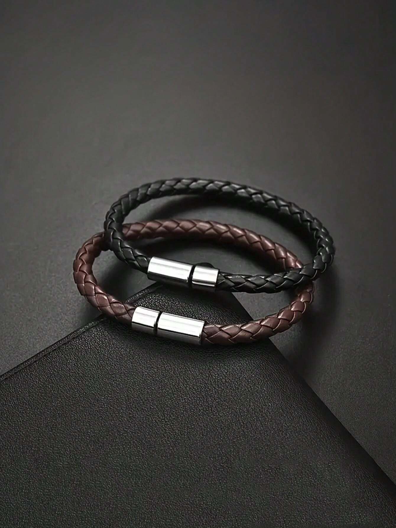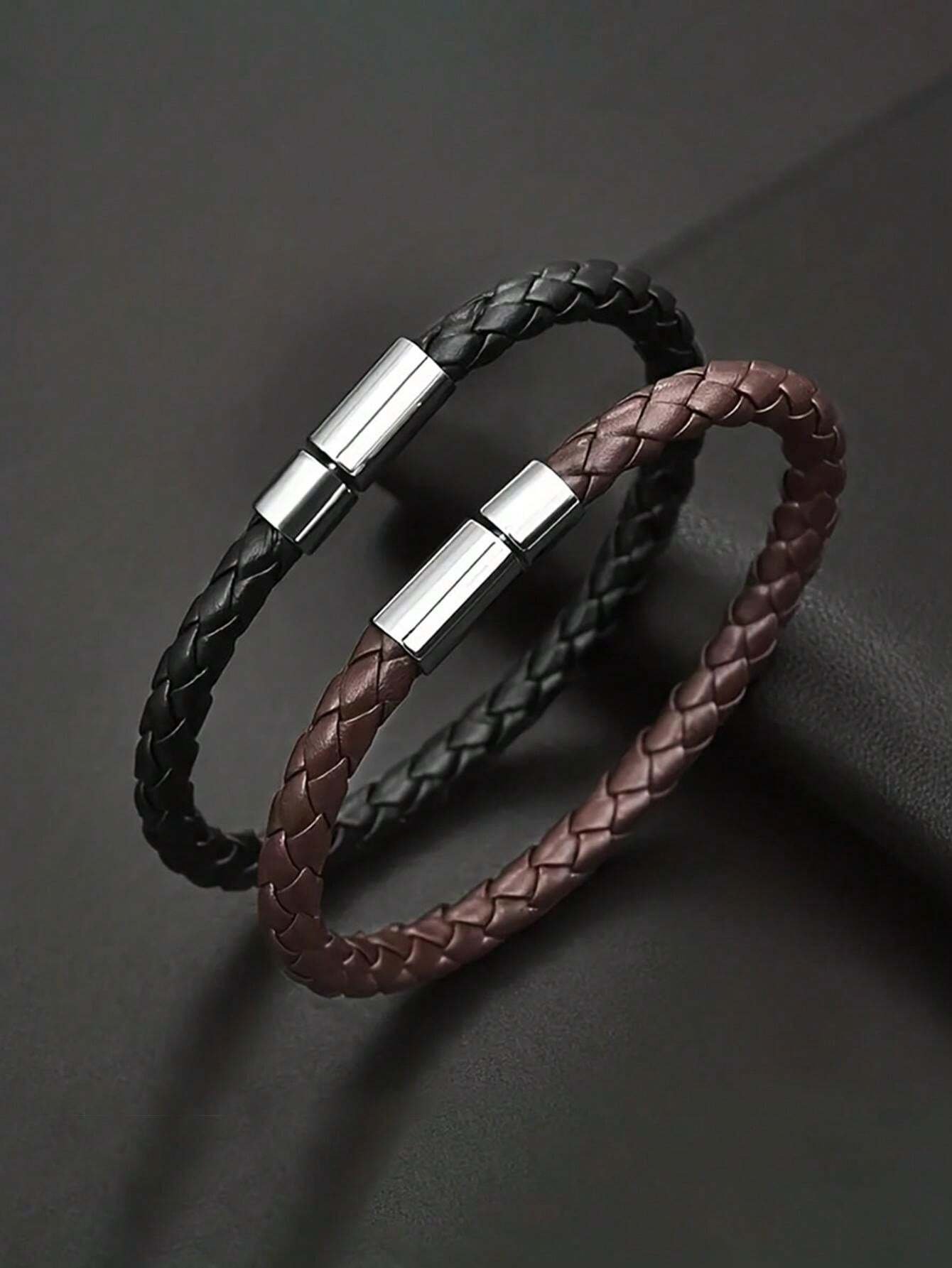 2pcs Men's Retro Braided Detail Bracelets, Gift For Family And Friends, Holiday Birthday Gift For Boyfriends